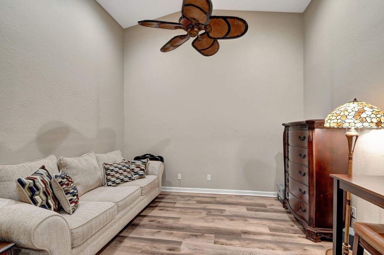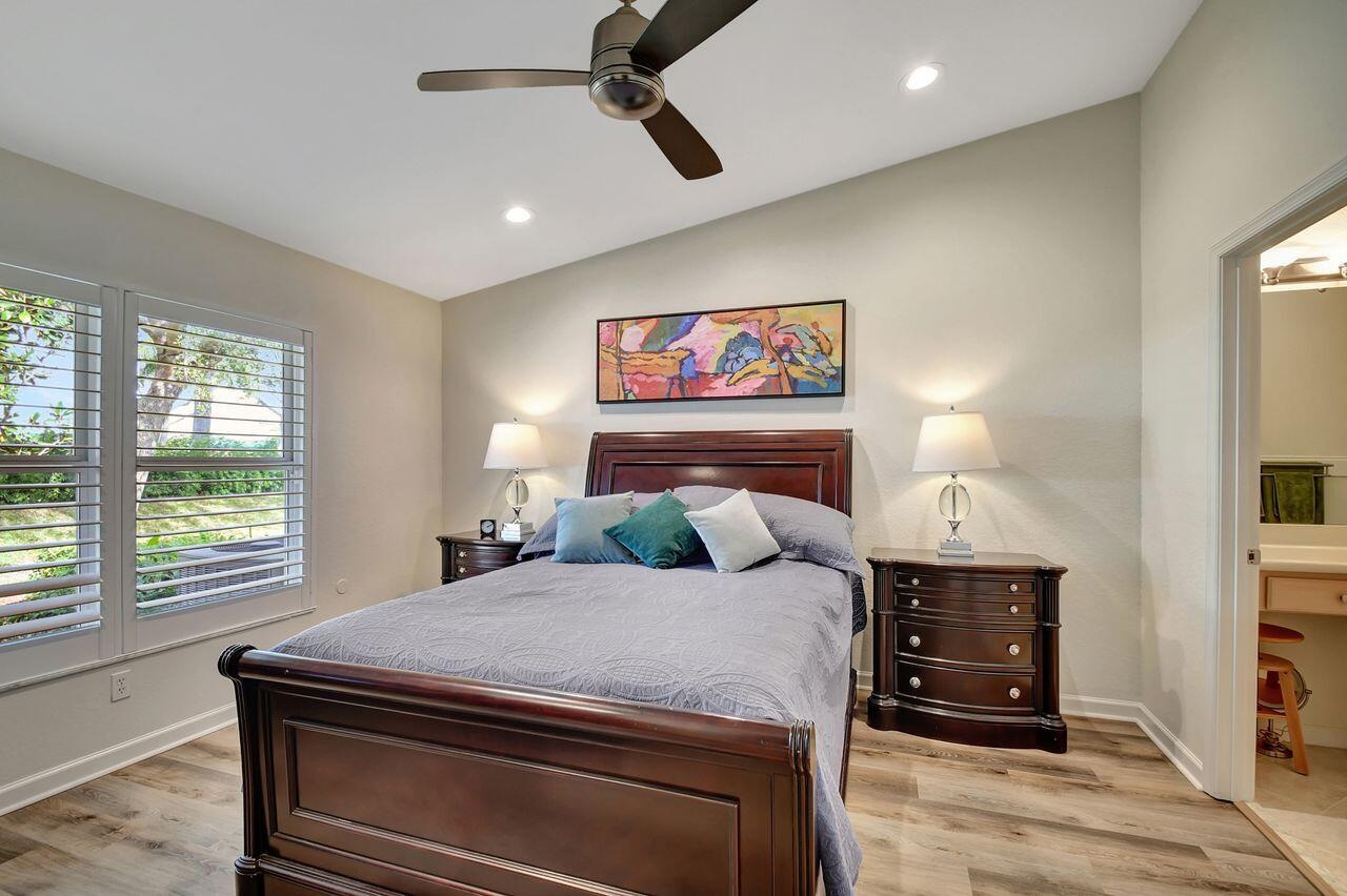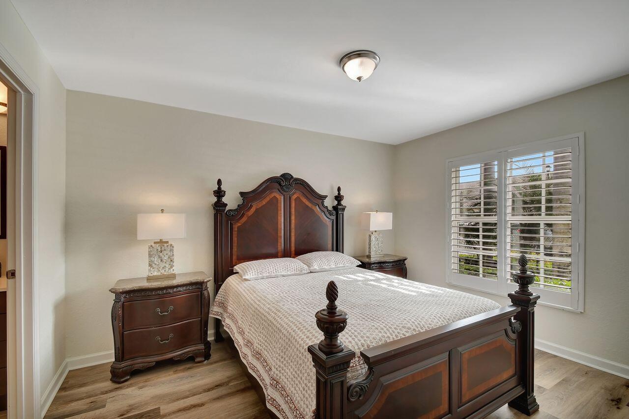 Impact windows & slider (2023), newer A/C, water heater & disposal! Inviting 2BR/2BA villa with den and 1-car garage in Bridgeport at Baywinds. Features include neutral tile floors, open kitchen with tumbled marble backsplash, upgraded light wood cabinetry, separate dining area, and den that can serve as a 3rd bedroom. Vinyl plank floors in bedrooms, fresh paint, plantation shutters, and a screened patio with extended paver area overlooking a serene backyard. Just steps to the clubhouse and pools! Resort-style amenities, cable w/ DVR, internet, landline, ADT, and 24/7 manned gate. Near shopping, dining, beaches, golf, downtown WPB & PBI airport.