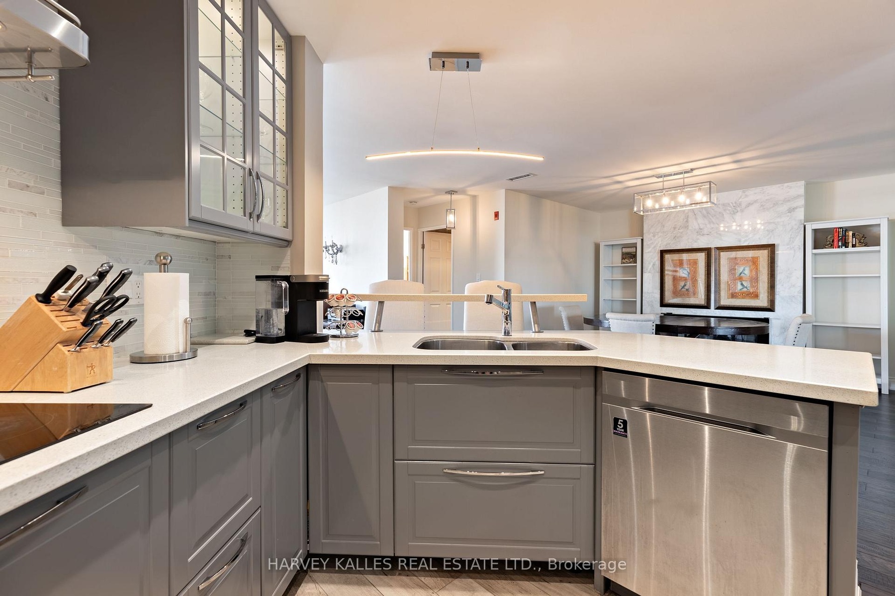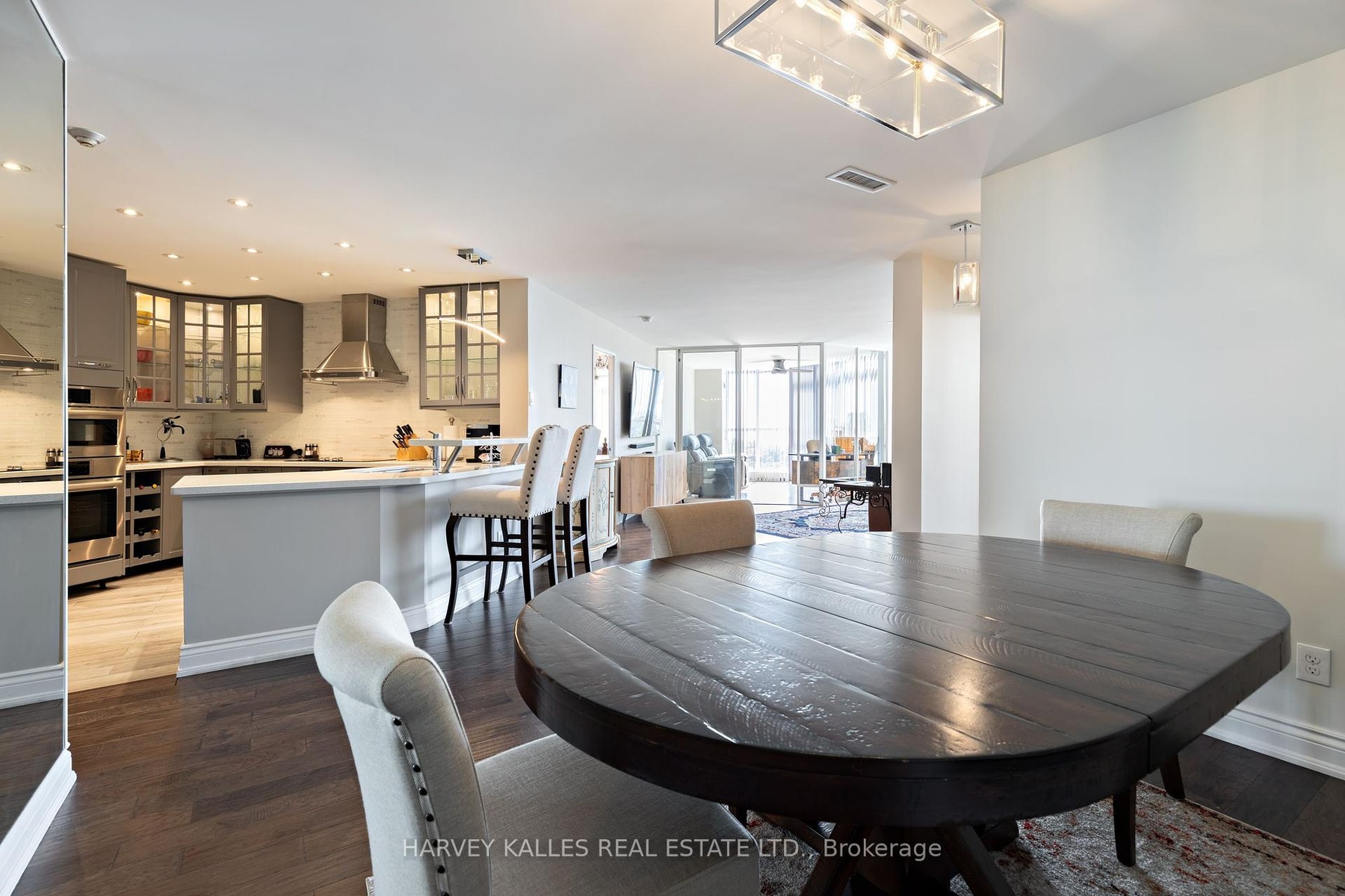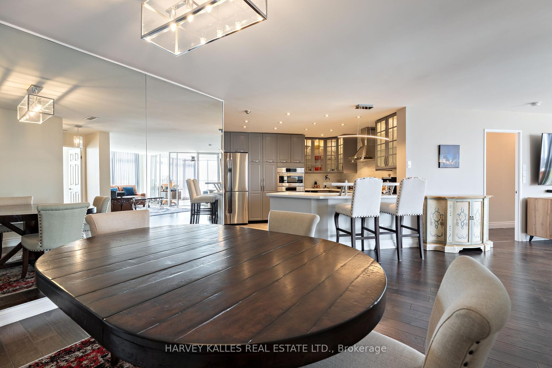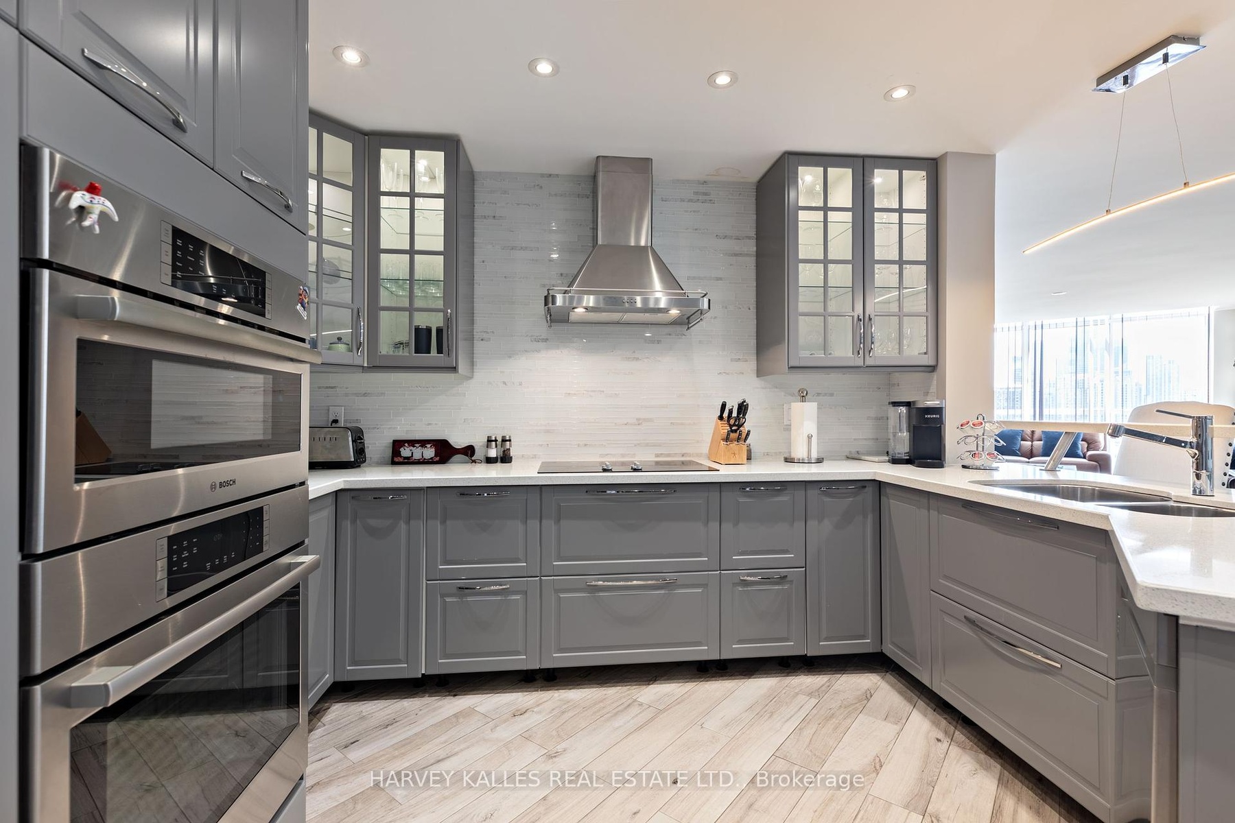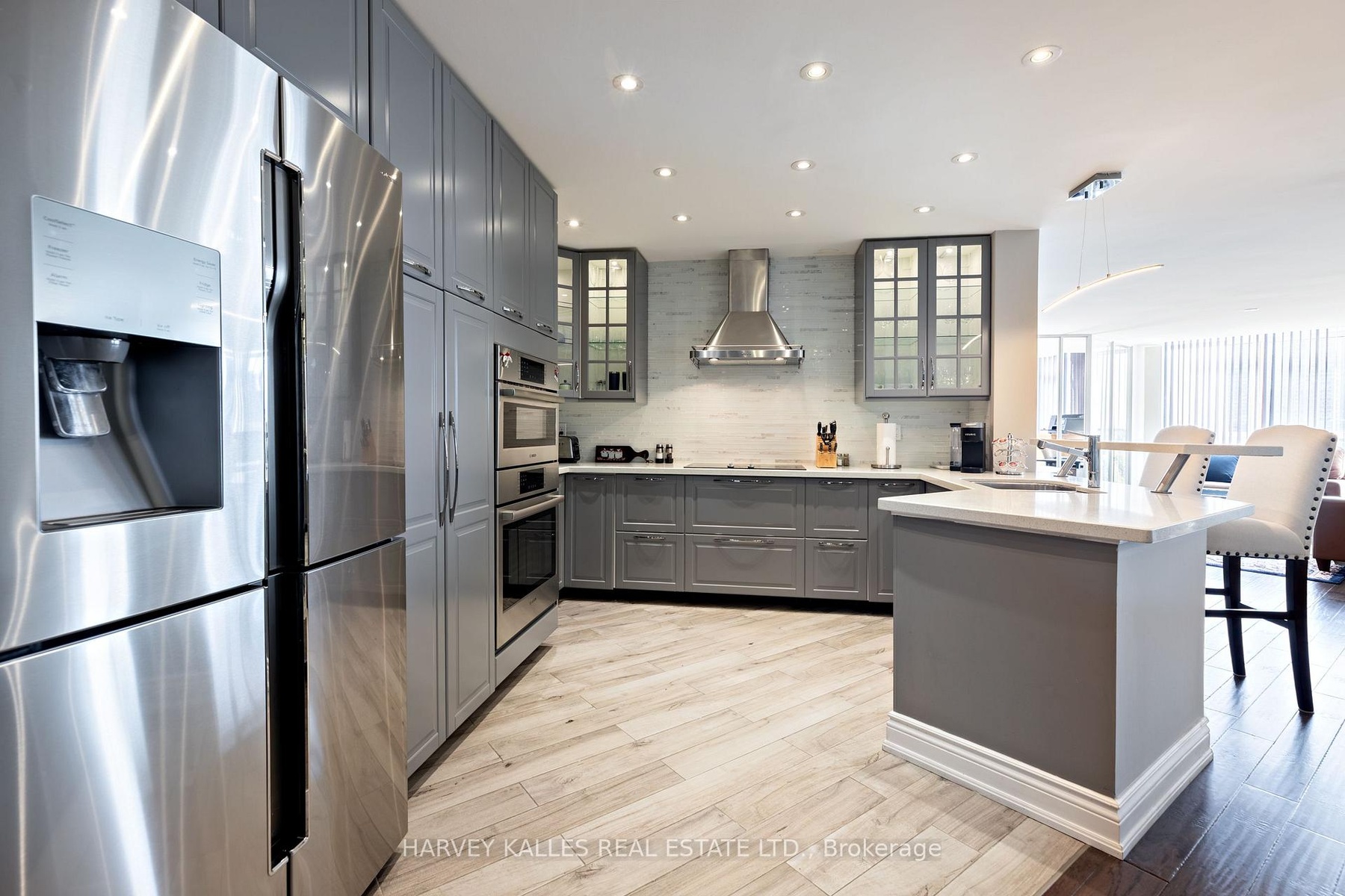 Experience Style, Space and community at South Kingsway Village . This beautifully renovated, Top floor Suite spans nearly 1,500 sq. ft. with a bright, Panoramic South facing layout and premium finishes throughout. Featuring 2 spacious bedrooms 2 full bathrooms, a solarium, and an oversized kitchen with a breakfast bar, the home is ideal for both everyday living and entertaining.The primary suite includes a spa-like ensuite with a tub, spa shower and double sink, providing a true retreat. All hardwood floors throughout the unit. The sun-filled solarium offers sweeping views and an inviting spot to relax.Residents enjoy outstanding amenities, including an exercise room, indoor pool, squash courts, and 24-hour security. With deeded 2 parking spaces side by side next to elevator for added convenience and 2 large lockers.This home and unbeatable access to Lake Shore, Gardiner, and High Park ,walk to the cheese boutique this home is a rare opportunity in one of Torontos most desirable communities.
