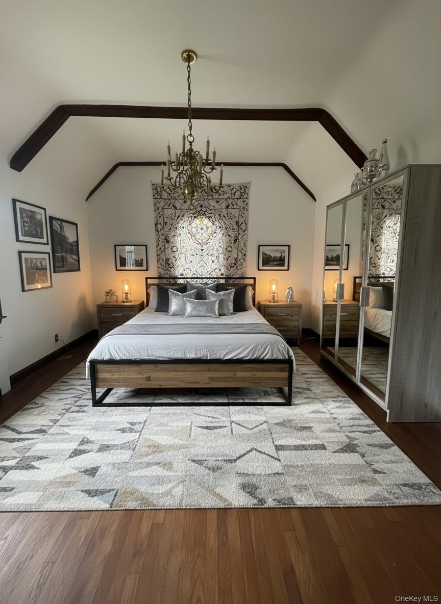 - Bonus room featuring dark wood-style flooring and vaulted ceiling