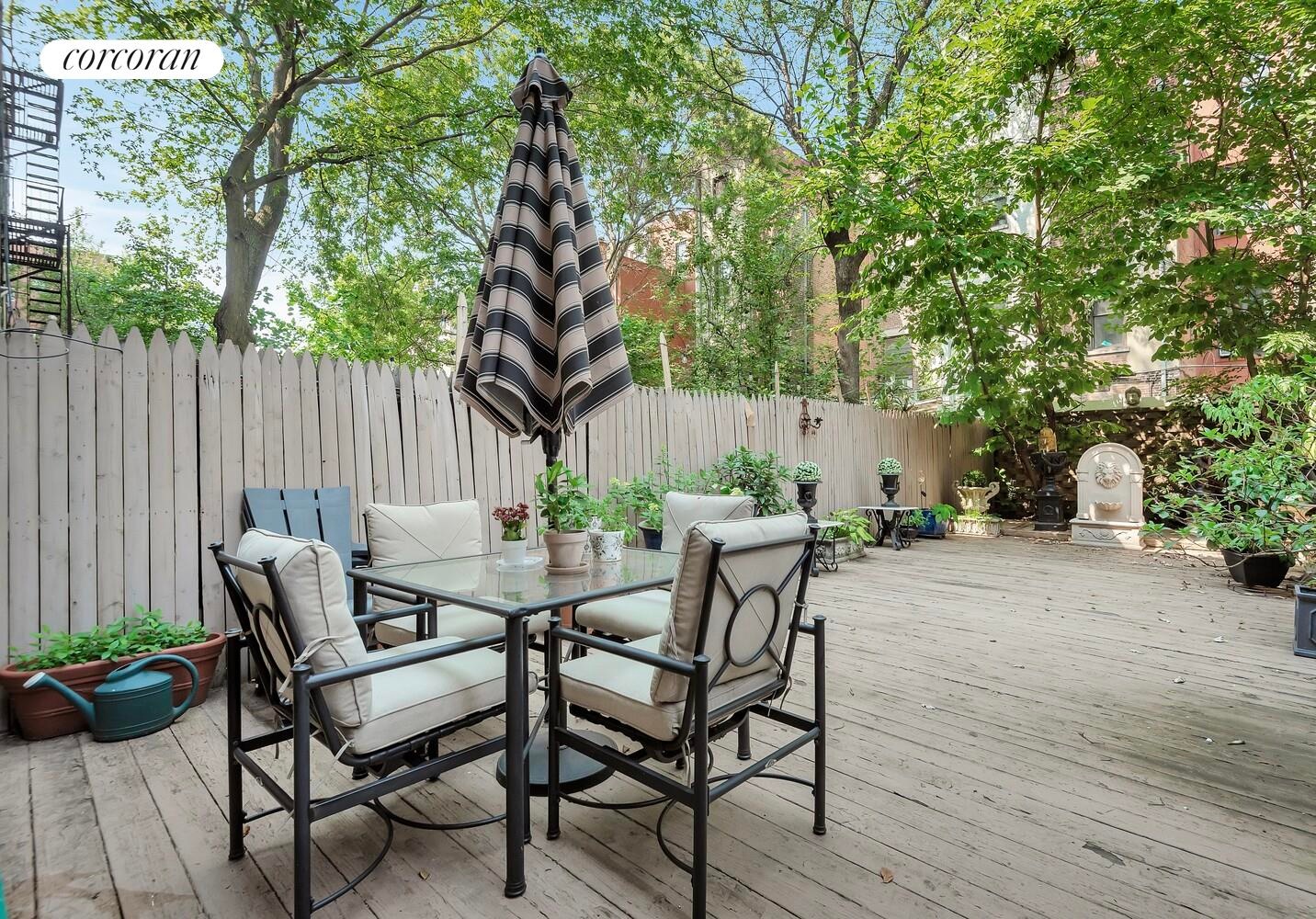 The parlor level features an inviting open-concept layout that flows seamlessly to the upper floors. On the second level, you'll find the primary bedroom boasting high ceilings and generous closet space, along with second bedrooms and a full bathroom. The third level offers the potential for third bedroom or an extra room to suit your needs. The garden level provides direct access to a private backyard, hosting gatherings or enjoying peaceful outdoor moments.