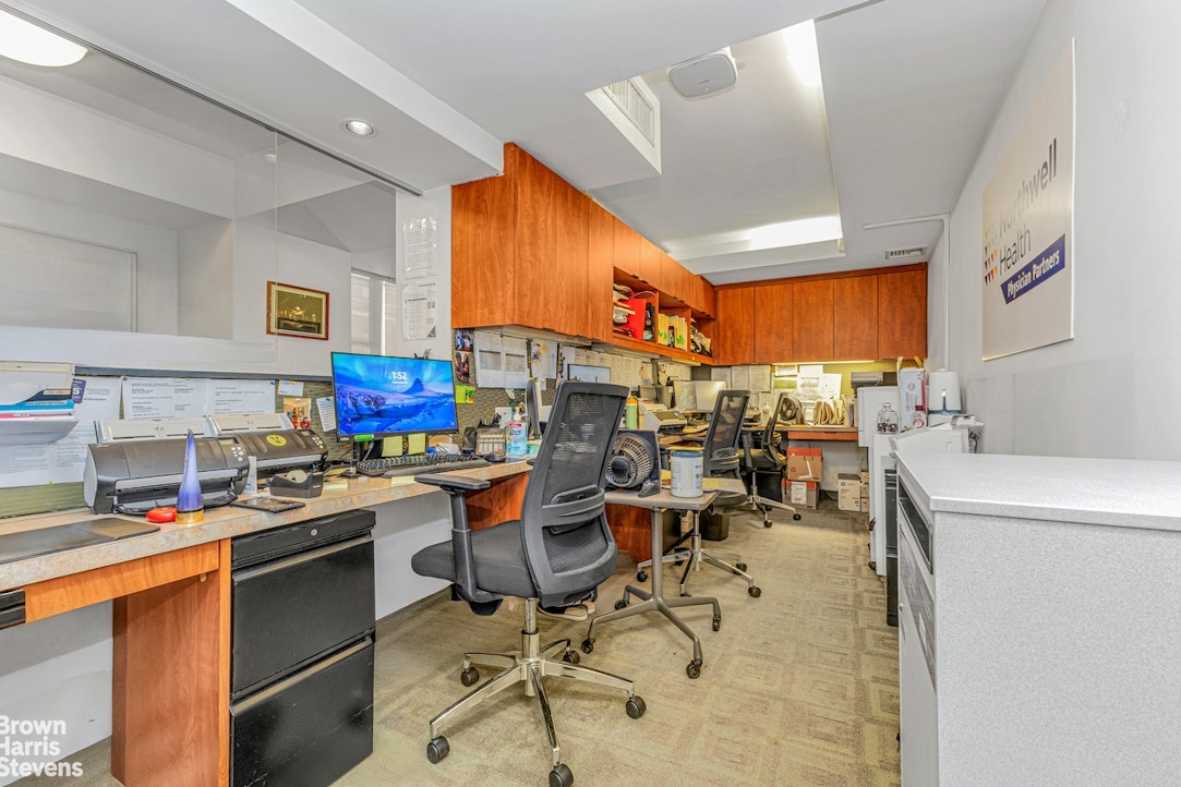 lobby, this property offers a myriad of potential as an office or live/work situation. At approximately 1,500 SF this south facing space currently has four doctor's consultation rooms, a large reception area, waiting room, storage area, kitchen and 2 baths. Thru wall AC. Building has approved changes of Certificate of Occupancy for a residential