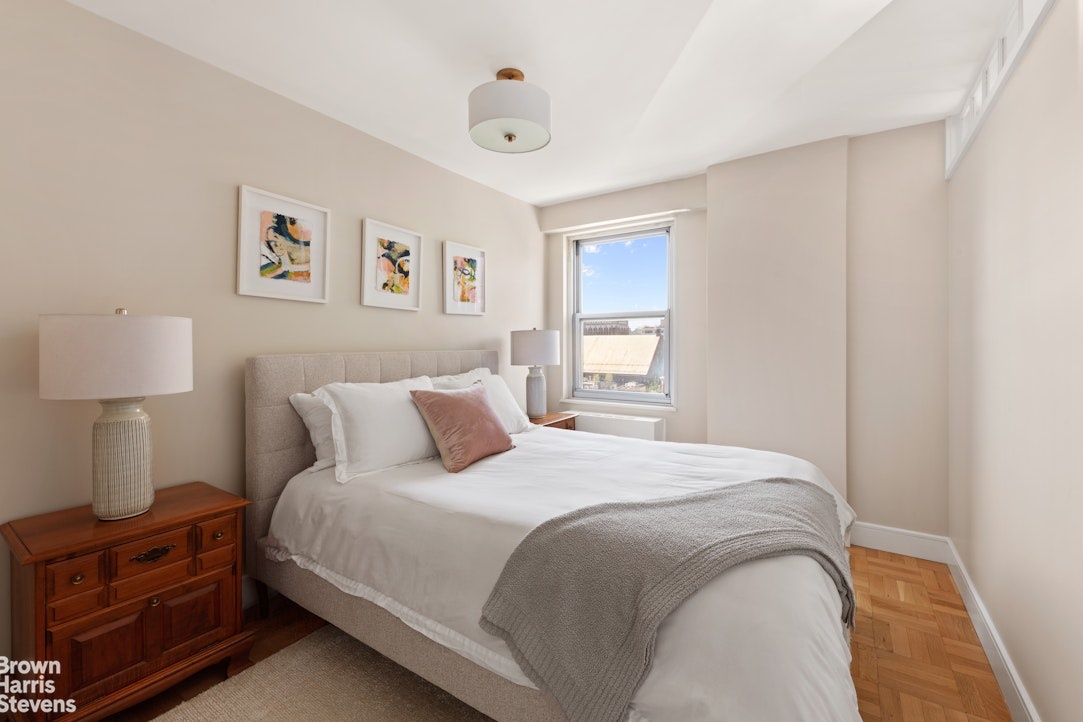 Spacious, Sunny Junior 1 with a South facing  living/dining area is adorned with hardwood floors throughout. It has  a renovated galley kitchen with a quartz countertop and custom  cabinetry. The bedroom is also south facing and it leads to a dressing area with room  for a vanity or dresser and two ample closets that lead into the newly renovated bath.  The bath has attractive ceramic tiles and a Carrara marble vanity. Upon entering the gracious entryway, you are greeted by two large custom closets.