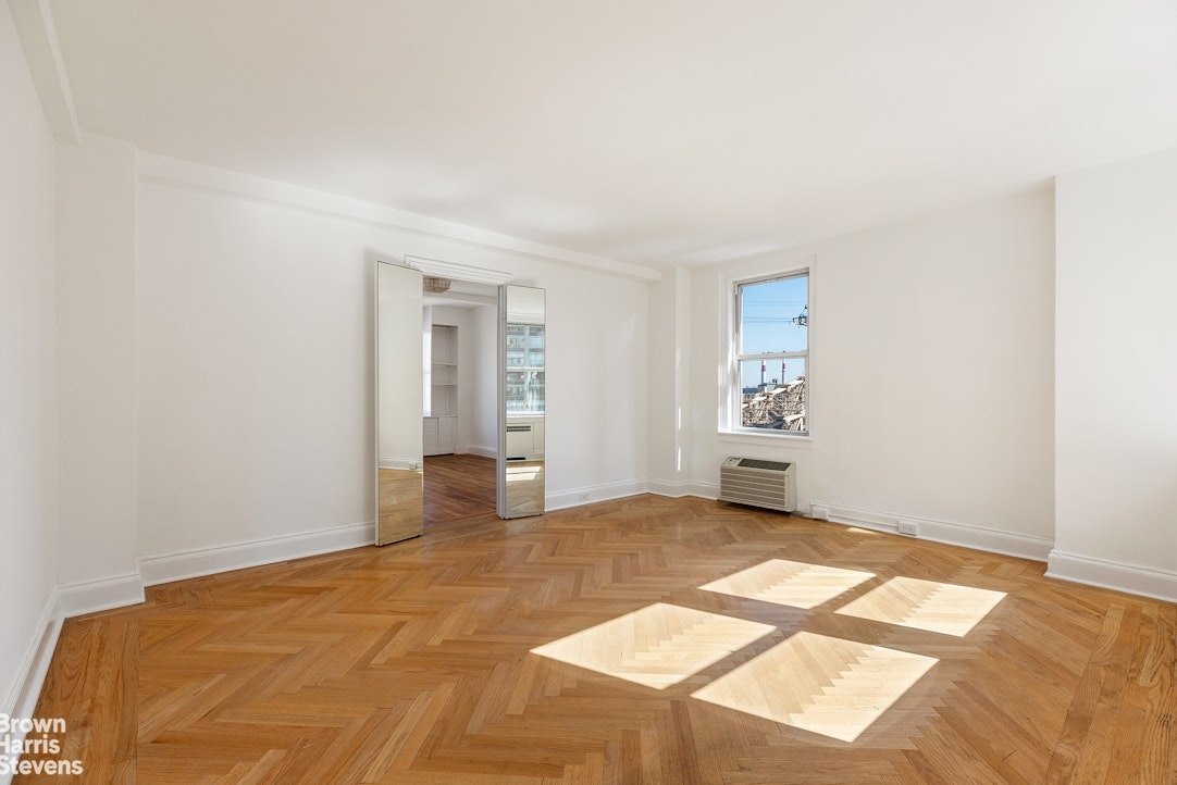 Enter into a gracious foyer with a generous coat closet and be drawn into the sun-washed living room, where soaring ceilings, classic herringbone floors, and panoramic vistas of the East River and Queensboro Bridge create an inspiring space for everyday living and entertaining.