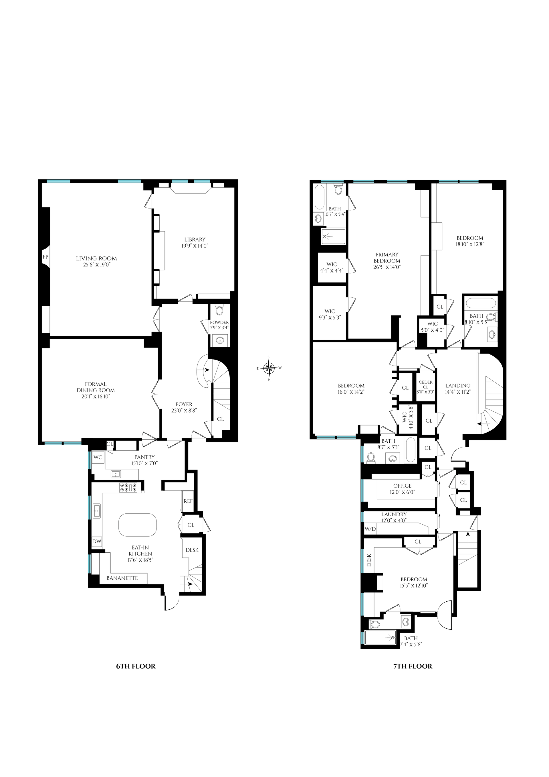 One enters the apartment through a semi-private elevator vestibule leading into a beautifully proportioned and inviting foyer with sweeping staircase contained within a curved alcove. There is a powder room off the foyer. To the south, are the impressive living room with wood burning fireplace and two windows facing the top of the remains of the old Squadron A Carnegie Hill Armory, and a large but cosy library. The spacious dining room faces north, while the fabulous, renovated eat-in kitchen and pantry face east and have top of the line appliances and replaced cabinets. There is a secondary staircase leading from the kitchen to the upper floor of the apartment