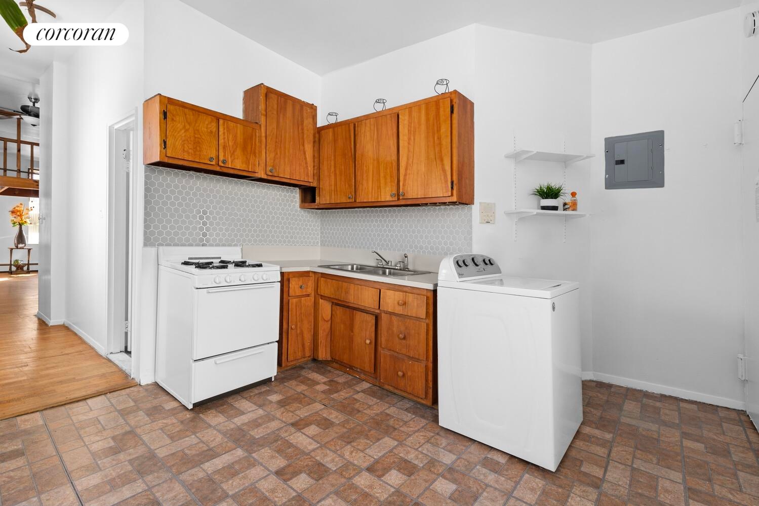 Charming East Village studio with sleeping loft and great natural light. Perched on the top floor of a well-maintained walk-up, this thoughtfully designed home features high ceilings and oversized windows that flood the space with natural light. The renovated kitchen includes an in-unit washer - a rare find in this neighborhood - making city living convenient.