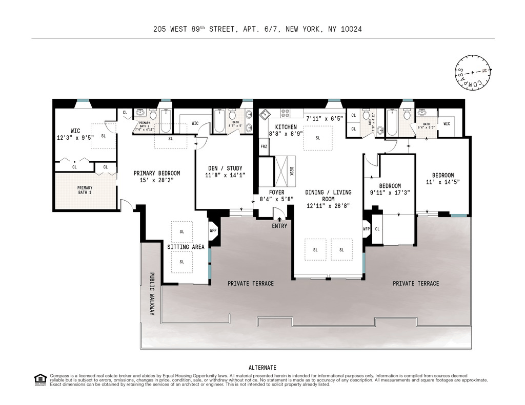 More than a penthouse—PH 6/7 at 205 W 89th St is a private retreat where indoor–outdoor living defines the experience. A Saltillo-tiled walkway guides you to your residence, which opens onto a sprawling roof terrace that feels worlds away from the city below. Here, every season invites its own rhythm: long summer evenings with friends, crisp autumn mornings with coffee, or quiet winter nights under the stars by the fire inside.