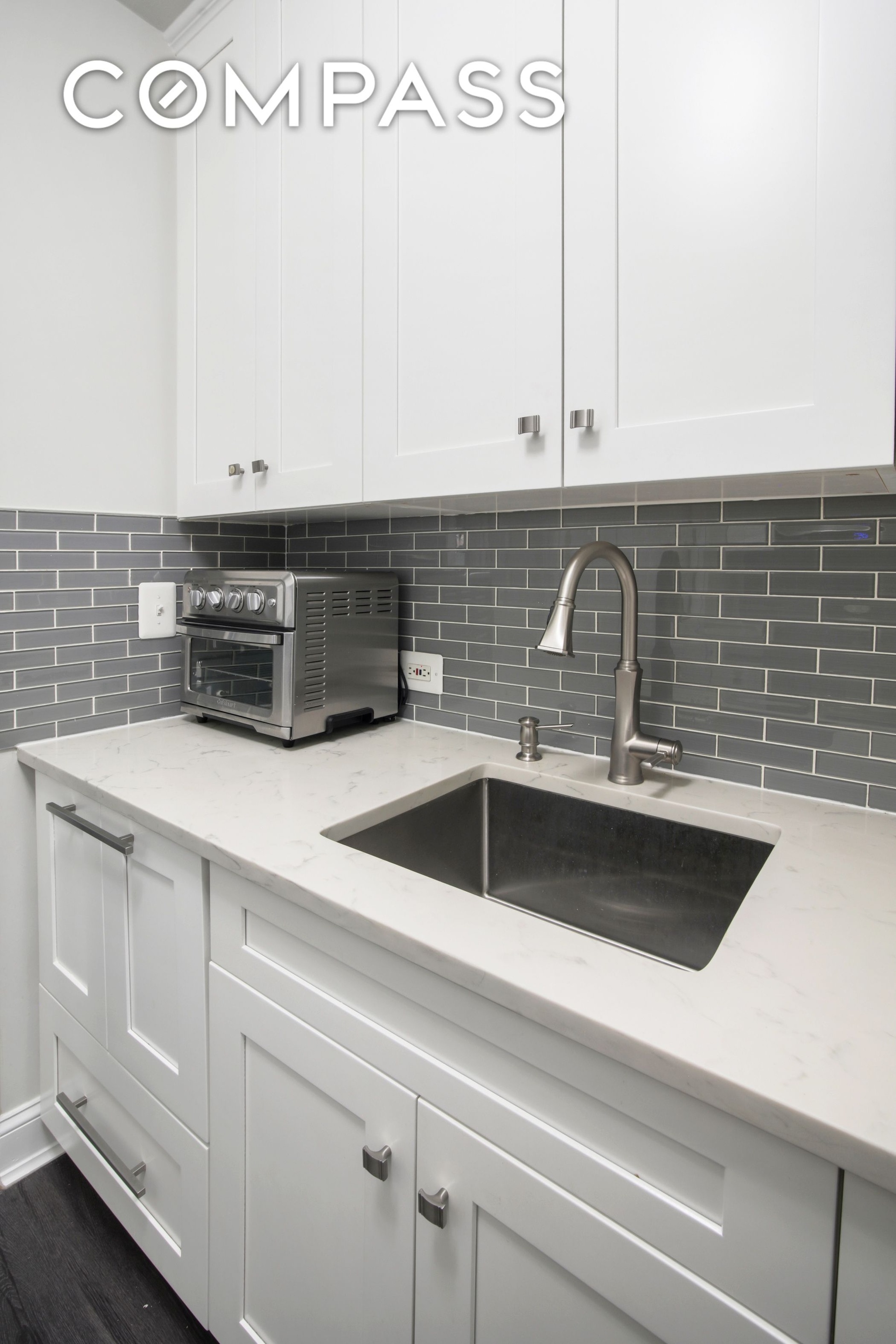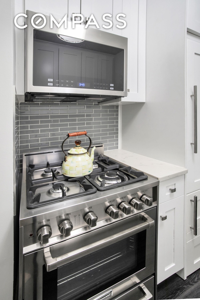Residence 2F boasts a number of custom features, including California closets, a Nest climate-control system, and elegant crown and baseboard molding throughout. The enclosed kitchen is both stylish and efficient, outfitted with a Verona range, premium countertops, and a Fisher & Paykel draw dishwasher and Liebherr refrigerator - both seamlessly integrated into matching white cabinetry with generous storage.