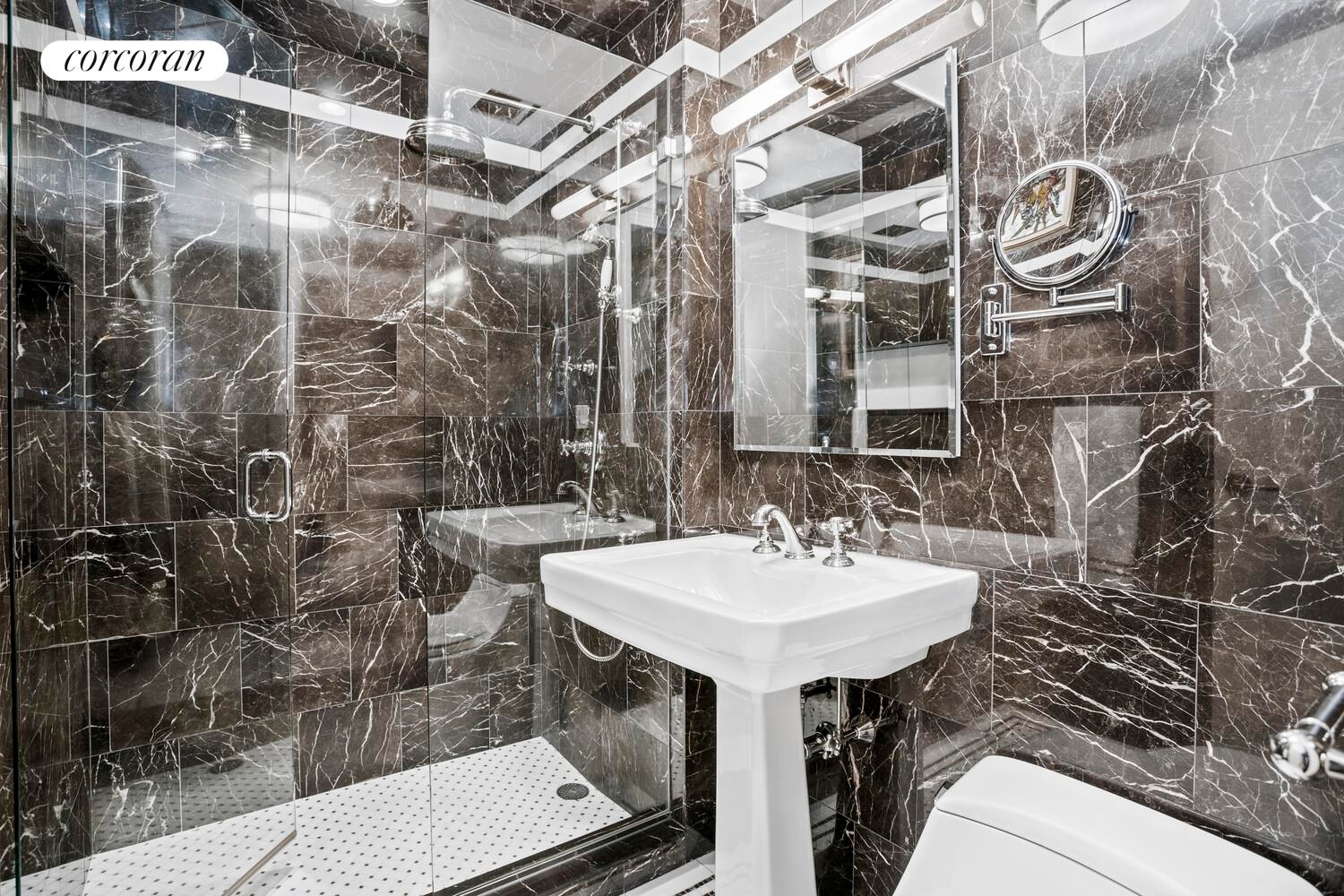 Enter this immaculate, light-filled Classic 6 into the stunning entrance foyer replete with beautiful custom-crafted inlaid wood floors. The oversized living room is flanked by a beautiful terrace which runs the entire width of the apartment and provides the perfect setting for al fresco living. There is a large formal dining room perfect for entertaining with stunning views of the Midtown skyline and Billionaire's Row. The large, windowed kitchen has been renovated to the highest standards with custom cabinetry, top-of-the-line appliances, an in-unit Miele washer/dryer, fantastic storage and counter-space. There is a lovely home-office off of the kitchen that can also be used as a small staff room or guest room. The oversized primary bedroom has fantastic skyline views, lovely built-ins and a renovated, marble bathroom with a stall shower. This home has been meticulously renovated to the highest standards throughout with incredible attention to detail, including magnificent crown moldings, baseboards, venetian plaster walls, gorgeous millwork and flooring throughout. This special home is not to be missed. The Victorian is an impeccably run, white-glove coop located in the heart of the Upper East Side. The building has an on-site parking garage for shareholders and storage as well as a full-time resident manager and full staff to cater to your every need. Electricity and Cable are included in the monthly maintenance. There is a current assessment in place in the amount of $283.33. Note: this building is a land lease which expires in 2099.
