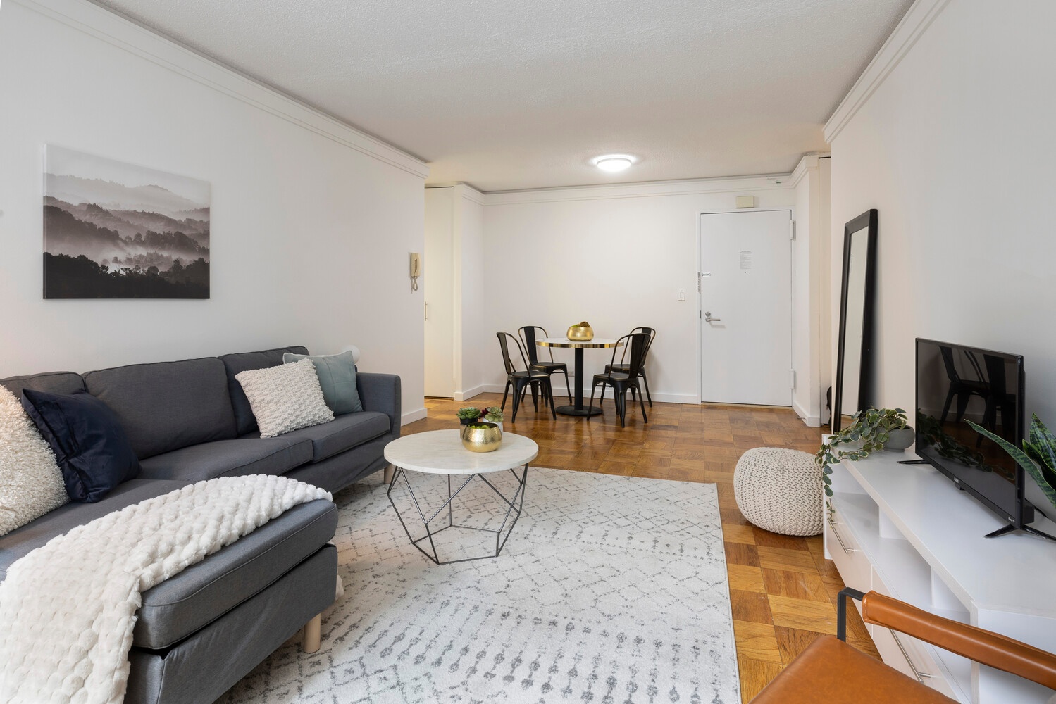 Photos are virtually staged and of a similar apartment in the same line.