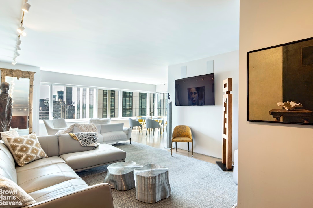 When The Sovereign was built in 1974, Paul Goldberger of The New York Times noted, "The Sovereign is in the super luxury category." The Emory Roth designed building has a lobby that "extends under the entire building, and there are four semiprivate halls per floor - a welcome (and expensive) alternative to the long, double loaded corridor. Such an arrangement has probably not been used in any New York building since the nineteen-thirties."