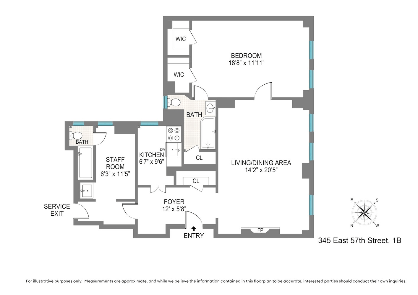 345 East 57th Street is a well-maintained, full-service co-op in the heart of prime Sutton Place. This boutique building offers just 60 residences and features 24-hour doormen, a live-in superintendent, two elevators, a laundry room and a bike room. Residence #1B includes a designated storage locker as well. Pets, pied-à-terre ownership, co-purchasing, parental purchases, and gifting are all permitted. Financing is available up to 75%, with a 2% flip tax split evenly between buyer and seller..