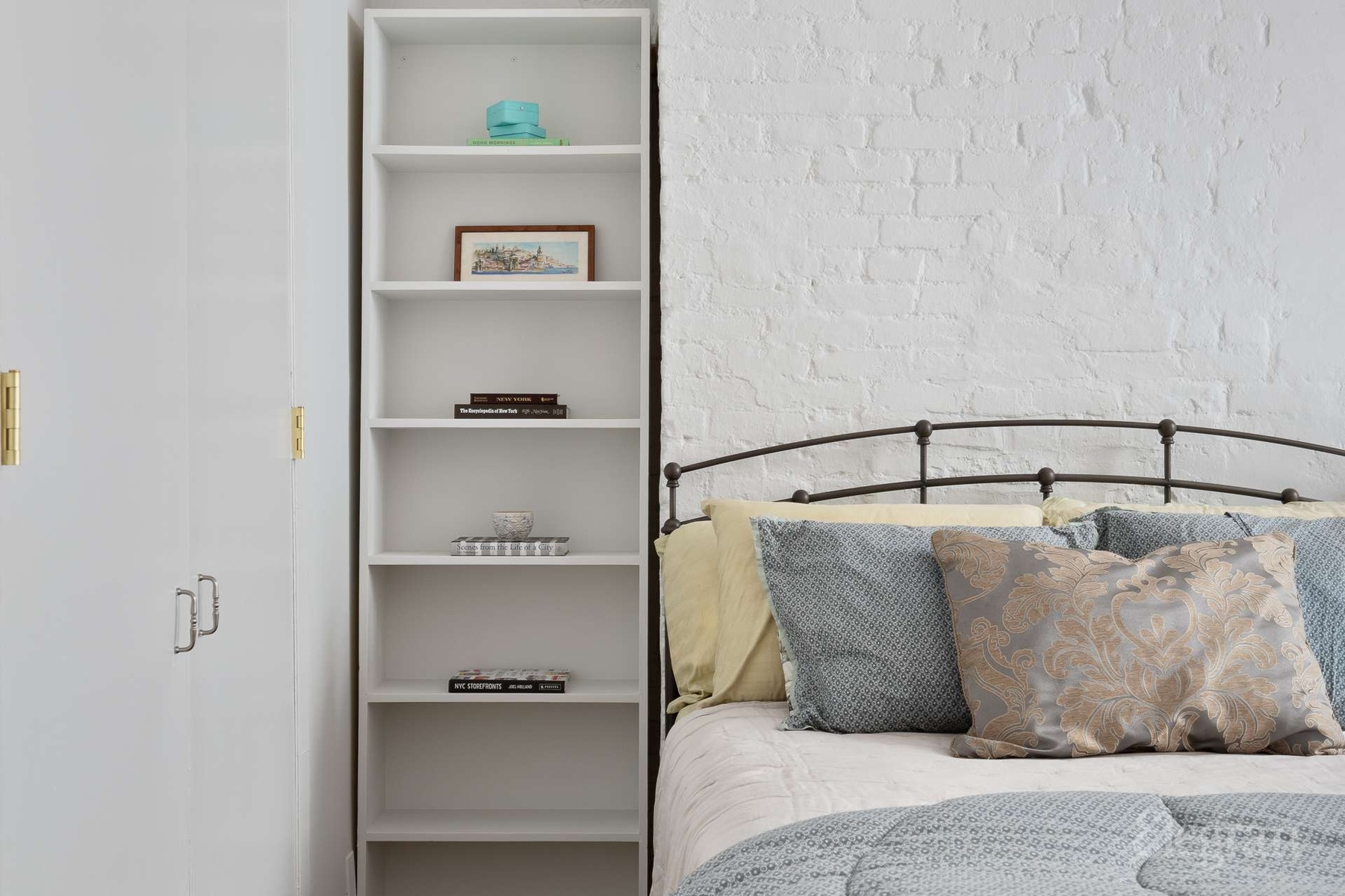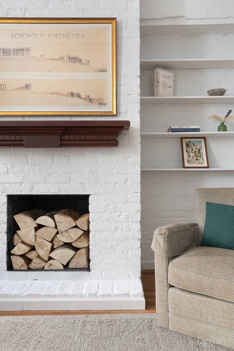 There are many special pre-war details throughout the apartment, including exposed brick, a working fireplace, nearly 10-foot ceilings, built-ins, and hardwood floors, just to name a few.