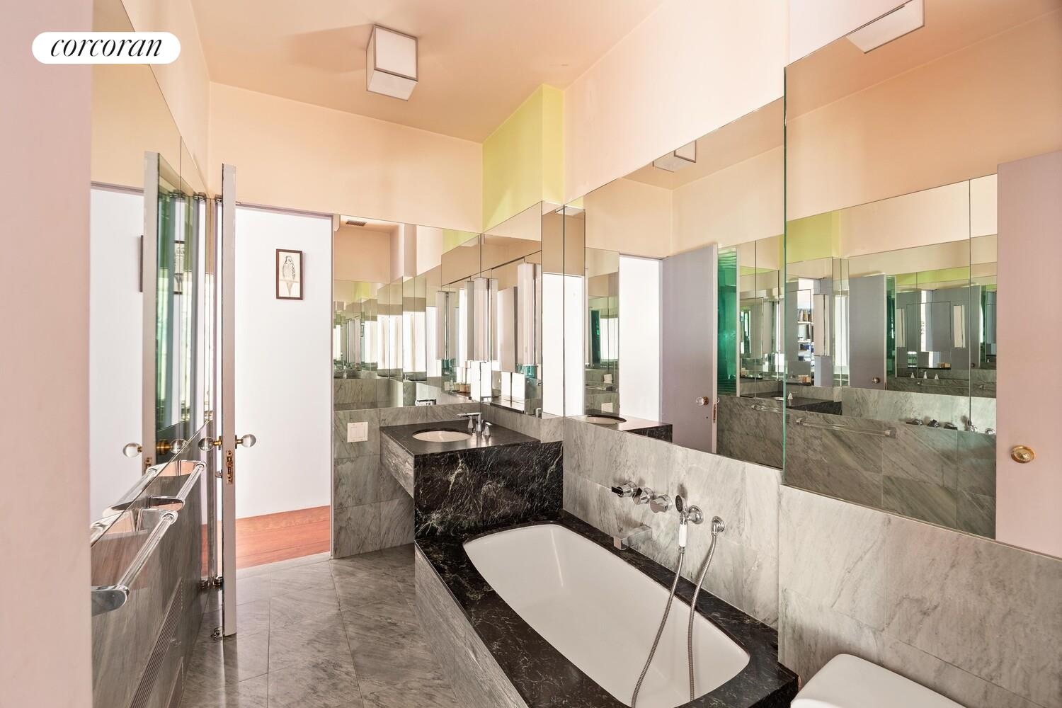 Originally designed by Peter Marino early in his career, the home boasts architectural significance, scale, light, and limitless potential. Currently configured with five bedrooms plus an office, the layout supports both grand-scale entertaining and flexible live/work use.