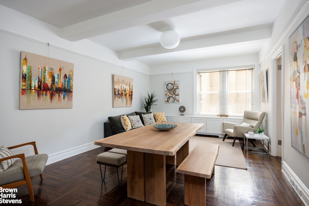 Step into a gracious entry foyer with a large coat closet and immediately you are impressed by charming pre-war details including high, beamed ceilings and beautiful hardwood floors. The foyer leads to the spacious and wide living room, which gets wonderful light from the three windows facing over double wide 96th Street. The massive dining room is an entertainer's dream, large enough to host huge dinners or use the space as both a dining room and a den. The wonderfully renovated, windowed eat-in chef's kitchen boasts a large eating area, a 6 burner Wolf range, Subzero refrigerator, Miele dishwasher, washer/dryer, and tons of storage space. It gets great Eastern light too!