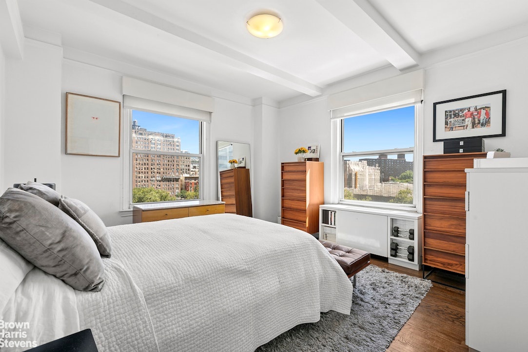 The corner bedroom with east & north exposures is large, fits a king sized bed and much more.