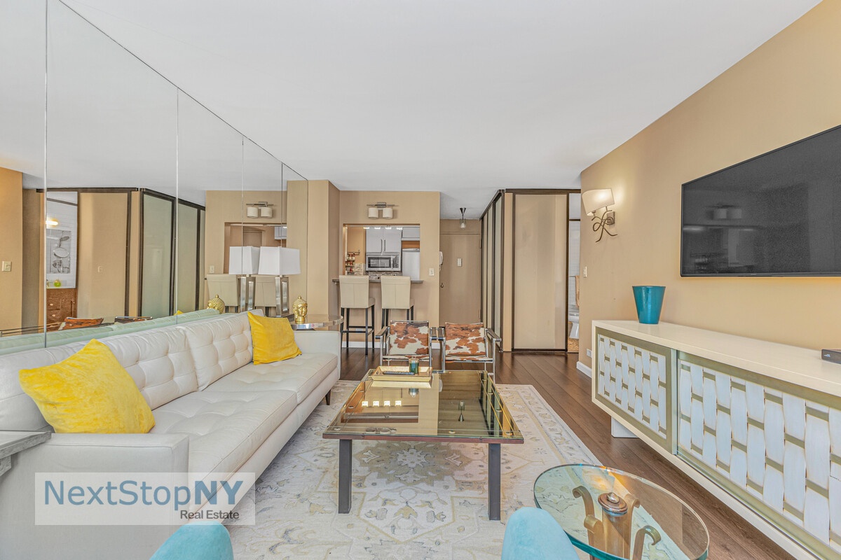 This high-floor one-bedroom offers a spacious layout and a beautifully renovated interior. The large living room is complemented by a modern pass-through kitchen featuring updated finishes, while the oversized bedroom easily accommodates a king-sized bed with room for additional furniture. Newly installed wood floors throughout add warmth and elegance.