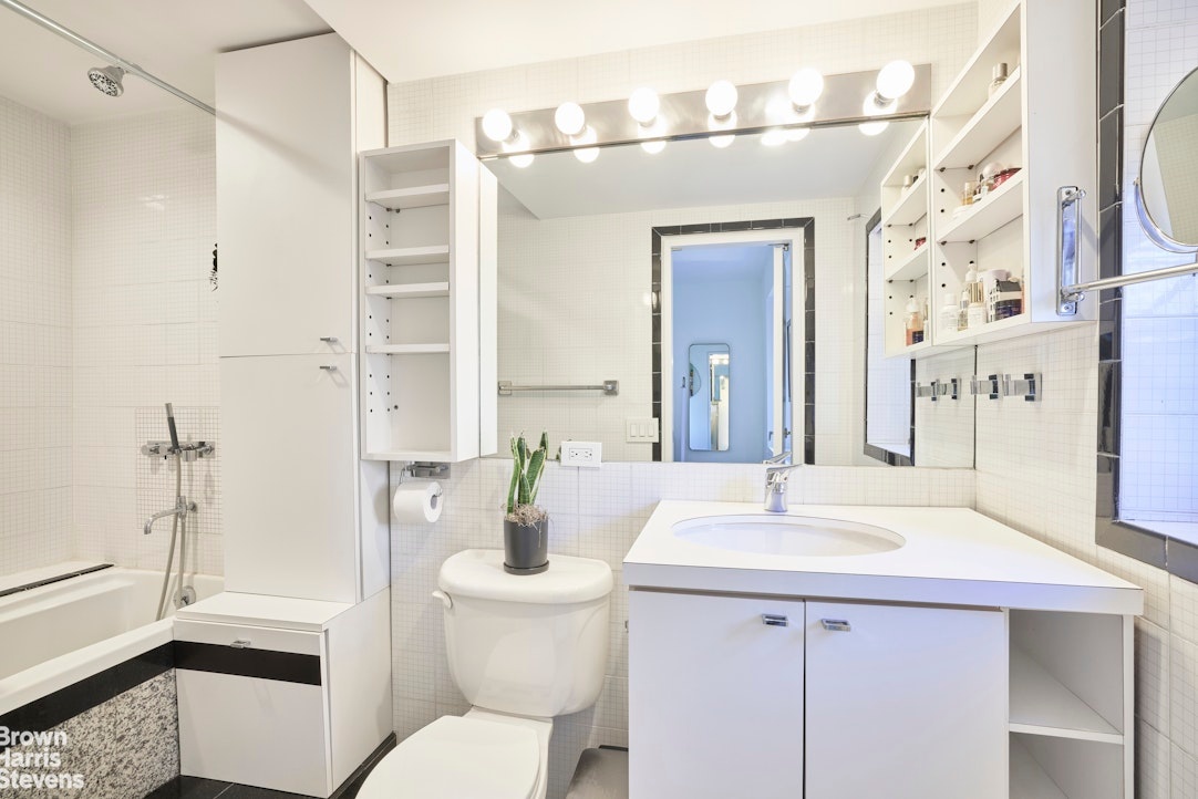 walk-in closet upon entry, and a windowed en suite bath. The second bedroom has three closets, a built-in desk and custom bookshelves, and a charming view. The windowed second bath, located off the bedroom hall, also serves as a guest bath and includes a vented stacked washer/dryer. The apartment features recently renovated through-the-wall air conditioning as well as a vast walk-in closet off the bedroom hall, with ample room to store luggage, skis, golf clubs, and bikes. Use of a large storage bin also transfers with the apartment.