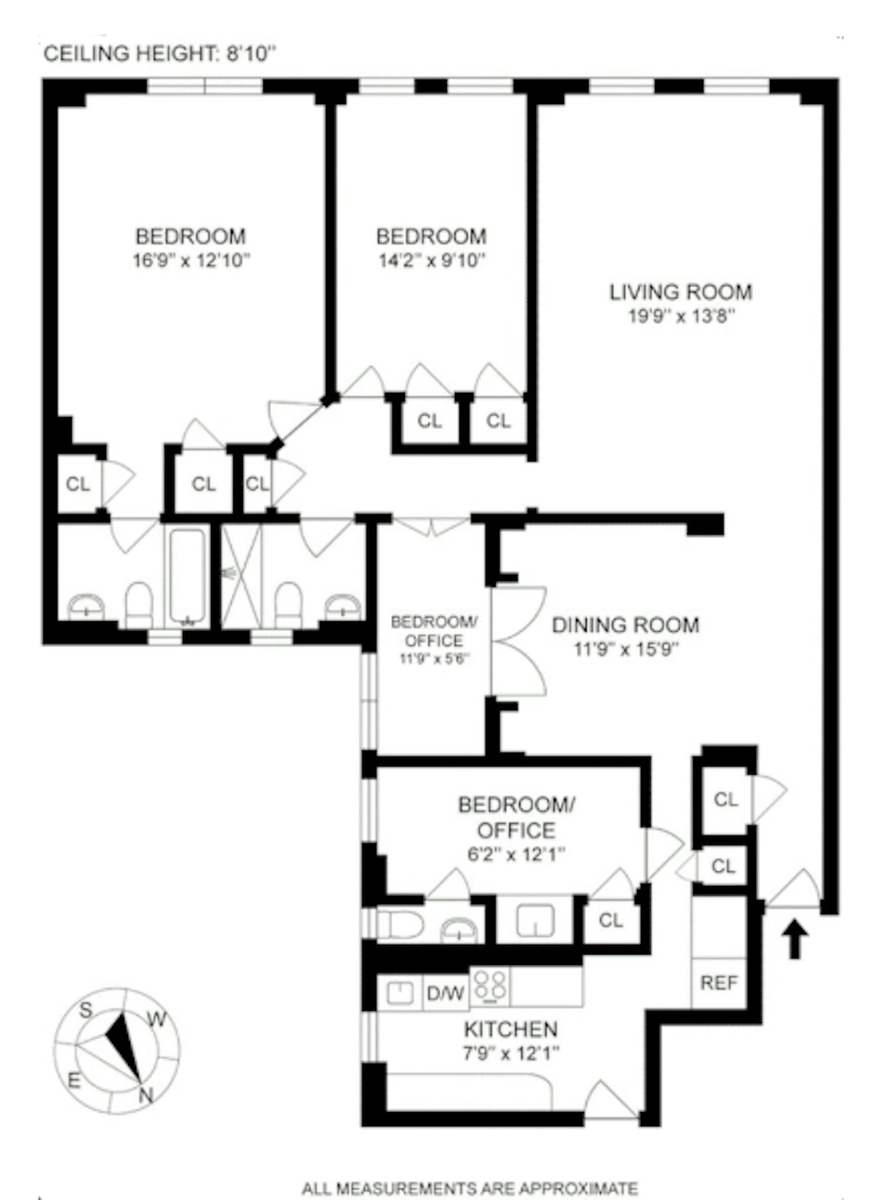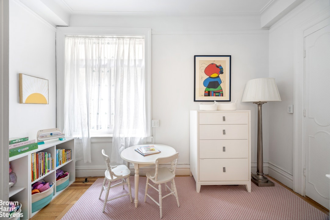 This elegant Classic 6 residence offers an ideal layout paired with timeless prewar charm. With only three neighboring units per floor, this home begins with a gracious entry foyer that flows into a large living room and a generously sized formal dining room. Off the dining room is a small room with a large window perfect for an office/nursery. Both bedrooms are located off a bedroom hallway and face East 90th Street. The oversized primary bedroom features an en suite bath and ample closet space. The second bedroom is also generously proportioned, with abundant natural light and lovely neighborhood views.
