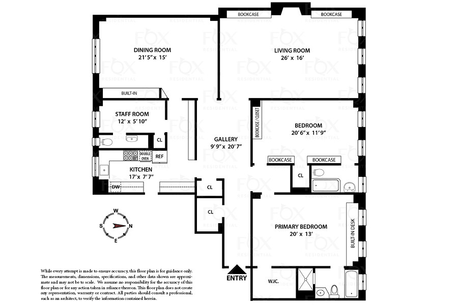 The large, windowed kitchen, staff room, and bath offer tremendous potential and await your personal touch. Two oversized bedrooms, each with en-suite baths, have exceptional closet and storage space, offering comfort and flexibility rarely found in the city.