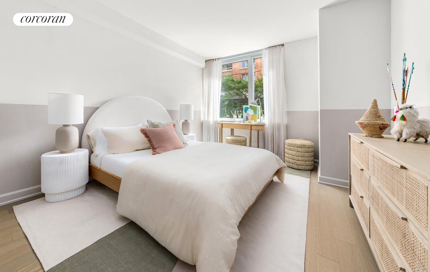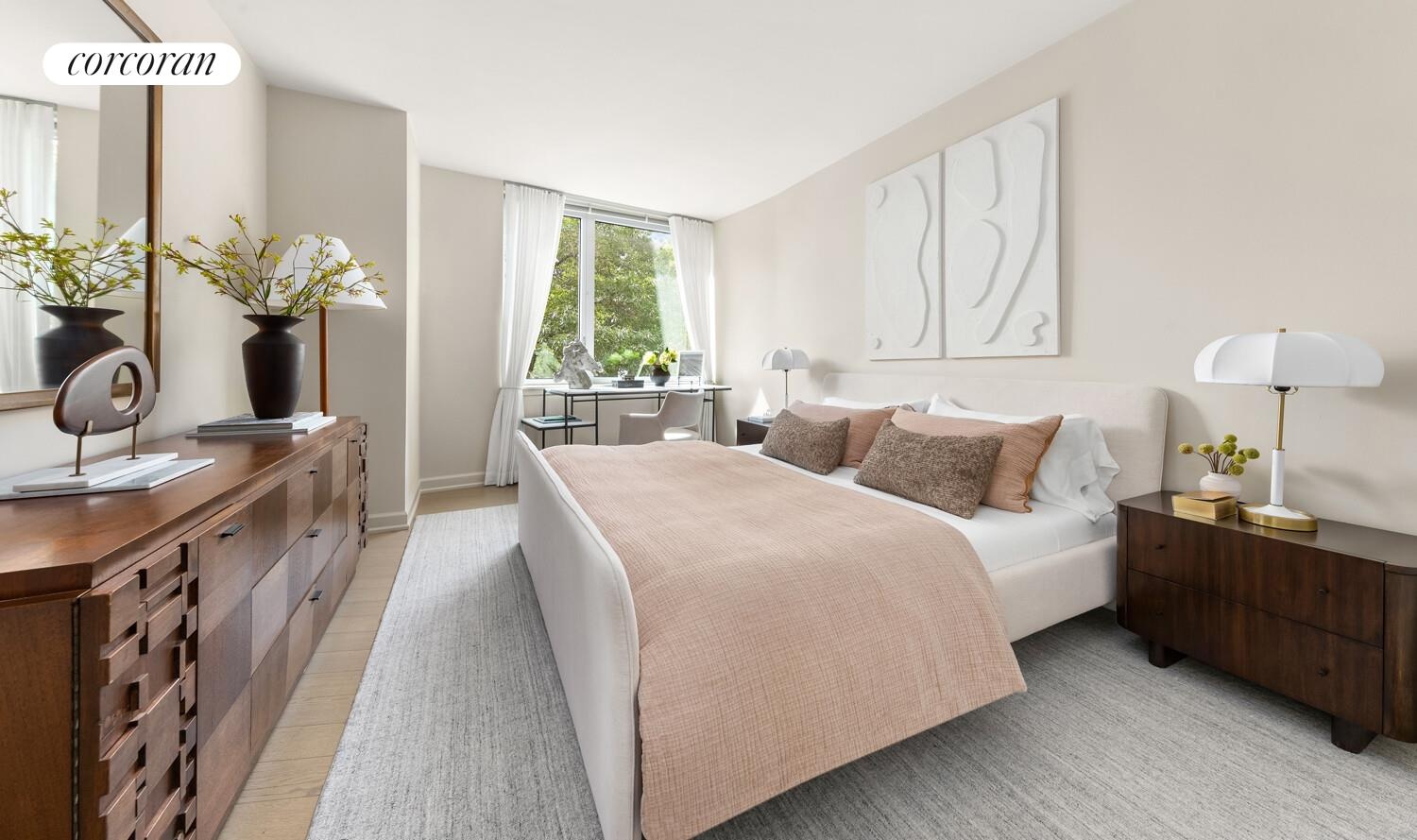 Residence 17M is a gracious, 1,594 sq. ft. three-bedroom, three-bath home designed by Pelli Clarke Pelli to meet the highest level of green building certification. Upon entering this south- and west-facing corner residence, experience abundant natural light and direct views of the Hudson River. Enjoy both river and park views from the living room and the kitchen as well as stunning river views from the bedrooms. All three bedrooms boast ample closet space and there are two additional closets in the foyer for extra storage. The kitchen features a suite of stainless steel, Energy Star appliances, and a granite breakfast bar that is great for entertaining. A Bosch washer and dryer set completes the appliance package and a four-pipe multi-zone heating and cooling system allows for whisper quiet comfort and energy savings year-round.