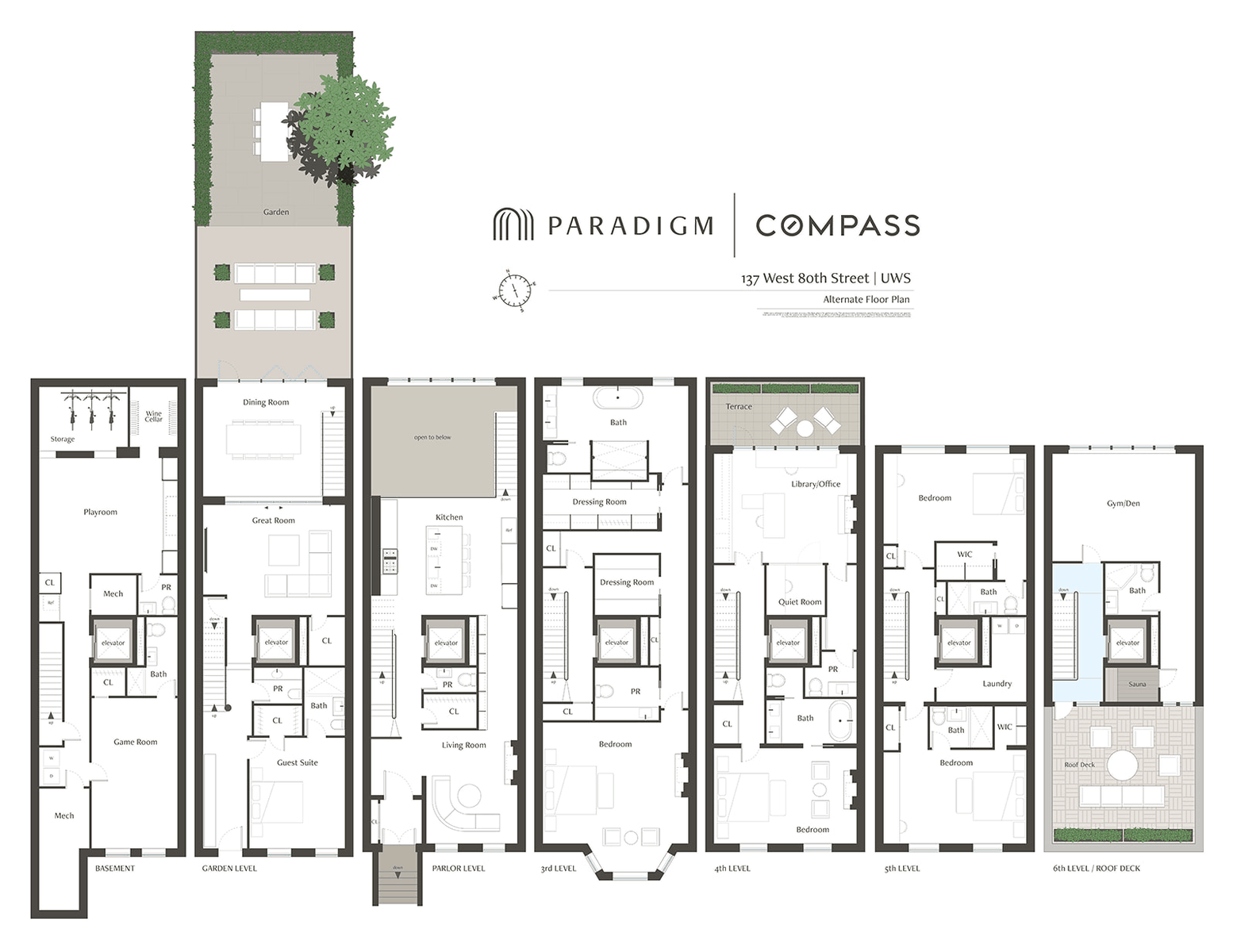 With conceptual plans already envisioned for a dramatic reinvention that could transfer with the property, this residence offers an extraordinary opportunity to be transformed into a true single-family home. Imagine 6 or 7 levels of refined living connected by a private elevator, complete with multiple entertaining spaces, a gym with sauna, and a glass-enclosed rooftop with dual terraces for outdoor lounging and dining. Thoughtful design elements like a playroom, wine cellar, and multiple dressing rooms elevate the everyday, while the reimagined garden and seamless indoor-outdoor flow create a rare and luxurious lifestyle in the heart of the city.
