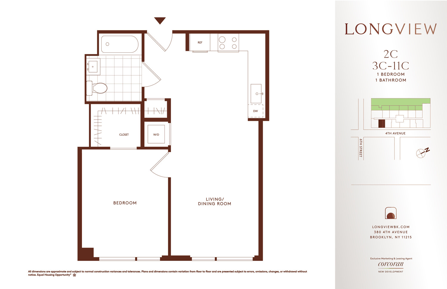 Eastern Facing Designer one bedroom with Park Slope streetscape views only minutes from the F, G and R Subway lines and across from JJ Byrne / Washington Park. Contact a Corcoran New Development Representative today for more information and to schedule a private tour.