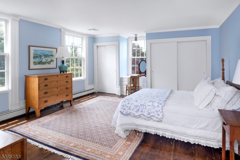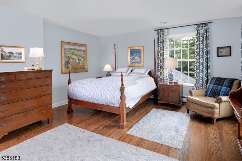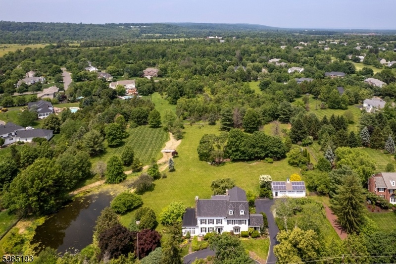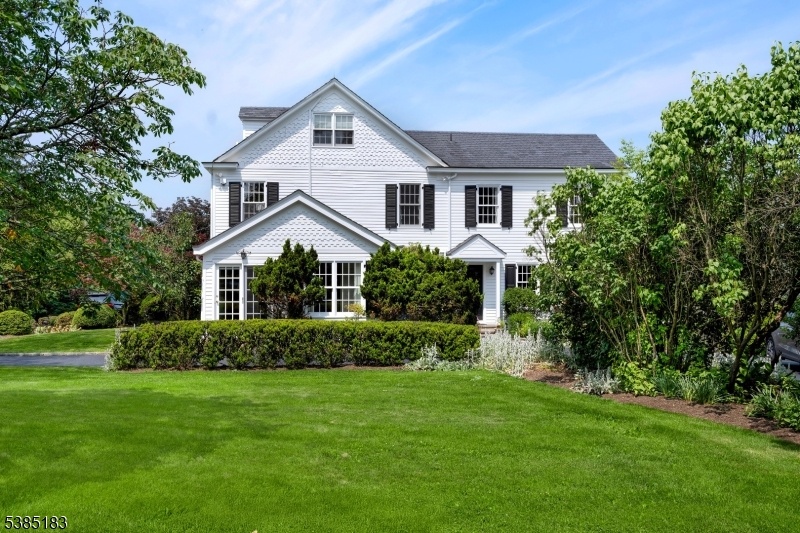 An elegant white 19th century Federal Style Home just 5 miles from Princeton stands on four acres with sweeping views of bountiful gardens, a picturesque pond and park like lawns.