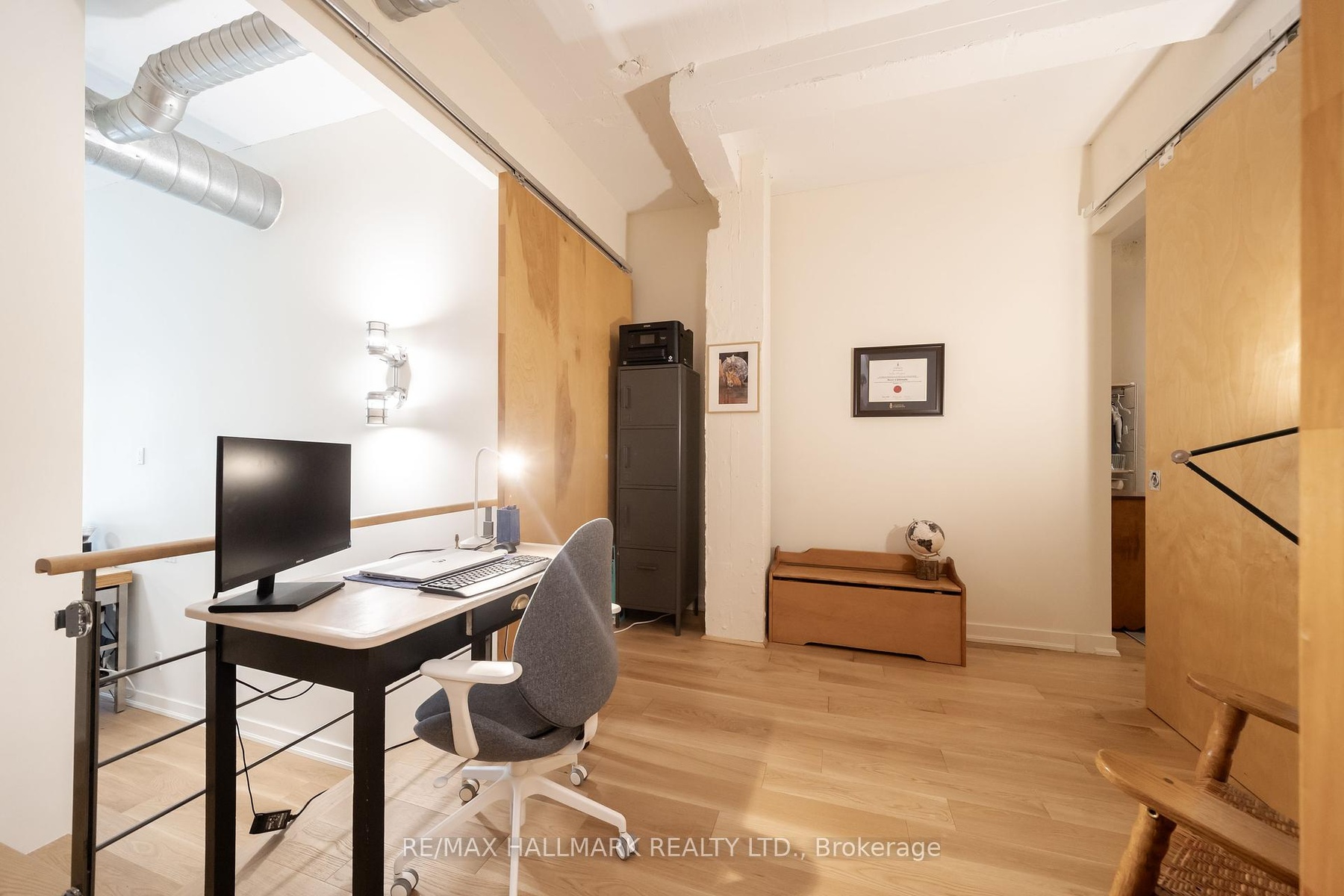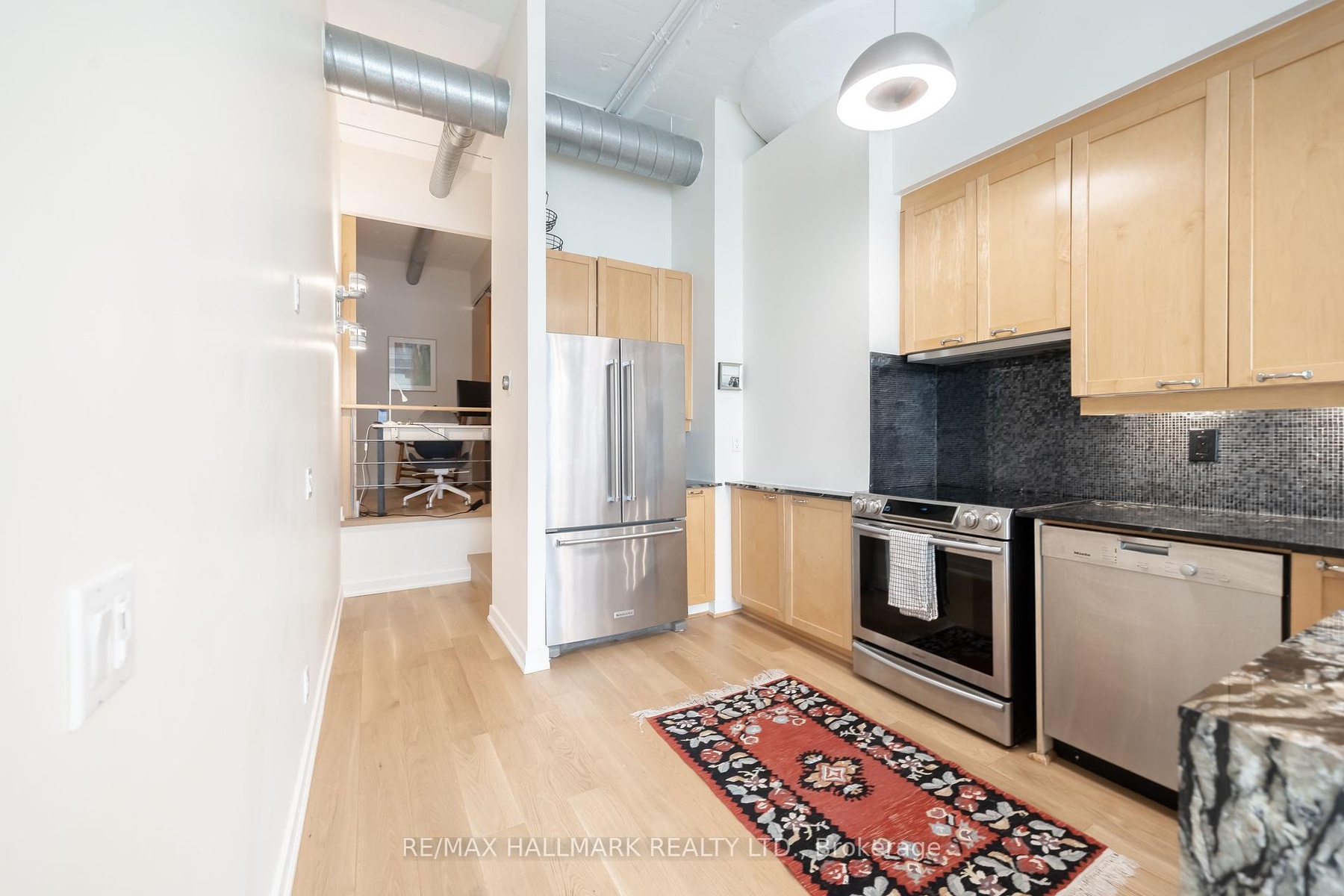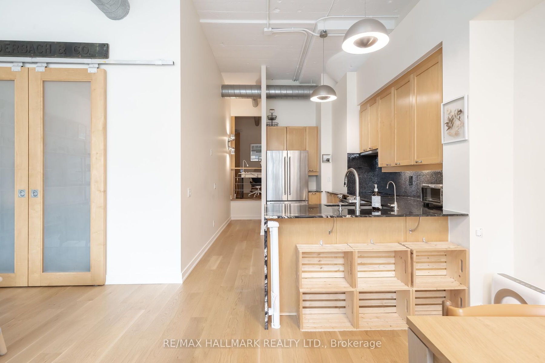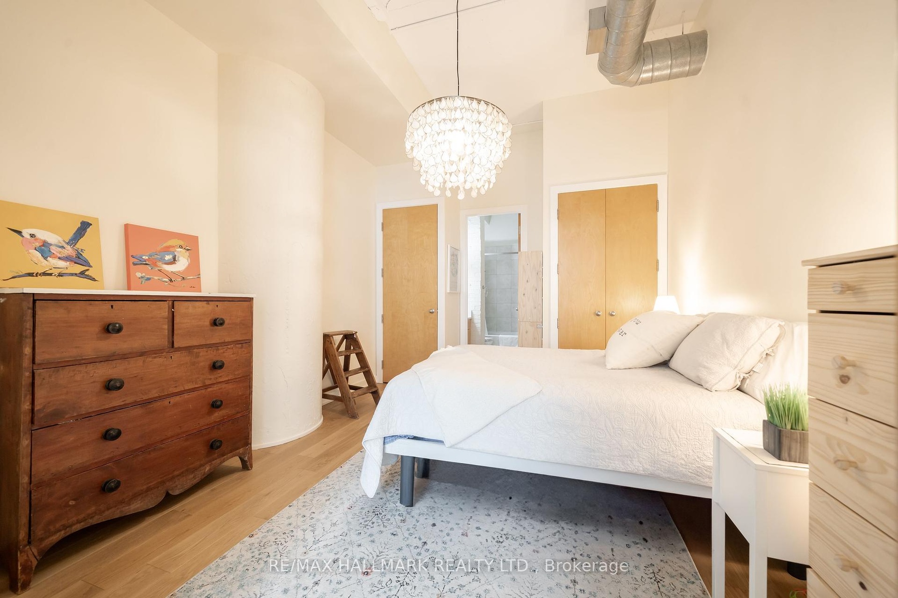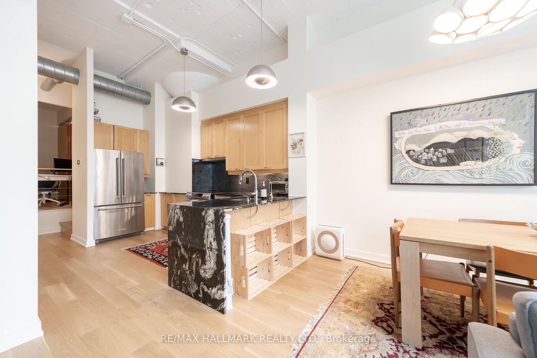 Live in Iconic Merchandise Lofts! Experience the best of downtown living in this South-facing spacious 2+Den with over 1,200 sq ft of living space, featuring soaring 12 ft ceilings and expansive windows that flood the space with natural light. Open concept chefs kitchen with beautiful granite waterfall countertops, and stainless steel appliances - perfect for entertaining or everyday living. Functional layout with primary bedroom featuring ensuite bath & storage, second bedroom plus versatile den/workspace. Includes parking & locker. Step outside and unwind on the incredible rooftop oasis offering gardens, BBQs, sunbathing areas, dog walk space, and an indoor pool - ideal for relaxing or hosting friends. Amenities include a fully equipped gym, yoga room, sauna, library, and games room. Enjoy unmatched convenience with a Walk Score of 100. Metro Supermarket and Page One Café right in the building. Just a 5-minute walk to Eaton Centre, Dundas Square, Toronto Metropolitan University, TTC and endless dining along Yonge Street.This is your chance to own a piece of Toronto history in one of its most sought-after loft conversions!
