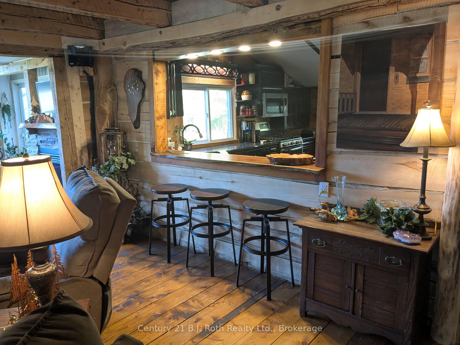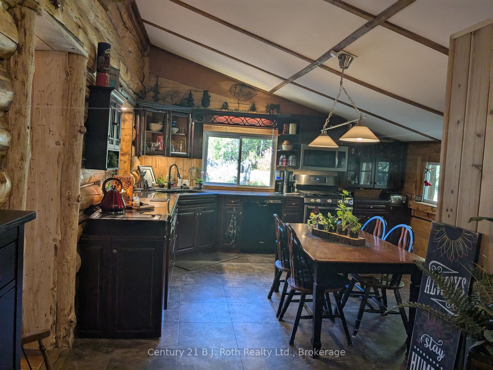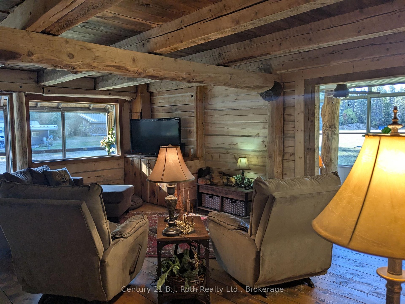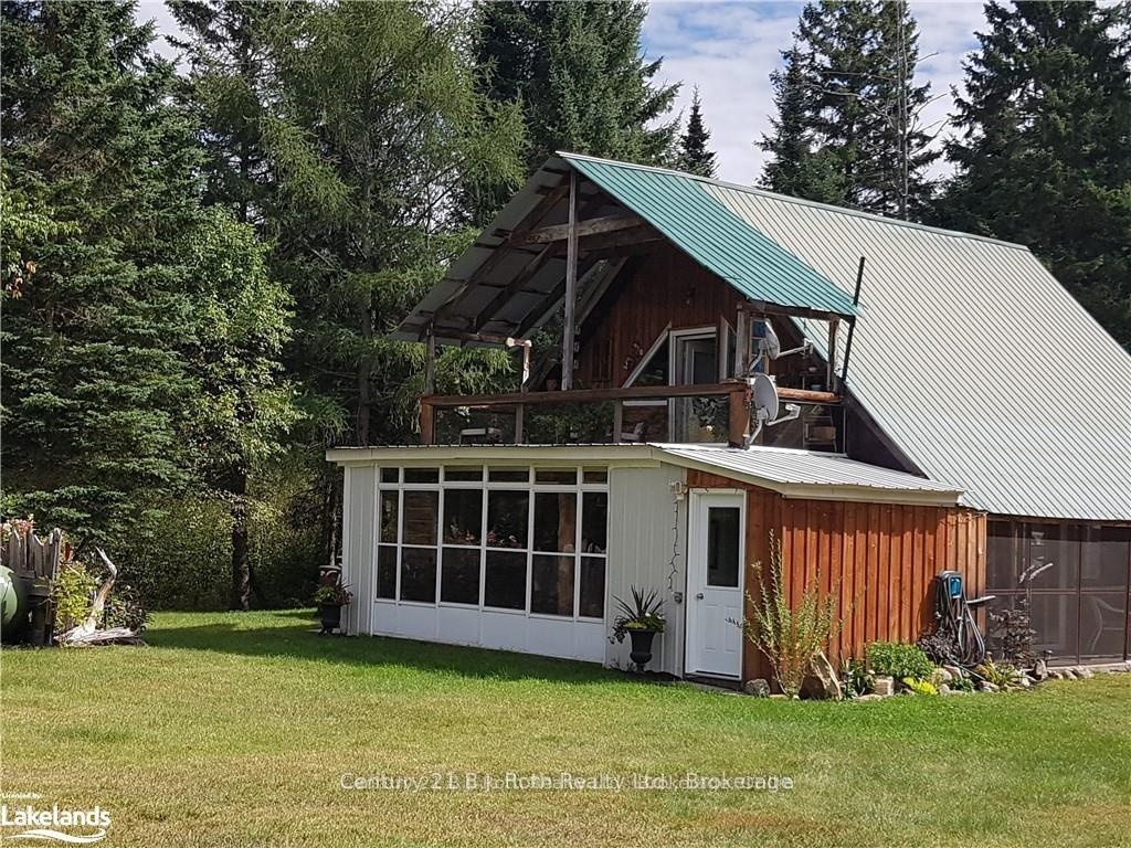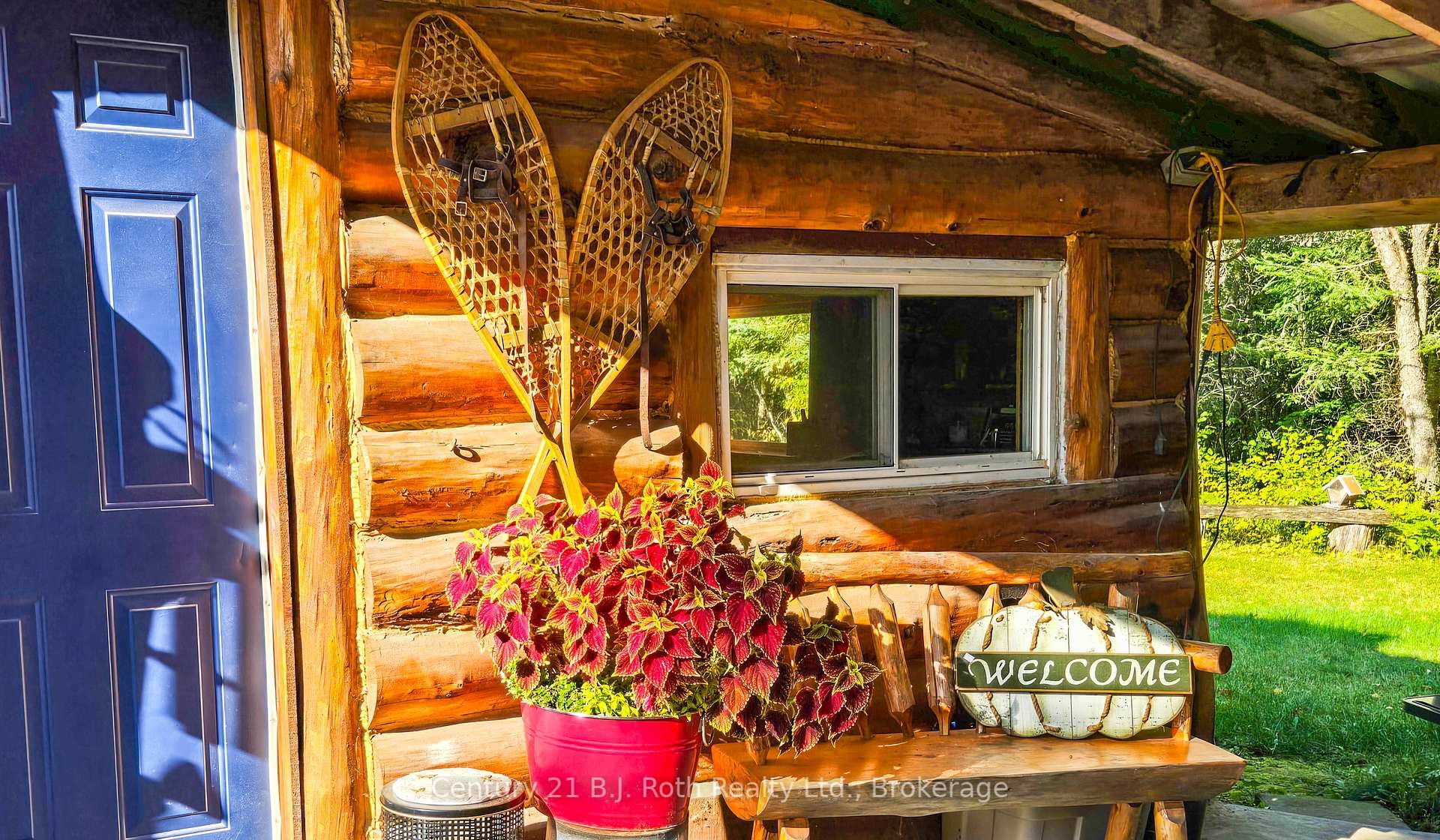 CHARMING LOG HOME PRIVATELY SITUATED ON OVER 62 ACRES WITH TRAILS TO CALL YOUR OWN! BEAUTIFUL POND WITH SAND BEACH SO YOU CAN CAMP AT YOUR OWN OASIS. ROMANTIC TREE LINED DRIVEWAY LEADS YOU TO THIS PERFECT SETTING! CUSTOM LOG HOME WITH METAL ROOF + ATTACHED COVERED PATIO + CARPORT/STORAGE + ATTACHED GARAGE/WORKSHOP! IMPRESSIVE MAIN FLOOR COUNTRY KITCHEN WITH CUSTOM CABINETRY OPEN TO INVITING LIVINGROOM WITH BRIGHT LOG AMBIANCE & ROMANTIC PROPANE FIREPLACE. MAIN FLOOR FAMILY ROOM/BEDROOM ALSO HAS BEAUTIFUL PROPANE FIREPLACE WITH 'LIVE EDGE" MANTEL FOR COZY WINTER EVENINGS. NEWER 3 PC BATH AND SEPARATE ENTRANCE COMPLETES THE MAIN FLOOR.HARDWOOD FLO0RS & STAMPED CONCRETE + SOME LAMINATE. UPSTAIRS THERE ARE 2 BEDROOMS, 4 PC BATH WITH JACUZZI TUB, FULL SIZE LAUNDRY WITH A ROMEO AND JULIETTE BALCONY OVERLOOKING YOUR VERY OWN ESTATE. WATCH THE DEER AND BULL MOOSE WANDER THROUGH TO THE POND. EXCITING WILDLIFE VIEWING PERCH! CUTE BUNKIE FOR EXTRA GUESTS + SECOND CABIN IN THE WOODS AT BACK OF PROPERTY ON THE TRAILS. 2 PROPANE FIREPLACES ARE MAIN SOURCE OF HEAT WITH ELECTRIC BASEBOARD AS BACK UP. BRIGGS AND STRATTON HARD WIRED GENERATOR. THERE IS A SEASONAL CLOSED-IN SUNROOM ON THE FRONT WITH REMOVABLE PANELS. KEARNEY HAS DOG SLED RACES IN FEB., SNOWMOBILE TRAILS THROUGHOUT, ATV TRAILS THROUGHOUT, BEACHES ALL AROUND, ALGONQUIN PARK AT YOUR DOORSTEP, IDEALLY LOCATED ON A PAVED YEAR ROUND ROAD WITH HIGH SPEED INTERNET, CROWN LAND FOR HUNTING, RESTAURANT, CONVENIENCE STORE, LCBO & BAR IN TOWN ALONG WITH A COMMUNITY CENTER. PERFECT PACKAGE FOR YOU AND YOUR FAMILY! FLEXIBLE CLOSING! COME TAKE A LOOK! FALL COLOURS HAVE STARTED. BEAUTIFUL SCENIC DRIVE TO THIS PROPERTY.