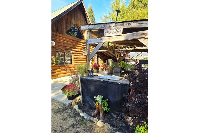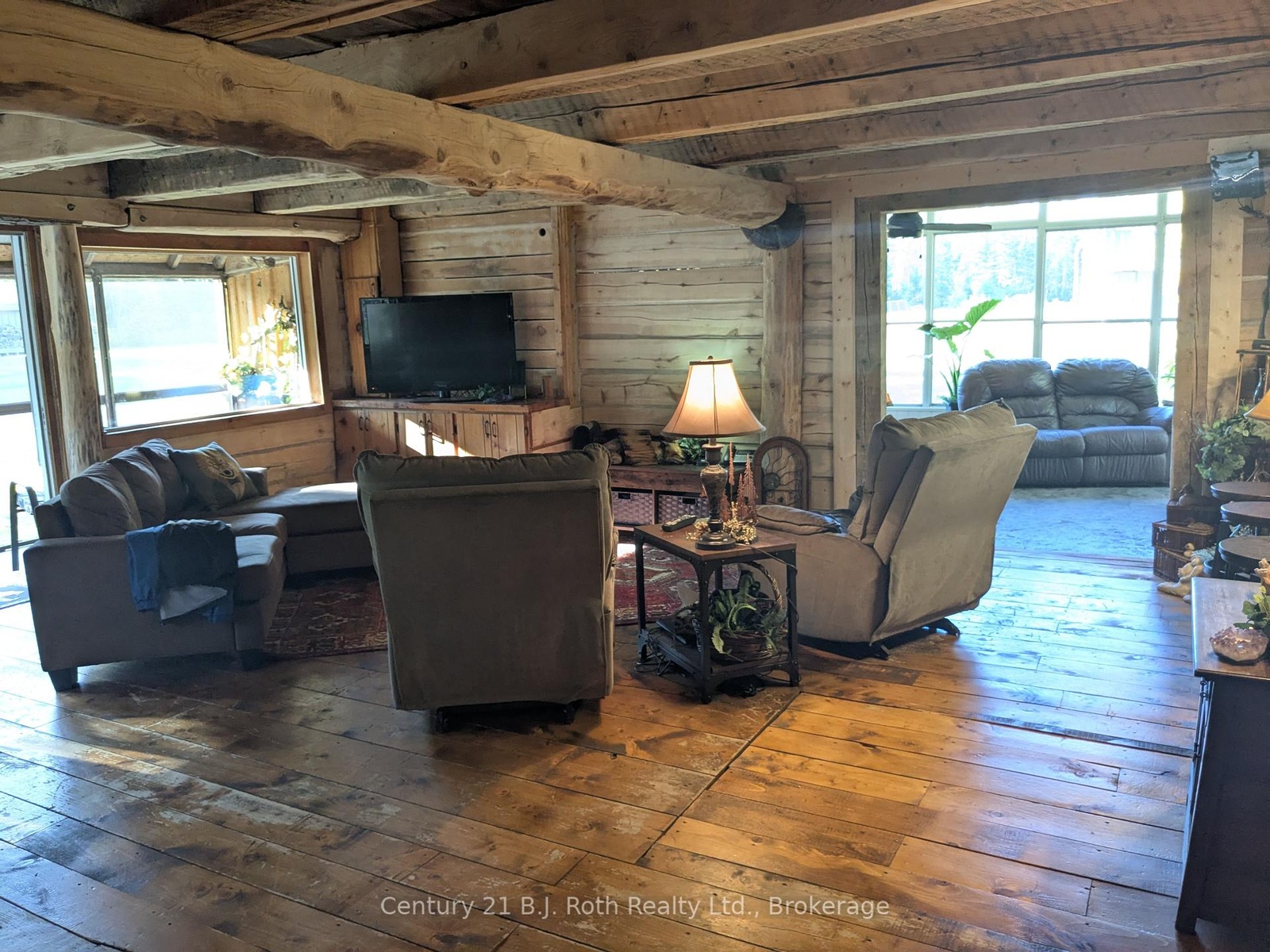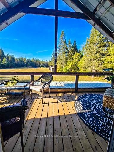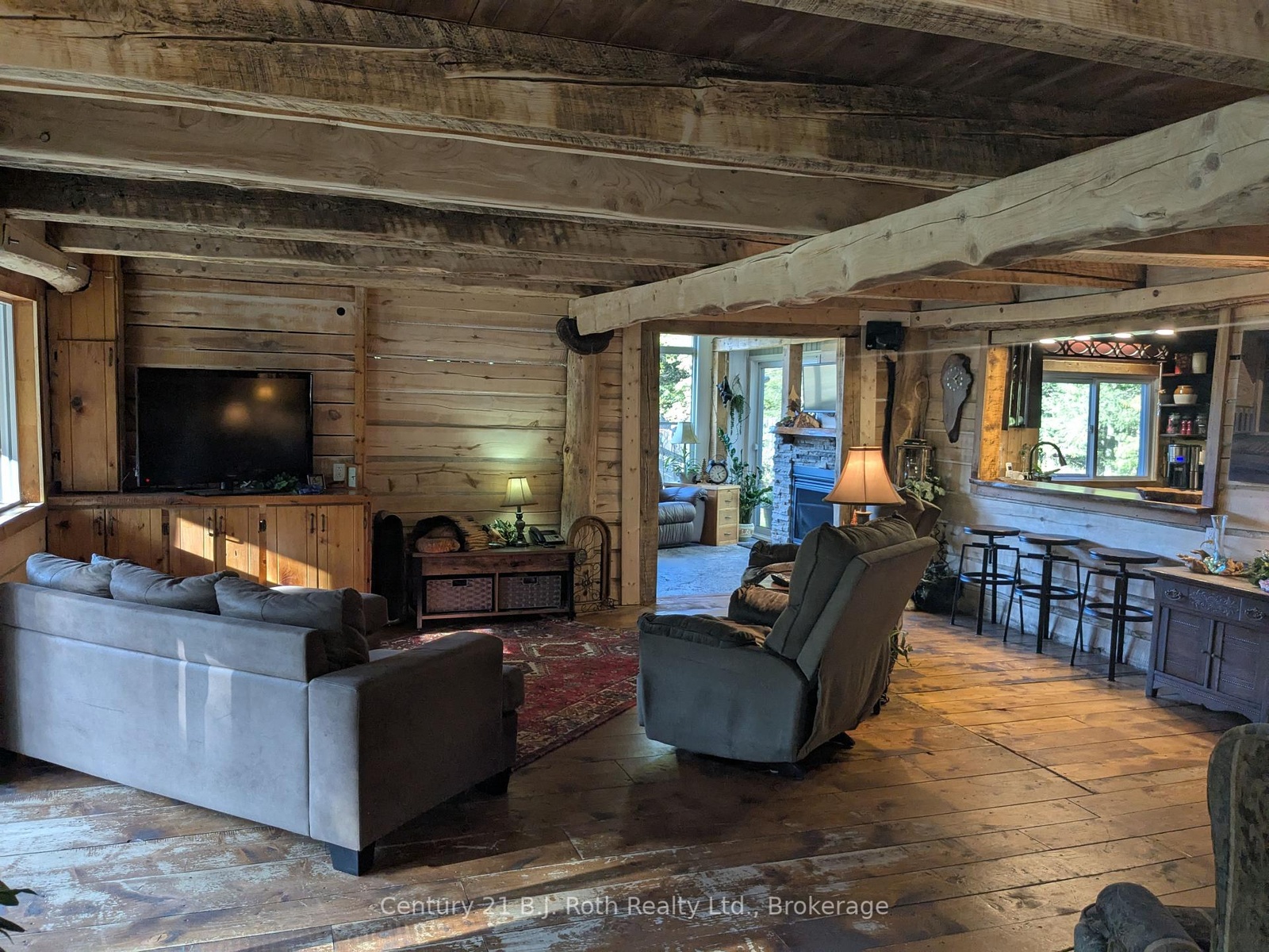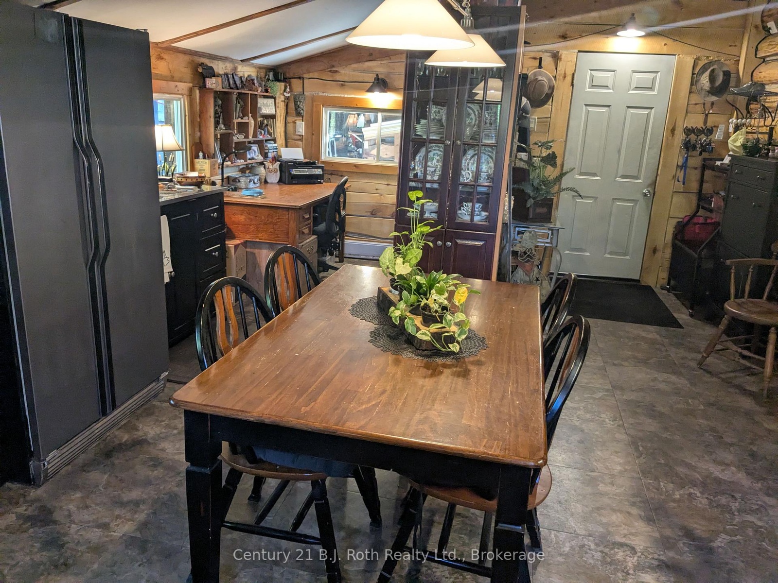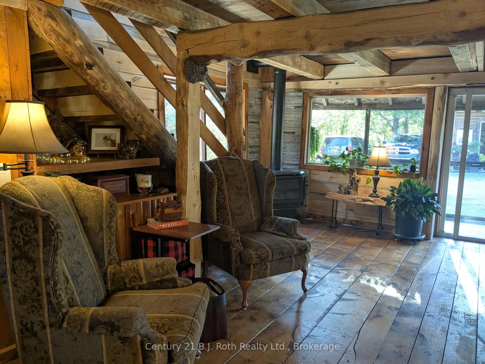 CHARMING LOG HOME PRIVATELY SITUATED ON OVER 62 ACRES WITH TRAILS TO CALL YOUR OWN! BEAUTIFUL POND WITH SAND BEACH SO YOU CAN CAMP AT YOUR OWN OASIS. ROMANTIC TREE LINED DRIVEWAY LEADS YOU TO THIS PERFECT SETTING! CUSTOM LOG HOME WITH METAL ROOF + ATTACHED COVERED PATIO + CARPORT/STORAGE + ATTACHED GARAGE/WORKSHOP! IMPRESSIVE MAIN FLOOR COUNTRY KITCHEN WITH CUSTOM CABINETRY OPEN TO INVITING LIVINGROOM WITH BRIGHT LOG AMBIANCE & ROMANTIC PROPANE FIREPLACE. MAIN FLOOR FAMILY ROOM/BEDROOM ALSO HAS BEAUTIFUL PROPANE FIREPLACE WITH 'LIVE EDGE" MANTEL FOR COZY WINTER EVENINGS. NEWER 3 PC BATH AND SEPARATE ENTRANCE COMPLETES THE MAIN FLOOR.HARDWOOD FLO0RS & STAMPED CONCRETE + SOME LAMINATE. UPSTAIRS THERE ARE 2 BEDROOMS, 4 PC BATH WITH JACUZZI TUB, FULL SIZE LAUNDRY WITH A ROMEO AND JULIETTE BALCONY OVERLOOKING YOUR VERY OWN ESTATE. WATCH THE DEER AND BULL MOOSE WANDER THROUGH TO THE POND. EXCITING WILDLIFE VIEWING PERCH! CUTE BUNKIE FOR EXTRA GUESTS + SECOND CABIN IN THE WOODS AT BACK OF PROPERTY ON THE TRAILS. 2 PROPANE FIREPLACES ARE MAIN SOURCE OF HEAT WITH ELECTRIC BASEBOARD AS BACK UP. BRIGGS AND STRATTON HARD WIRED GENERATOR. THERE IS A SEASONAL CLOSED-IN SUNROOM ON THE FRONT WITH REMOVABLE PANELS. KEARNEY HAS DOG SLED RACES IN FEB., SNOWMOBILE TRAILS THROUGHOUT, ATV TRAILS THROUGHOUT, BEACHES ALL AROUND, ALGONQUIN PARK AT YOUR DOORSTEP, IDEALLY LOCATED ON A PAVED YEAR ROUND ROAD WITH HIGH SPEED INTERNET, CROWN LAND FOR HUNTING, RESTAURANT, CONVENIENCE STORE, LCBO & BAR IN TOWN ALONG WITH A COMMUNITY CENTER. PERFECT PACKAGE FOR YOU AND YOUR FAMILY! FLEXIBLE CLOSING! COME TAKE A LOOK! FALL COLOURS HAVE STARTED. BEAUTIFUL SCENIC DRIVE TO THIS PROPERTY.