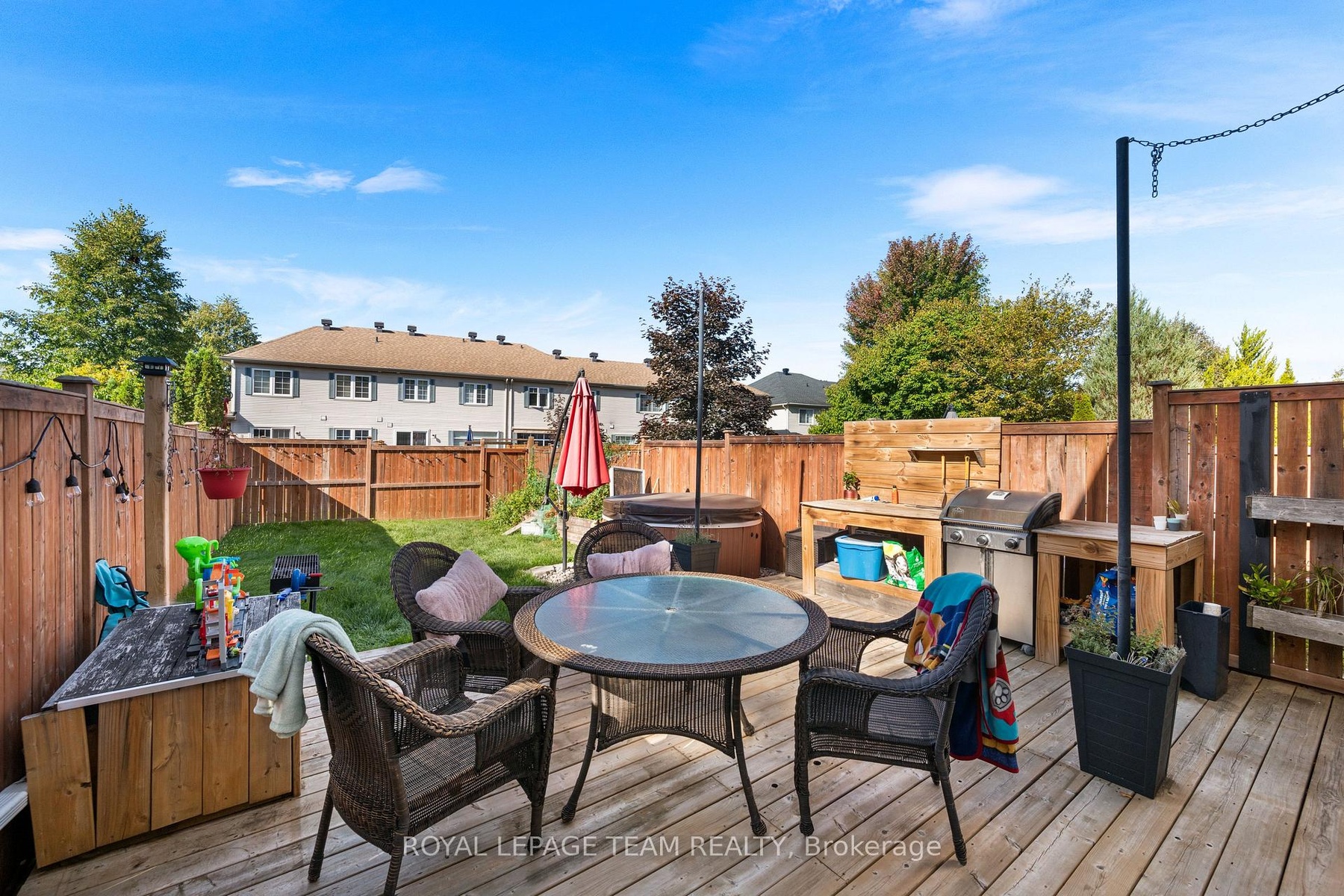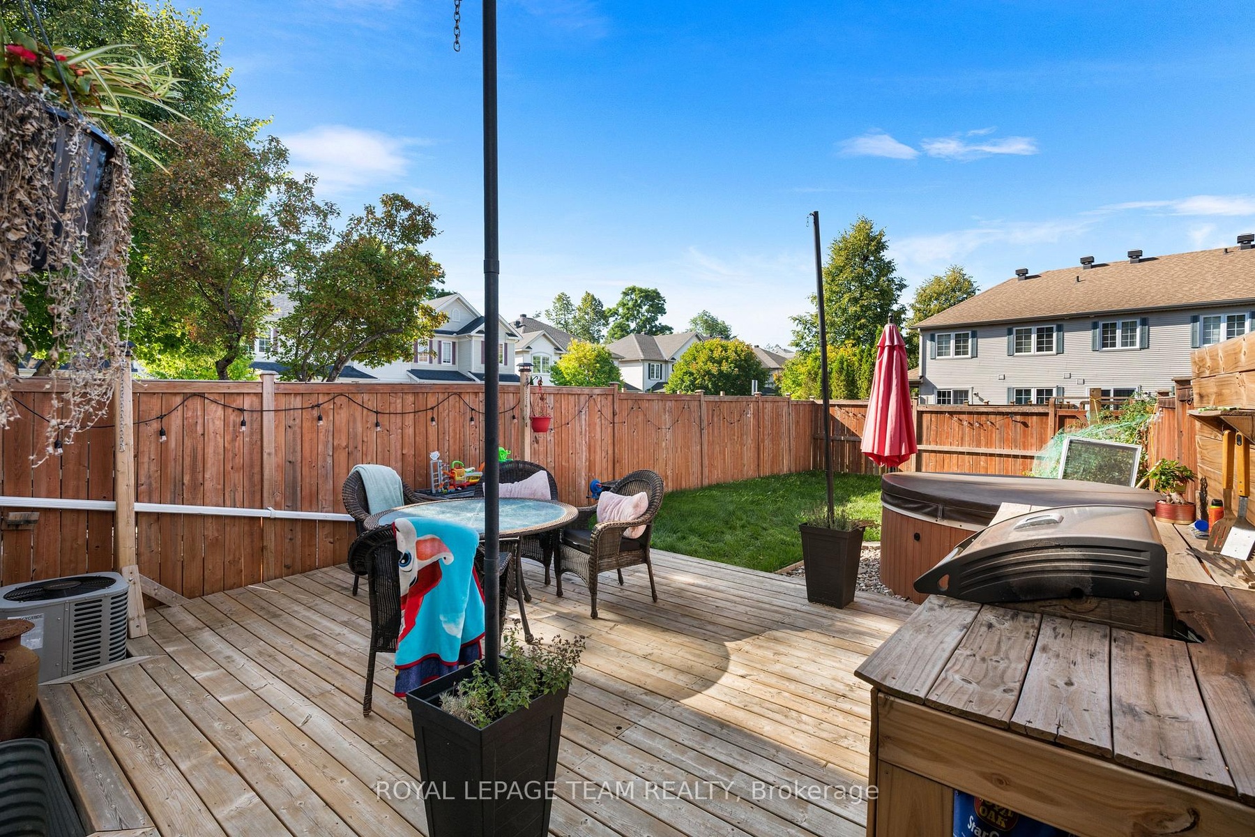 Charming Home in the Heart of Stonebridge. Nestled away on a quiet private lane in the highly sought-after community of Stonebridge, this beautifully maintained home offers the perfect blend of comfort, space, and lifestyle. Just steps from the clubhouse and golf course, and surrounded by scenic walking trails, it's an ideal setting for nature lovers and active families alike. Step inside to a spacious front foyer that opens into a bright, open-concept main floor, perfect for both everyday living and entertaining. The eat-in kitchen features a breakfast bar, ideal for casual meals, and flows seamlessly into the formal dining area for hosting guests. Enjoy cozy evenings by the gas fireplace in the family room or step outside to your large exterior deck overlooking a deep, fully fenced yard (128 ft lot), with hot tub, perfect for summer barbecues and family fun. Upstairs, the large primary bedroom is a private retreat, complete with a walk-in closet and 4-piece ensuite. Two additional well-sized bedrooms offer flexibility for family, guests, or a home office. The finished lower level includes a spacious recreation room, great for movie nights, games, or a kids' play area. Key features include: 3 bedrooms, 3 bathrooms, including a renovated powder room (2023), hardwood flooring, sanded & refinished in 2025, freshly painted throughout (2025), roof shingles replaced in 2024, deep fenced yard on a 128 ft lot, attached garage with inside entry and EV Charger. . Just moments from parks, schools, shopping, and of course golf!