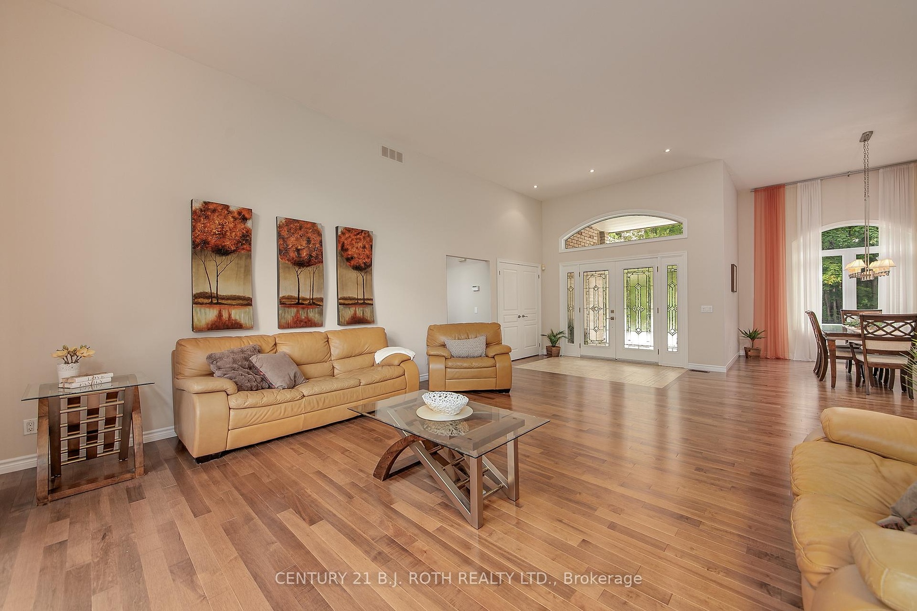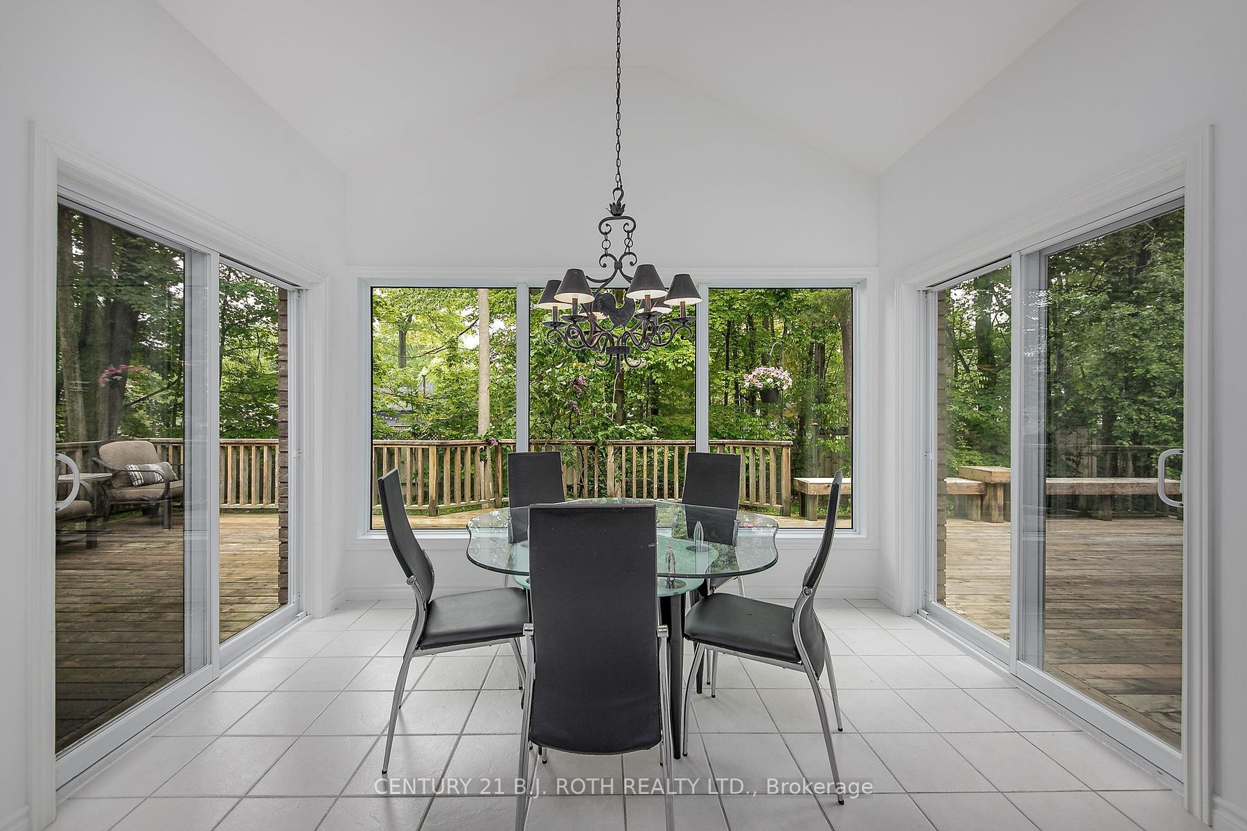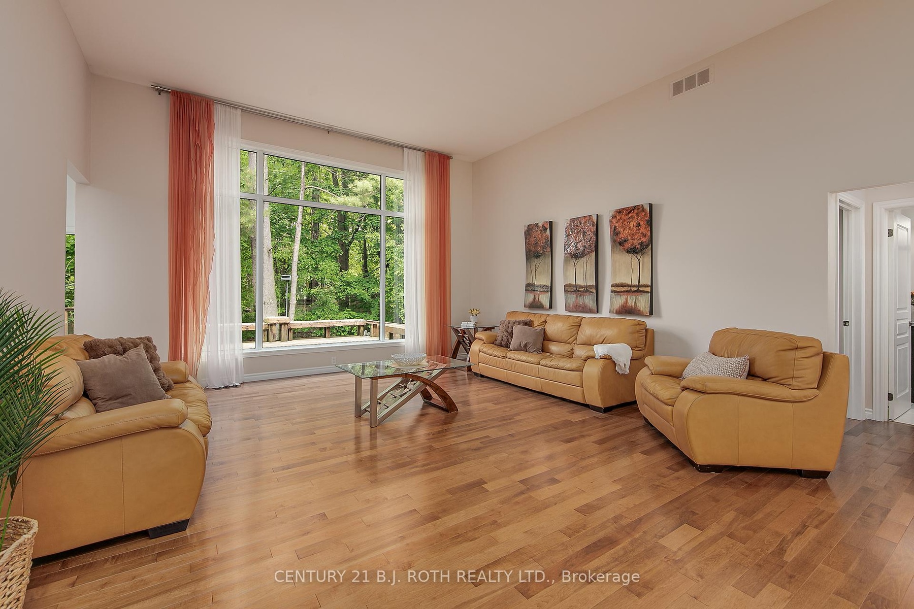 Secluded location, but close to Friday Harbour and the beach! This Beautiful brick Bungalow sits on an Oversized Lot in the Prestigious Big Bay Point! Over 2500 sq ft. of main floor with three bedrooms and three bathrooms. Wheelchair accessible! Nestled at the quiet dead end of a quaint street, this exceptional property sits on a sprawling, tree-lined lot just minutes from Friday Harbour and two popular golf courses. Surrounded by nature, the mature trees and landscaped yard provide privacy and serenity, while exterior lighting adds an evening touch of elegance. Ideal for luxury buyers, builders, or multi-generational families, this home combines accessibility with opportunity. There's potential to sever a 100-foot-wide lot, making this a rare and valuable find for future development or investment. Inside, enjoy barrier-free, one-level living, complete with a garage stair lift, rear ramp to an expansive deck, and a roll-in shower perfect for families with an elderly parent or anyone needing mobility-friendly features. The main floor features 14-foot ceilings, large windows overlooking the trees, and a formal dining area. Modern white kitchen with a gas stove, updated white appliances, and a peninsula that extends to a walk-out breakfast area. A partially finished basement offers added living space, featuring a large rec room, den, cantina, and utility room, ideal for guests, hobbies, or future customization. The interlock driveway accommodates multiple vehicles, including RVs and boats. The massive two-car garage has extra space and an inside entry to the home. This turnkey retreat is the ultimate blend of comfort, location, and potential, just moments from Lake Simcoe, a government dock, trails, and top-tier golf. Whether you're downsizing in style, building your dream, or investing in a coveted neighbourhood, this one has it all.