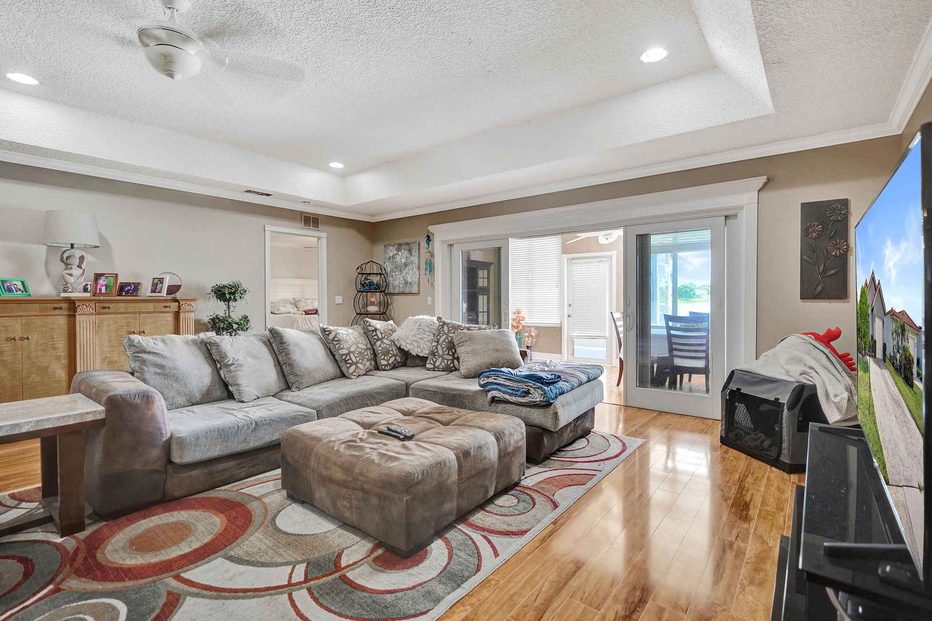 DescriptionLove to fish, kayak, canoe, or simply enjoy the water right in your own backyard?Then you won't want to miss this fabulous lakefront home with its very own private dock!This 3BR, 2BA home is perfectly situated in the gated enclave of Bonita Isle in Lakes of Sherbrooke. Step inside and you'll be delighted by the thoughtful details--an inviting great room accented with crown molding, 5'' baseboards, and no popcorn ceilings!The kitchen features crisp white cabinetry, granite countertops, and a charming built-in bench nook. A convenient pass-through connects it to the great room, offering versatility to suit your personal design and lifestyle.