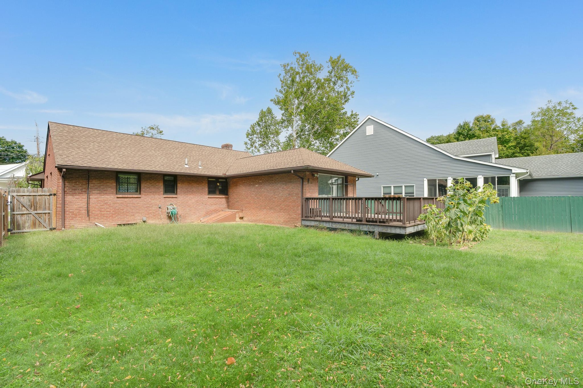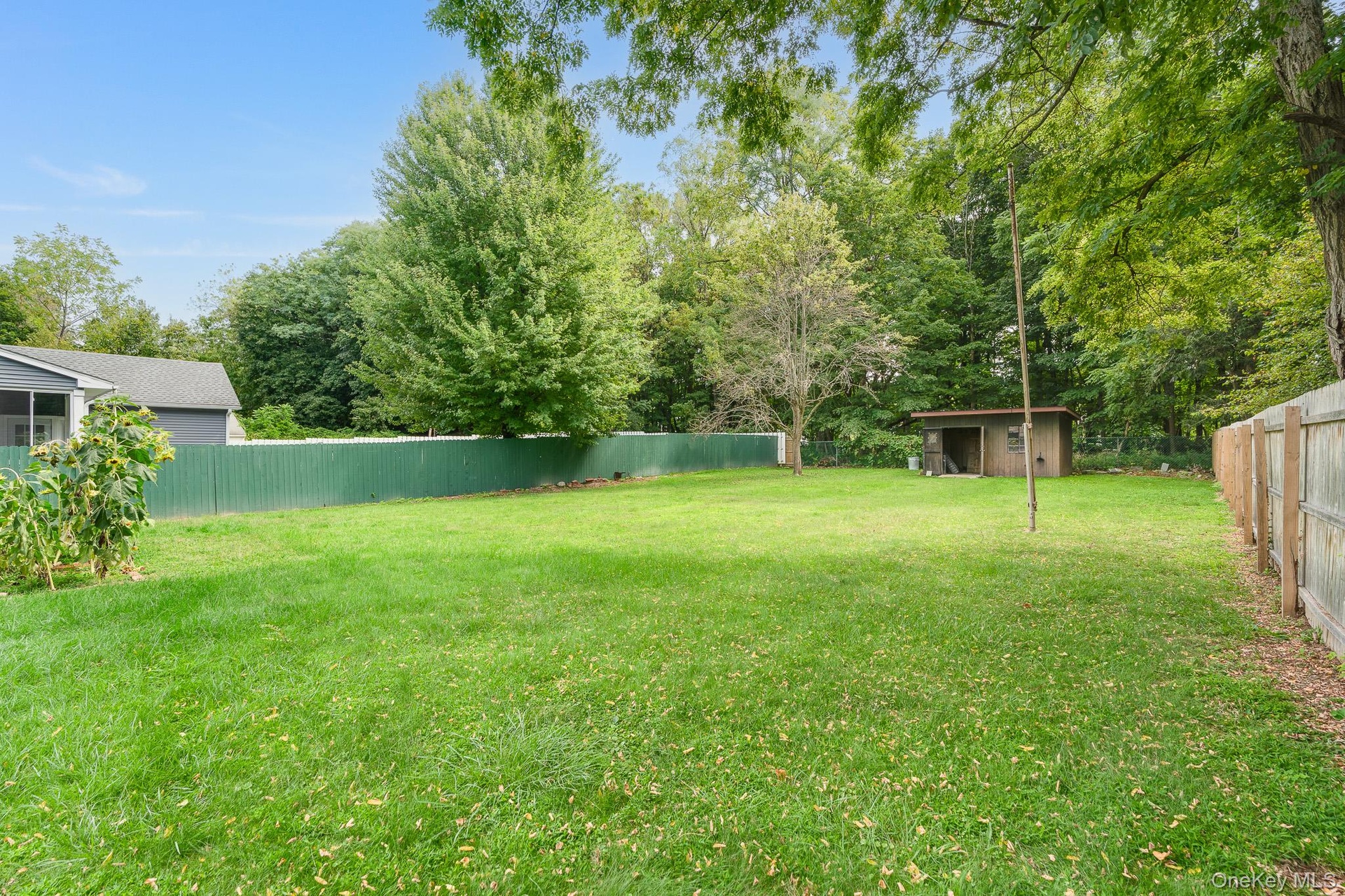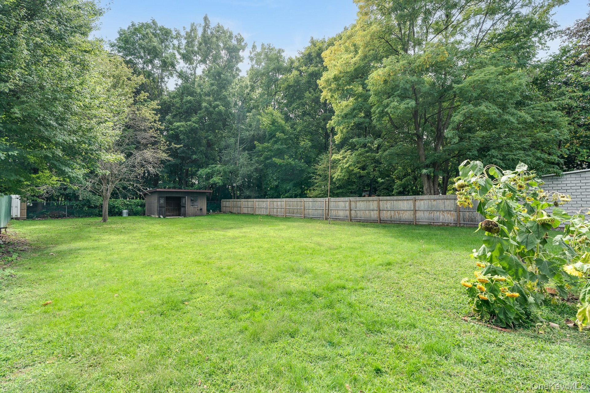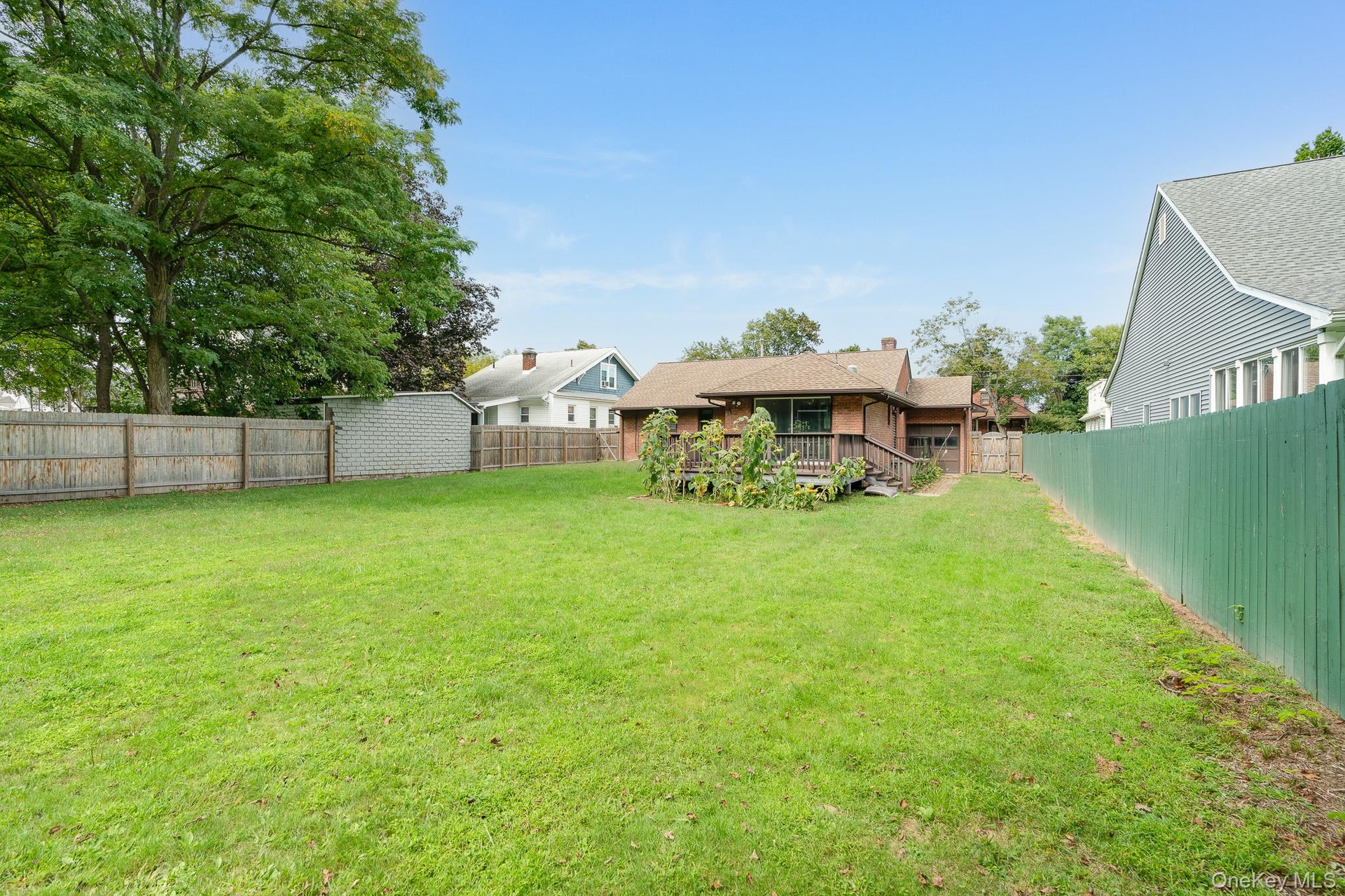 This beautifully maintained 3-bedroom, 2-bath Brick Ranch offers easy one-level living in the heart of Poughkeepsie. The home features oak floors throughout, a spacious living room welcomes you with a wood-burning fireplace and plenty of natural light, while the eat-in kitchen provides ample space for cooking and gathering. Just off the kitchen, the family room opens through sliding doors to a level, fully fenced backyard and mature landscaping—perfect for relaxing, entertaining, or BBQs. Three well-sized bedrooms, 2 tastefully updated full baths, one with a soaking tub and one with a tile surround shower and stackable washer/dryer. Additional highlights include central air, a System 2000 boiler for efficient heating, and an attached 1-car garage. Municipal water, sewer and natural gas available! Situated on a  Ideally located just minutes from Route 9, the Culinary Institute of America, MidHudson Regional Hospital, shopping, restaurants, and more, this home combines comfort, convenience, and charm—all in one level!