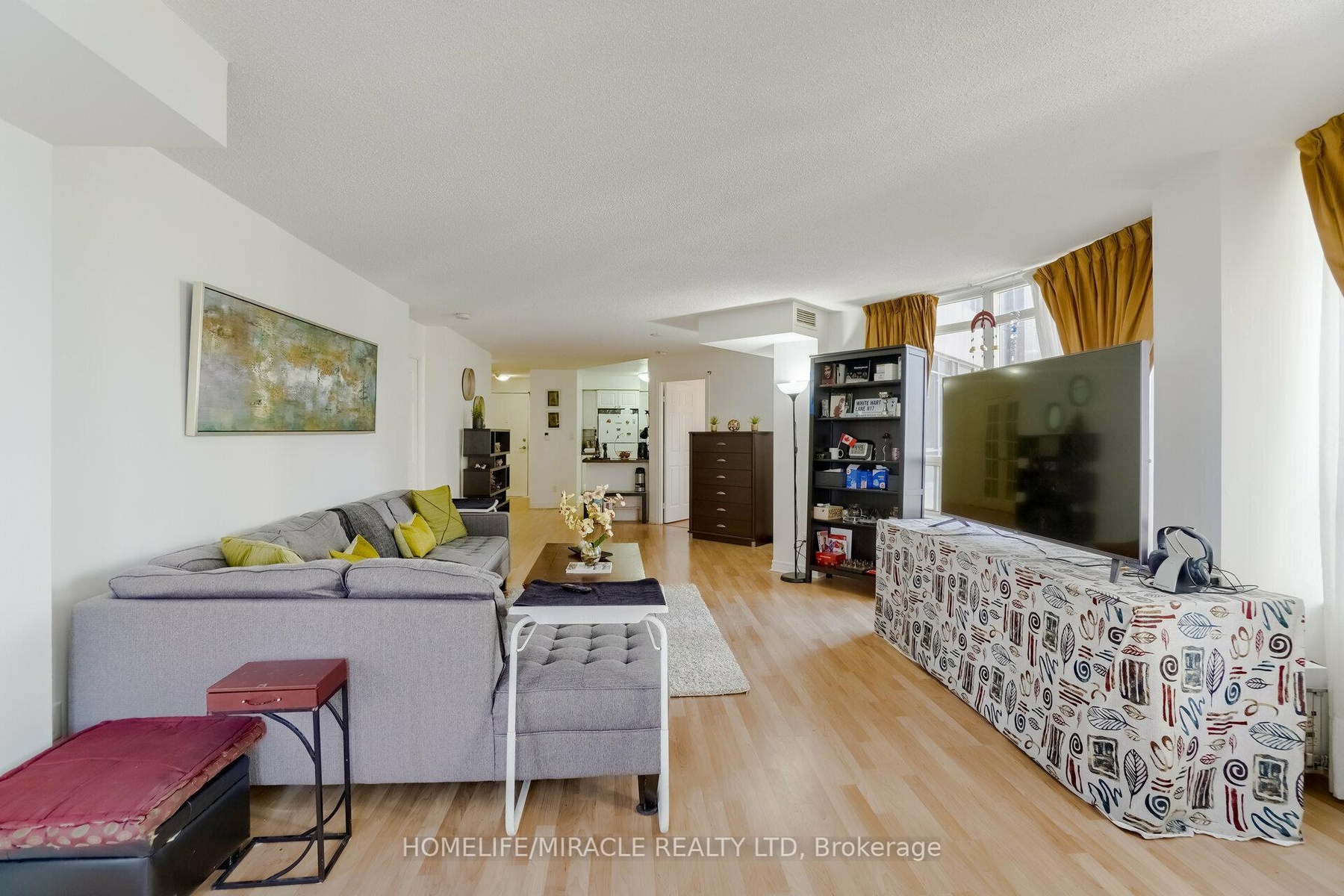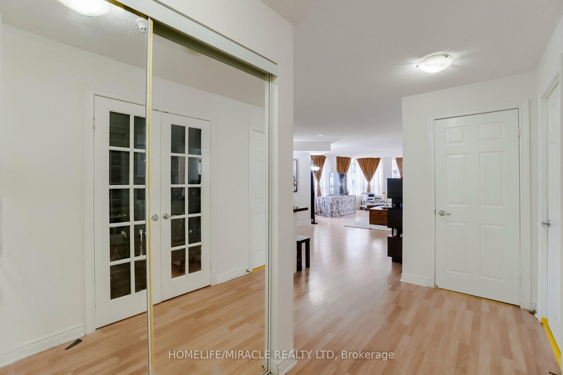 Experience luxurious five-star, resort-style living year-round in this rare and beautifully upgraded 3-bedroom, 2-bathroom corner unit in the Tridel-built Ovation condo, ideally situated in the heart of Mississauga City Centre. This bright and spacious unit features a modern open-concept layout with upgraded laminate flooring throughout (no carpet), a stylish kitchen with custom cabinetry, premium granite countertops, sleek backsplash, stainless steel appliances, and a functional breakfast bar. The large primary bedroom offers a walk-in closet and a private ensuite, while the enclosed den with elegant French doors serves perfectly as a third bedroom, nursery, or home office. Enjoy unobstructed lake and city skyline views from the private balcony and large south windows. This rare offering includes two parking spaces and a locker, with all utilities-heat, hydro, and water conveniently included in the maintenance fees. Residents enjoy access to world-class amenities including 24-hour concierge and security, an indoor pool, hot tub, sauna, fully equipped gym, bowling alley, virtual golf, theatre, games and media rooms, billiards, party rooms, BBQ terrace, guest suites, and beautifully landscaped grounds with a children's play area. Located just steps from Square One, Celebration Square, Sheridan College, YMCA, restaurants, Cineplex, the Civic Centre, and GO & Miway transit, with the upcoming LRT only 500m away. The building is family-friendly and home to many large Middle Eastern and South Asian families who appreciate the spacious interiors significantly larger than those found in newer constructions. Top-rated schools and a school bus stop right outside add to the convenience, while quick access to Highways 403, 401, 407, and QEW makes commuting a breeze. Previously priced at $700/sq ft in 2022, this unit now offers excellent value with a much lower price per sq ft and a rare opportunity to own a spacious, well-maintained home in one of Mississauga's most desirable c