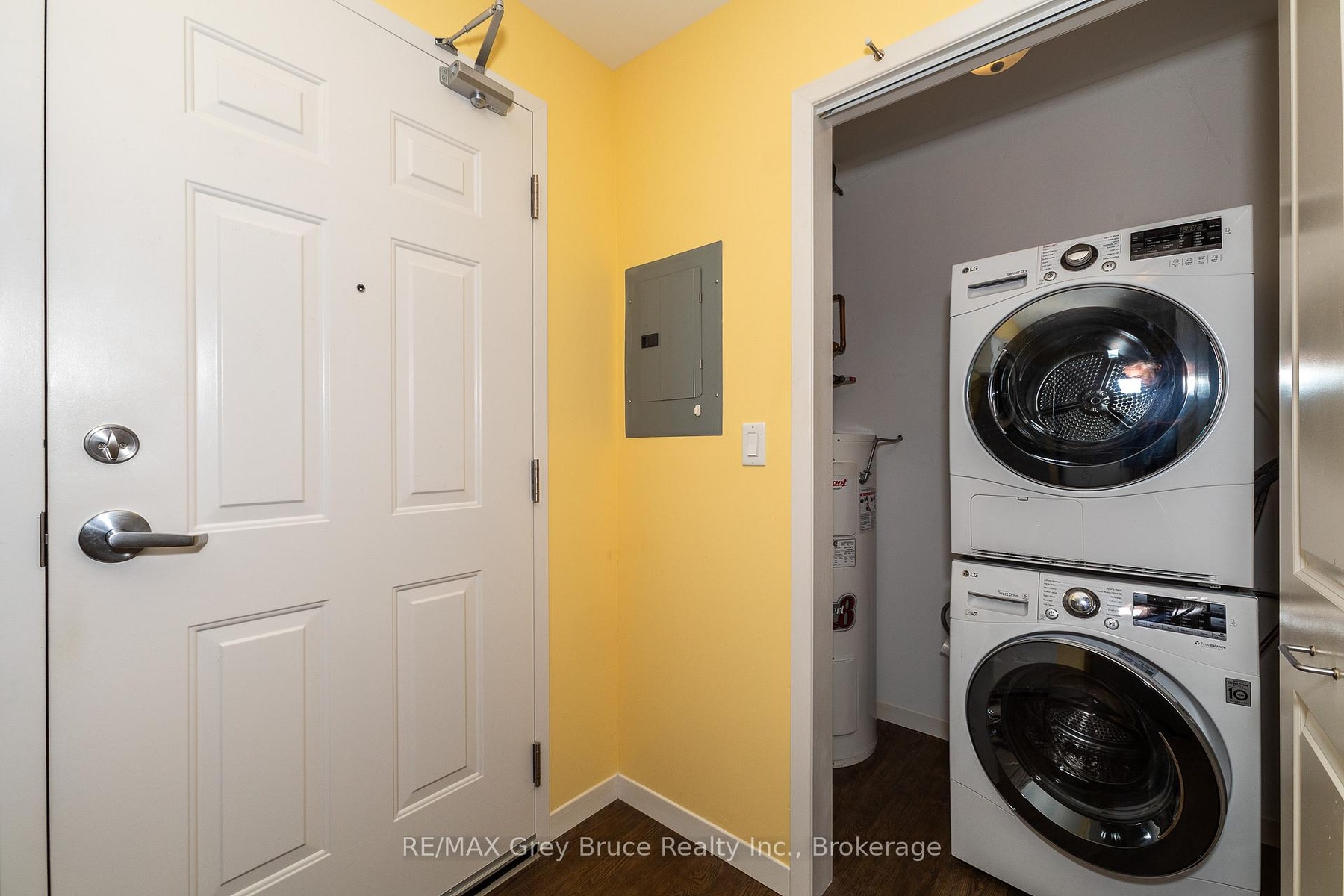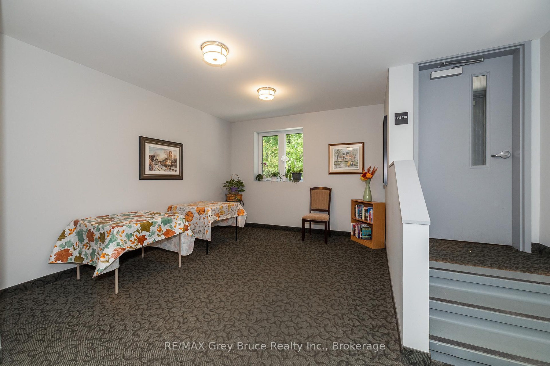 Pottawatomi Gardens is an exclusive 55+ Market Value Life Lease community on the west side of Owen Sound, tucked into a quiet neighbourhood yet just minutes from local amenities. Set on 4 acres of beautifully landscaped, park-like grounds, residents enjoy lush gardens, raised vegetable garden beds, a common BBQ area, a workshop, and an inviting indoor common room. Fully wheelchair accessible with an elevator. Unit 105 is a bright and spacious 1-bedroom suite on the main floor, featuring in-suite laundry, generous storage, and covered parking. Large windows invite in the morning sun, while the thoughtful, fully wheelchair-accessible design adapts easily to changing mobility needs. Monthly common fees of $645 cover exterior and interior building maintenance, utilities for shared spaces, landscaping, snow and garbage removal, water and sewer, property management, administration, a reserve fund, and building insurance. A local property manager is also available to assist residents with any issues that may arise. Designed to provide a worry-free retirement lifestyle with modern comforts and amenities. Professionally managed by Sound Lifestyles. Safe, quiet area, secure entrance & security cameras on the property.