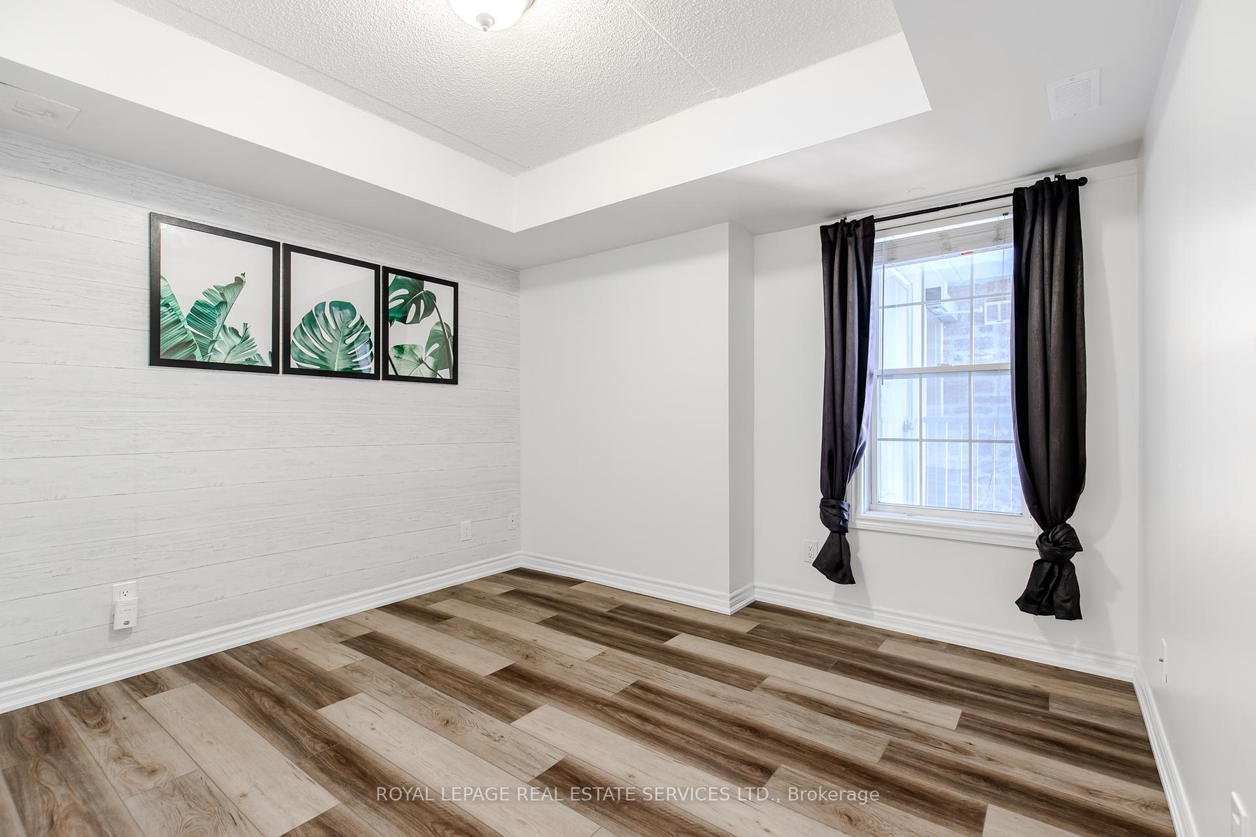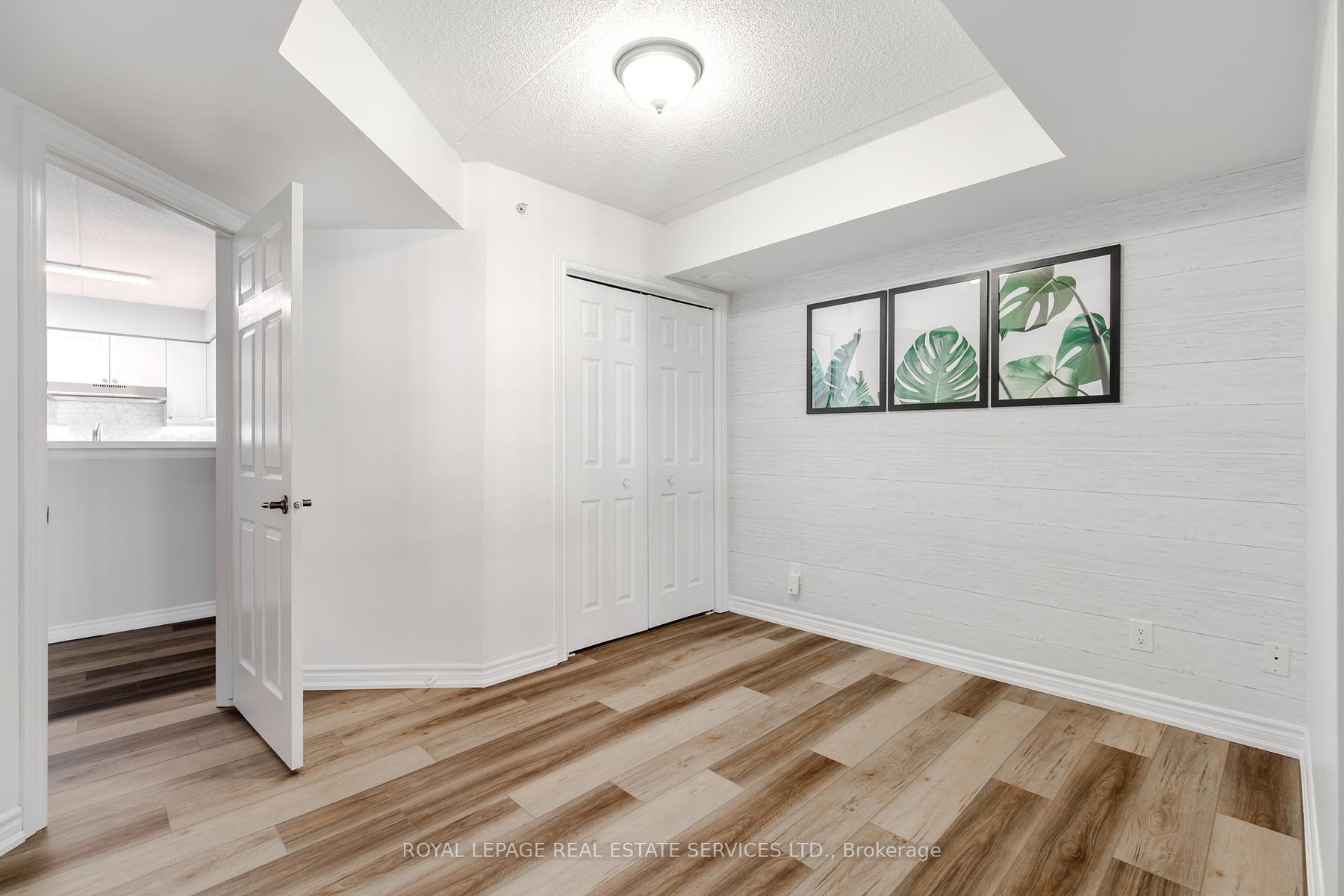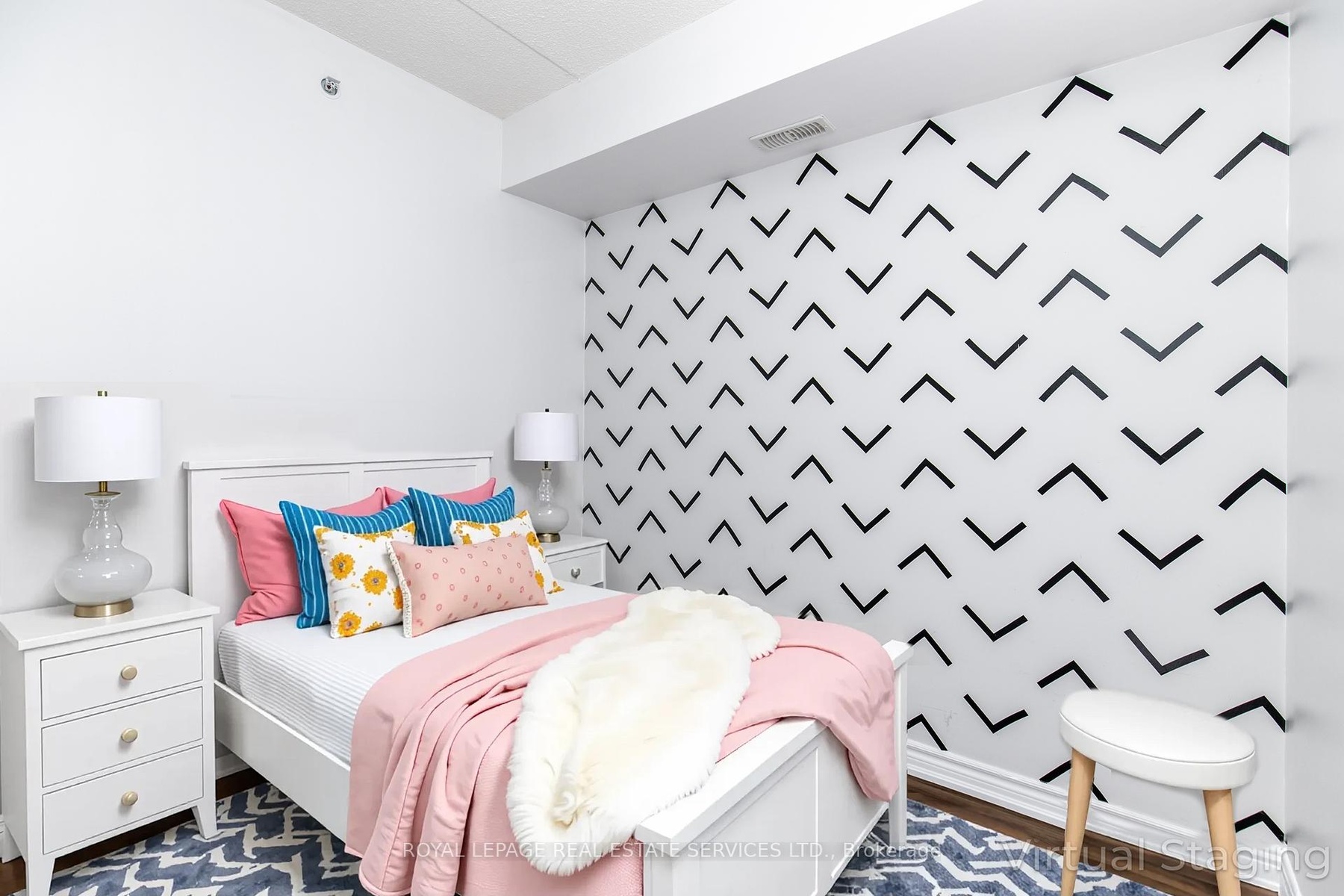 Located in Oakvilles prestigious Glen Abbey neighbourhood, this beautifully updated 1 Bedroom + Den, 1 Bathroom condo offers an open-concept layout with new flooring (2025) and a living/dining area with walk-out to balcony. The kitchen features stainless steel appliances, as well as updated: countertops, backsplash, new lighting including under-mount, sink, faucet and dishwasher (2025). The 4-piece Bathroom offers updated vanity and lighting. The Bedroom includes built-in closet organizers and the versatile Den is perfect for home office or second bedroom. Additional features include convenient in-suite laundry, linen closet and private locker storage accessible from the balcony. Amenities include: fitness centre, party room and visitor parking. Close to parks, shopping, top schools, Oakville Hospital, highways and GO, this condo is a perfect choice for first-time buyers, down-sizers, or investors seeking a stylish, low-maintenance home in one of Oakvilles most desirable communities.