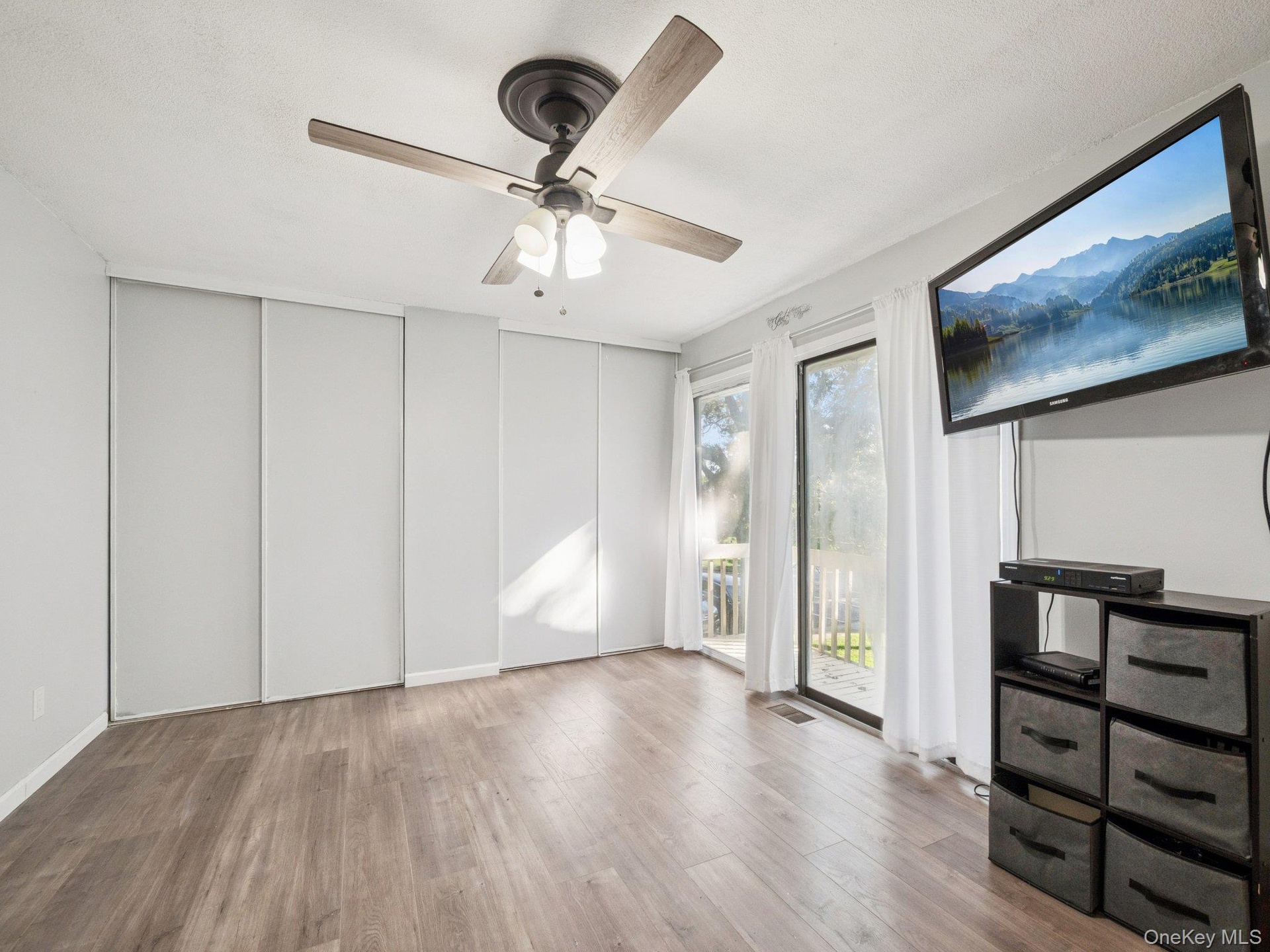 - Upper level bedroom featuring new LVP flooring and ceiling fan for extra comfort.