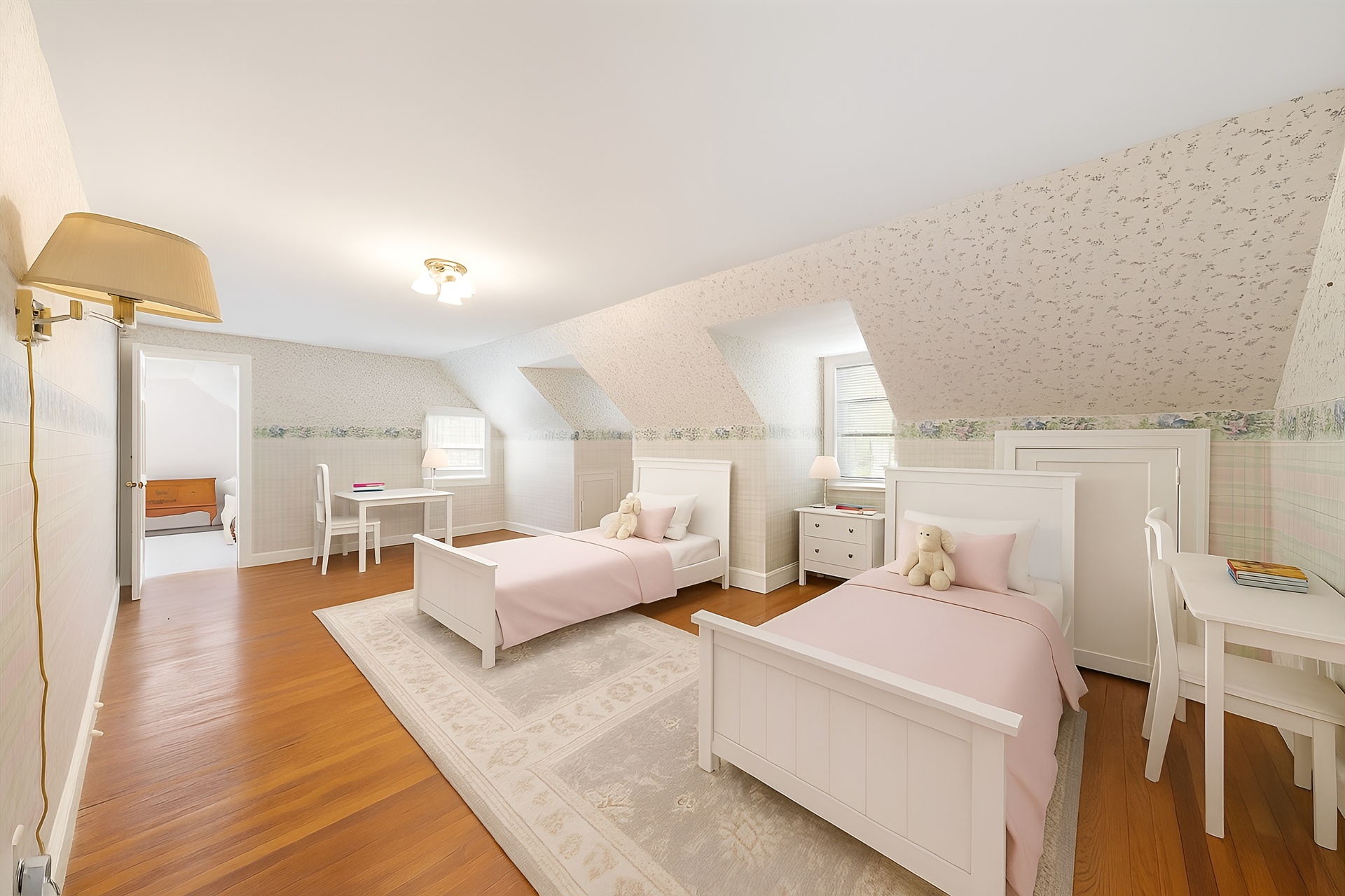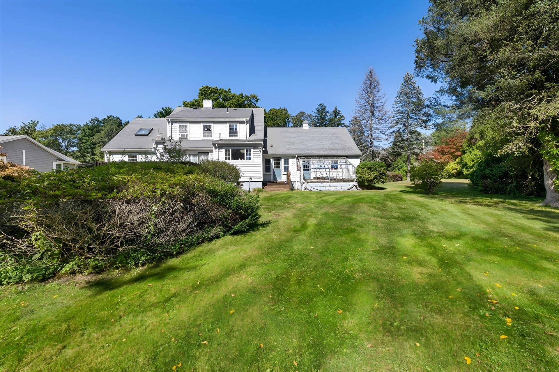 Charming Cape built in 1954 with 2,311 sq. ft. of living space plus 420 sq. ft. finished basement on a 24,707 sq. ft. lot. Features 3 bedrooms including a second-floor bedroom with bonus nanny’s room, 2 full and 1 half baths, living room with fireplace, dining room, and first-floor office/study. Hardwood floors throughout. Updated heating system (forced hot water by oil) and updated water heater. Lower-level finished room with second fireplace offers great flex space. Two-car garage plus driveway for 4–5 cars. Large open backyard abuts Mary Lane playground. Excellent location just 1⁄4 mile from Milton Academy.