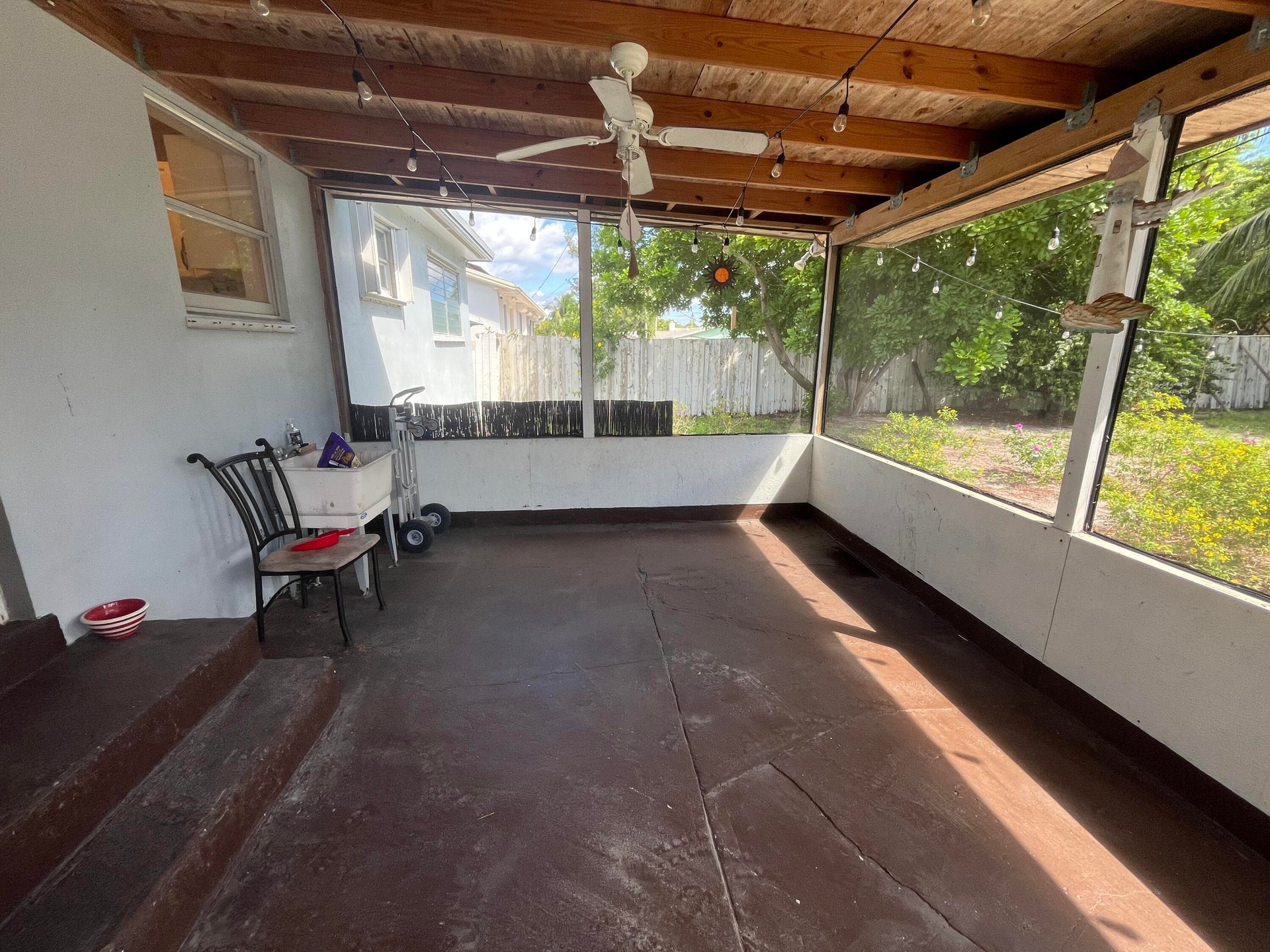 Welcome to this charming coastal home in the heart of Lantana, just minutes from the beach. Featuring 2 spacious bedrooms plus a versatile studio apartment in the garage complete with its own full bath and sink, this property offers comfort and flexibility for guests, extended family, or rental income. The home boasts beautiful wood floors throughout, a newer roof for peace of mind, and a bright, inviting layout. Step outside to enjoy a private yard with both front and back patios--perfect for relaxing in the sea breeze or entertaining outdoors. Nestled in a desirable neighborhood, this home combines coastal charm with modern convenience.