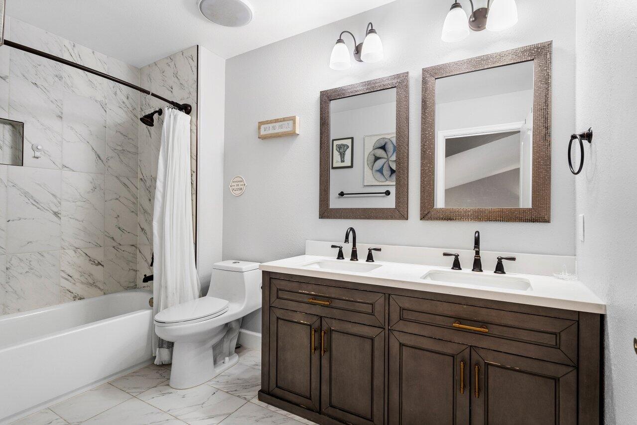 Available November 1, 2025 - Located in a secure, guard-gated, this fully furnished 4BR/3BA home in Monterey Pointe at PGA National (no membership required) offers resort-style living at its finest. Overlooking the 3rd and 17th holes, the bright and open residence features soaring ceilings, a gourmet kitchen with gas stove, and a main-level primary suite with luxe marble bath and custom closet. Upstairs includes two bedrooms, a loft, and a renovated bath. Step outside to your private screened-in pool with sweeping golf course views. All just minutes from PGA Blvd dining, shopping, I-95, the Turnpike, and 20 minutes to PBI.