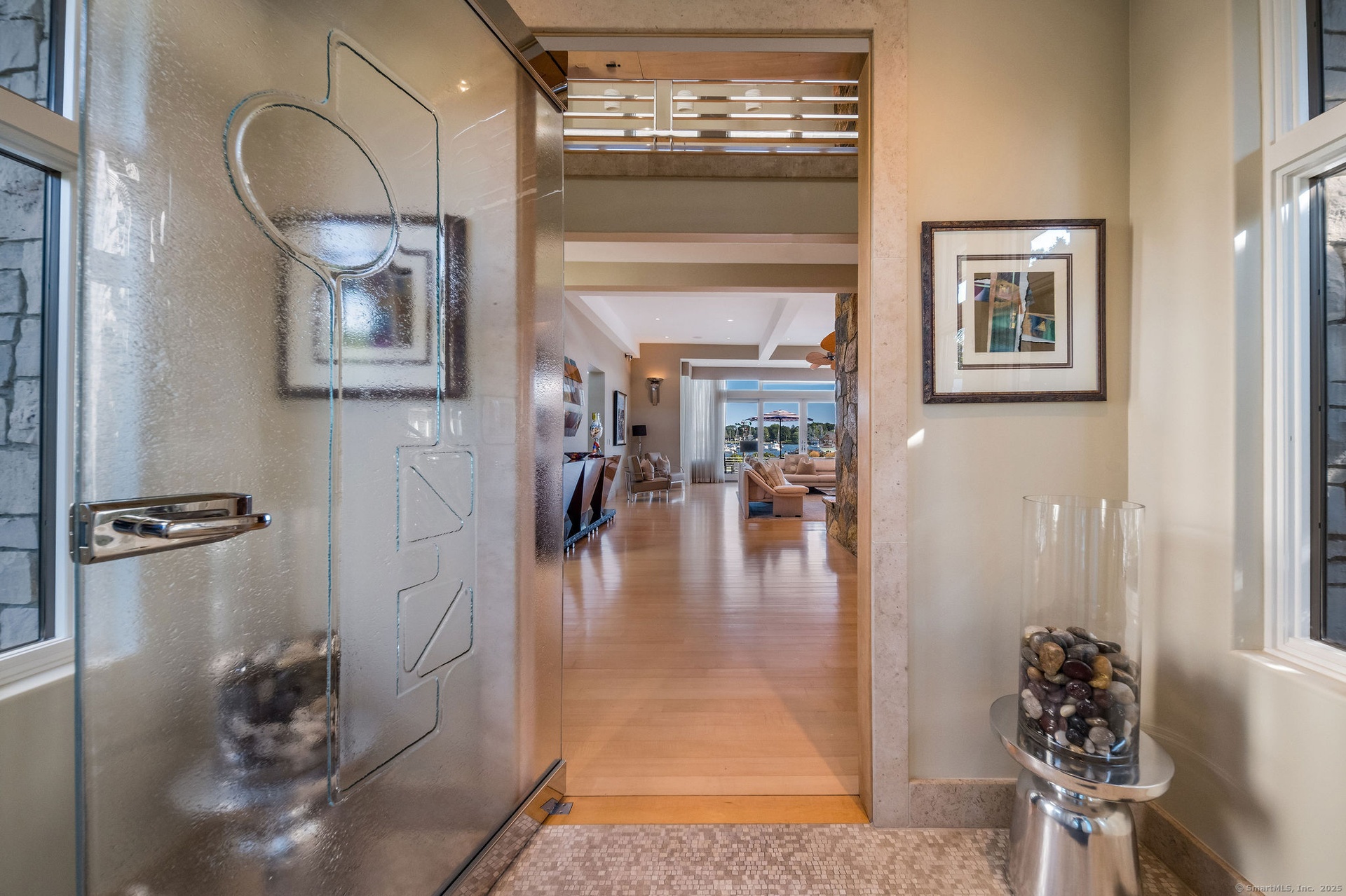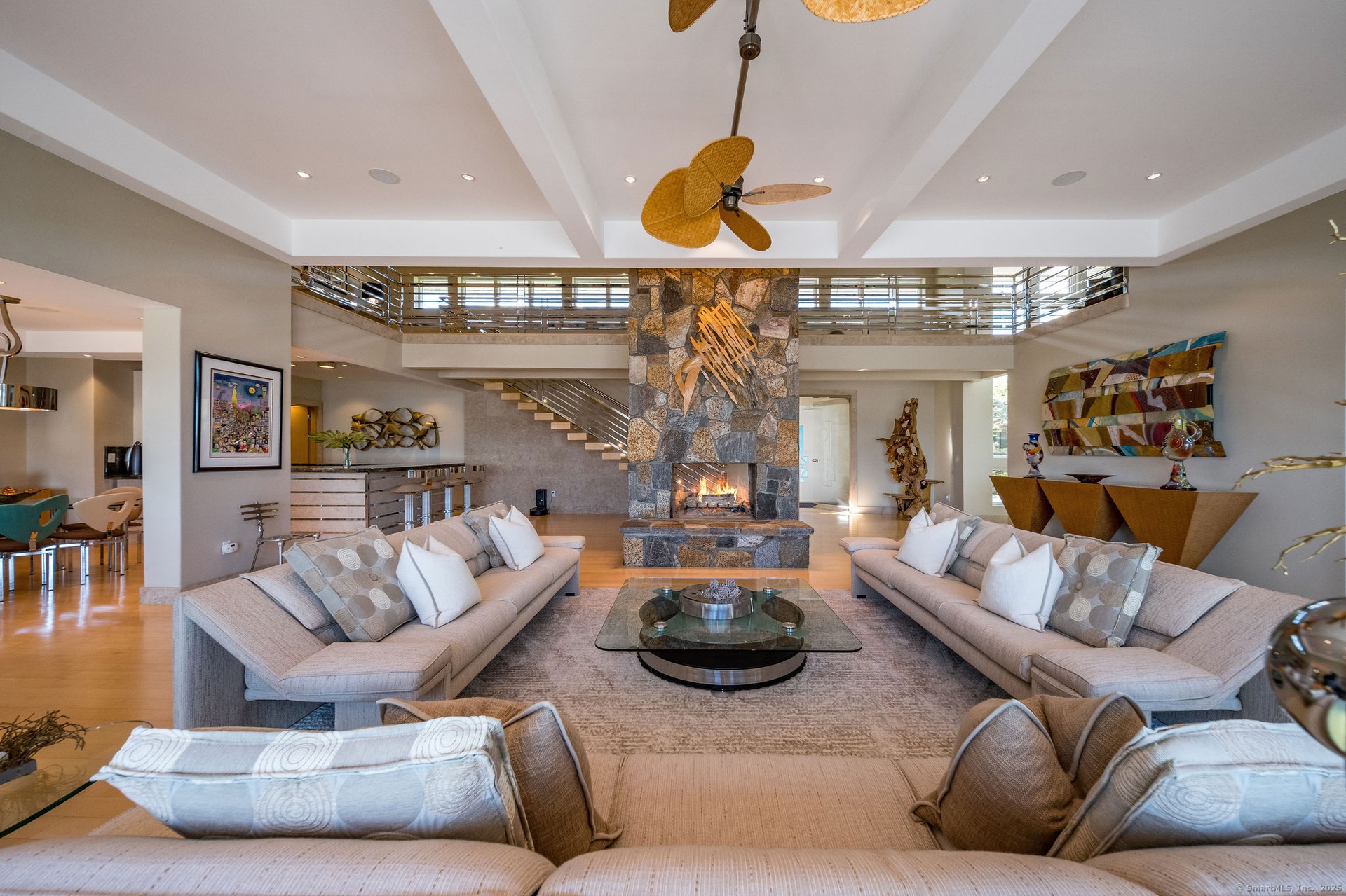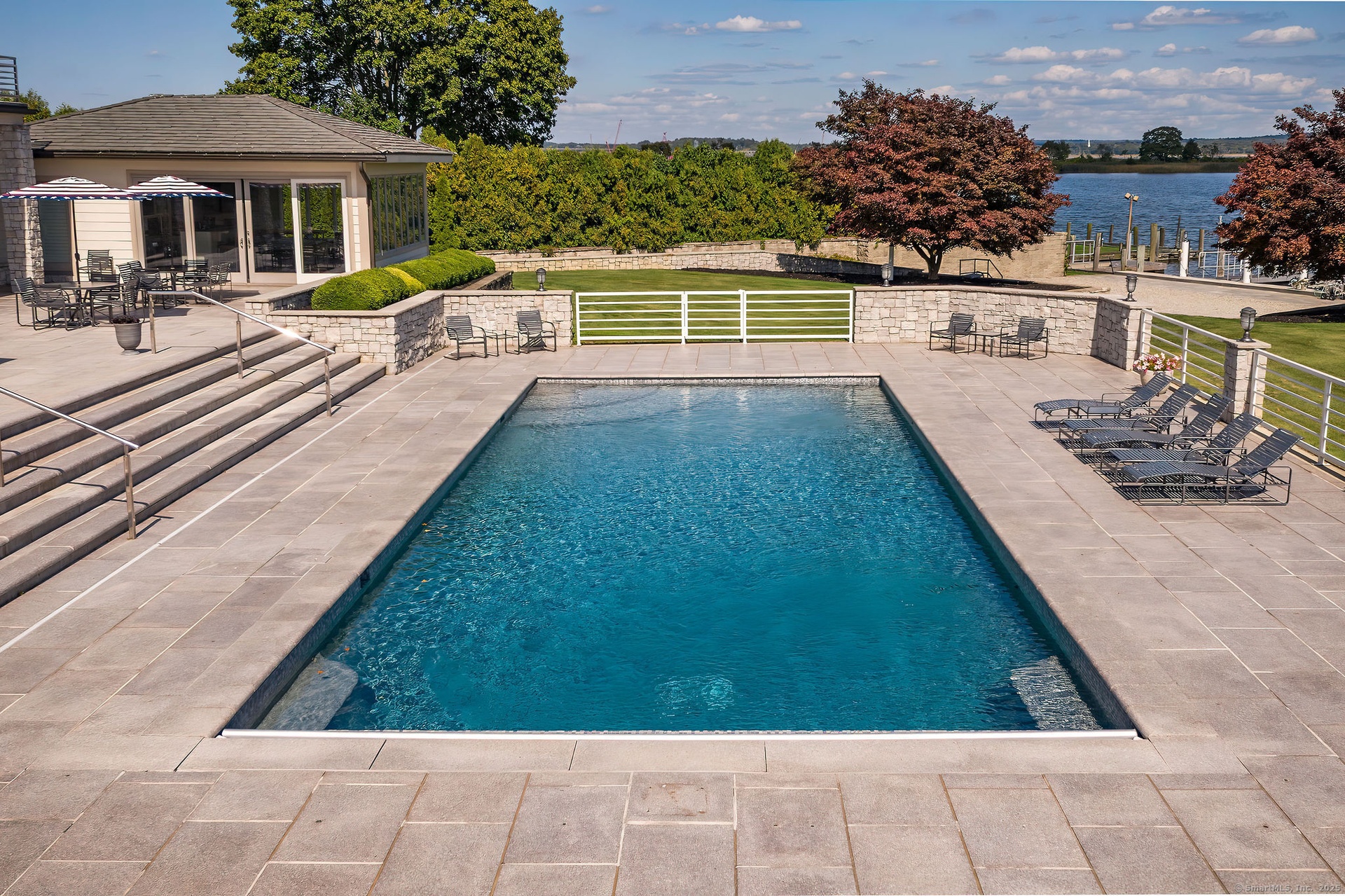 DescriptionAn EXTRAORDINARY MODERN MASTERPIECE: Inspired by renowned architect Frank Lloyd Wright, sited to take full advantage of an exceptional, private 1.6 acre waterfront location overlooking North Cove and the CT River, and constructed with meticulous care and the best of the best curated materials, 20 Saltus Drive offers a luxurious, comfortable lifestyle with panoramic water views from almost every room. Perfect for entertaining, the great room (30' x 40') has soaring ceilings, a remarkable, double sided stone FP and a window wall creating a continuous expanse of glass facing picture perfect water views. Glass pocket doors open to the DR which flows into the impressive kitchen with table & counter seating & equipped to please the most discriminating chef. Additional notable spaces on this level are a home theater with an 8'+ screen and two bedroom suites (all 5 bedrooms have en suite baths; 4 also enjoy separate sitting rooms). Access the 2nd level either by elevator or a striking marine stainless steel, floating staircase. To the left are 2 additional BR suites while to the right is the palatial primary suite which includes a BR with FP, a large bathroom with a shower and tub, walk-in closets, a laundry, an office and a sitting room. These three suites also have water view decks. Step outside to enjoy the expansive 3500 s.f. red granite terrace, a heated, saltwater swimming pool, a deepwater dock & glorious pool house equipped with a full kitchen, bath & seating for 10.Amenities- Audio System