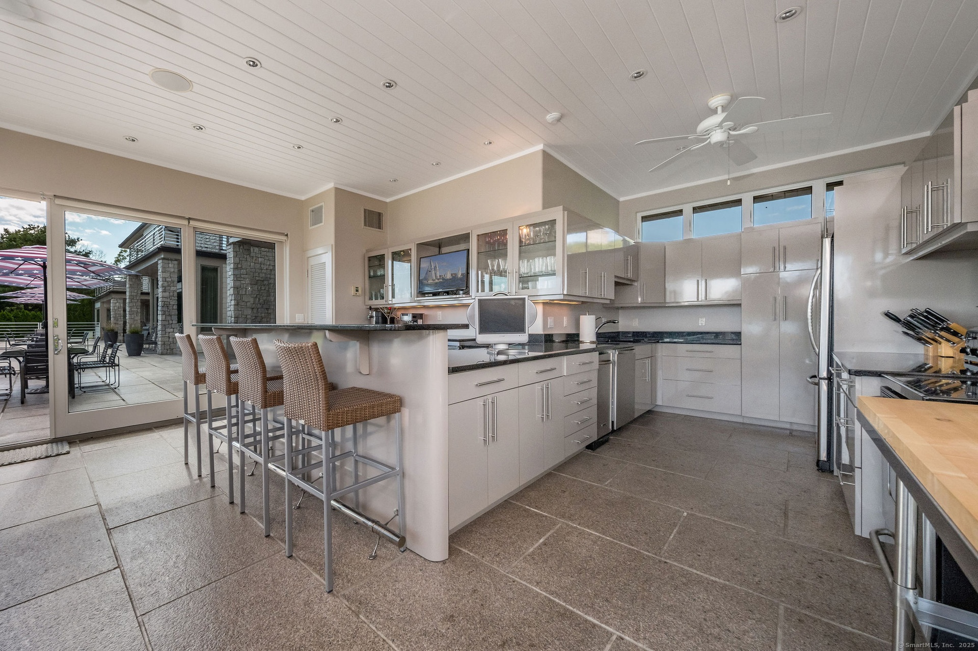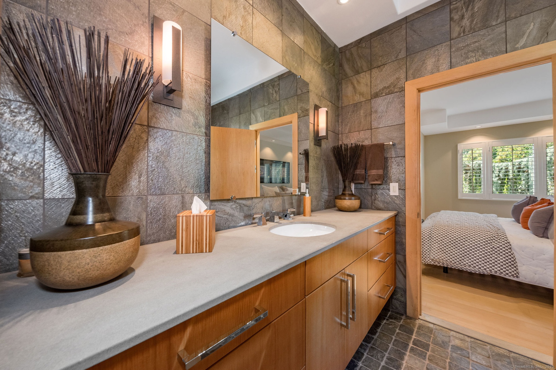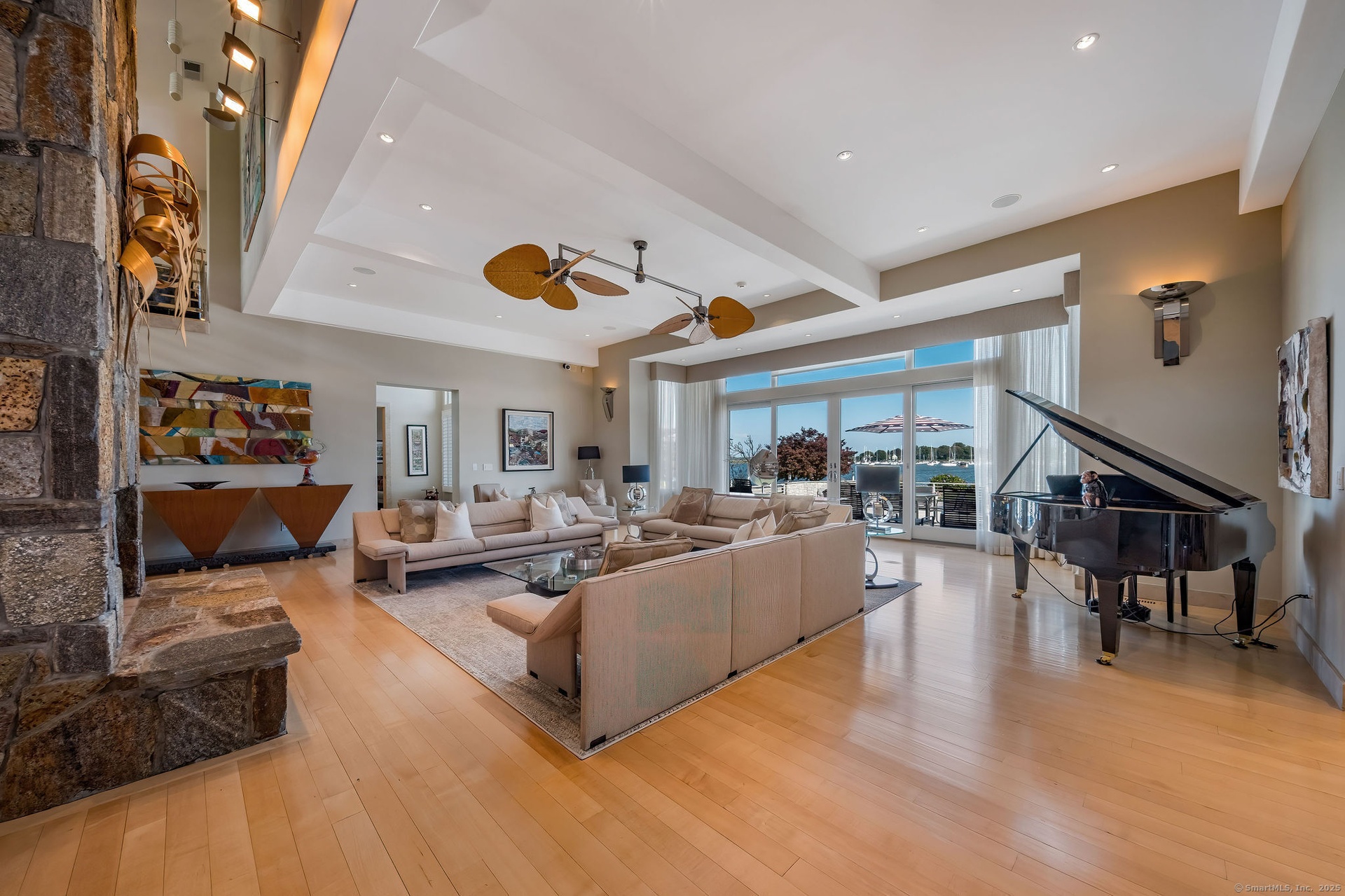 DescriptionAn EXTRAORDINARY MODERN MASTERPIECE: Inspired by renowned architect Frank Lloyd Wright, sited to take full advantage of an exceptional, private 1.6 acre waterfront location overlooking North Cove and the CT River, and constructed with meticulous care and the best of the best curated materials, 20 Saltus Drive offers a luxurious, comfortable lifestyle with panoramic water views from almost every room. Perfect for entertaining, the great room (30' x 40') has soaring ceilings, a remarkable, double sided stone FP and a window wall creating a continuous expanse of glass facing picture perfect water views. Glass pocket doors open to the DR which flows into the impressive kitchen with table & counter seating & equipped to please the most discriminating chef. Additional notable spaces on this level are a home theater with an 8'+ screen and two bedroom suites (all 5 bedrooms have en suite baths; 4 also enjoy separate sitting rooms). Access the 2nd level either by elevator or a striking marine stainless steel, floating staircase. To the left are 2 additional BR suites while to the right is the palatial primary suite which includes a BR with FP, a large bathroom with a shower and tub, walk-in closets, a laundry, an office and a sitting room. These three suites also have water view decks. Step outside to enjoy the expansive 3500 s.f. red granite terrace, a heated, saltwater swimming pool, a deepwater dock & glorious pool house equipped with a full kitchen, bath & seating for 10.Amenities- Audio System