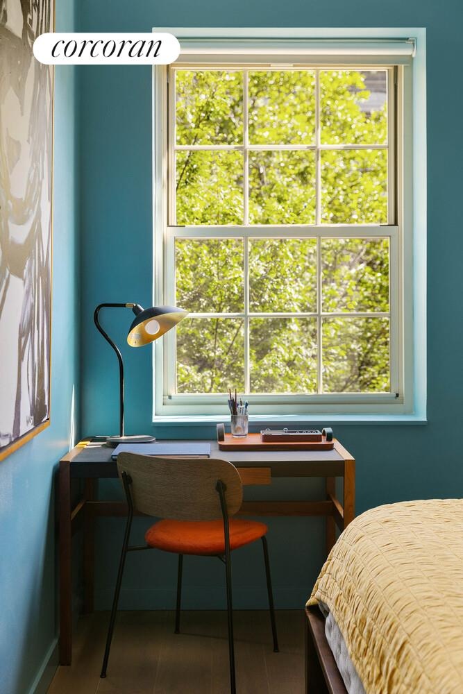 Apartment 2D is a rarely available charming 1 bedroom with low monthly carrying costs ideally situated amongst the treetops. As you enter the home, you'll find a foyer with space for shoes and coats setting a welcoming tone. You'll then be immediately struck by the high ceilings coupled with the large picturesque windows that frame the tree-top views and overlook a quiet and serene street. With an eastern exposure, the apartment is flooded with natural morning light and a warm glow throughout the day