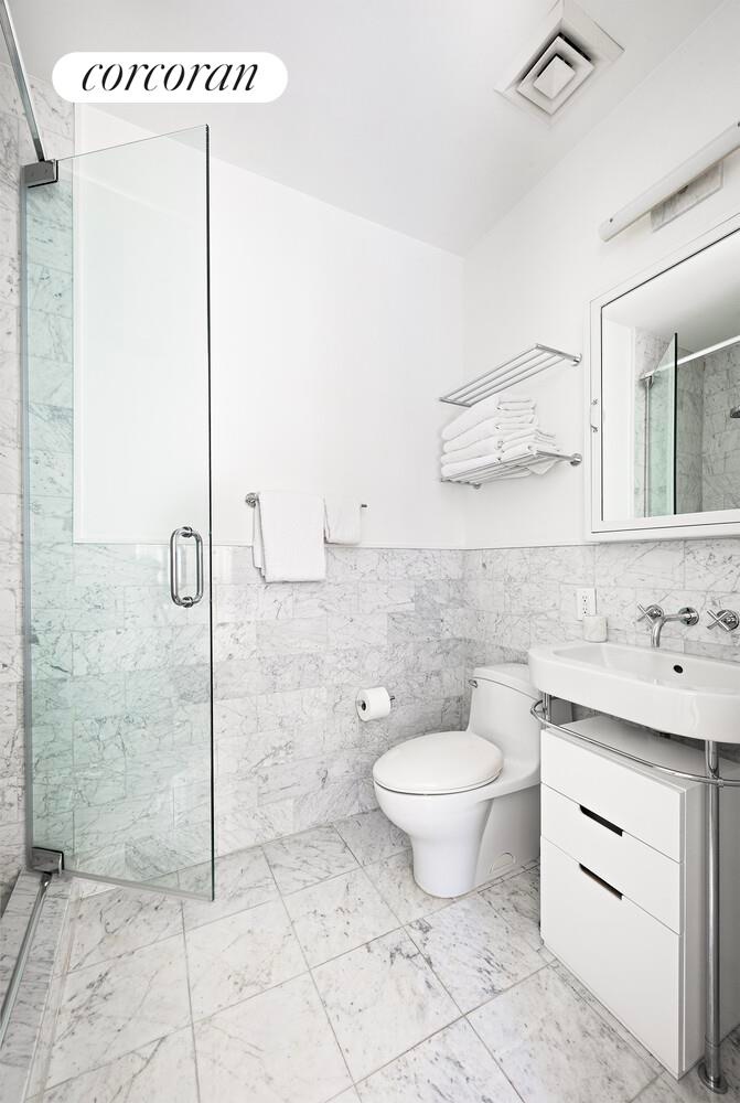 Set on a high floor of 72 Mercer Street, this spacious two-bedroom, two-and-a-half-bath home offers soaring 11+ foot ceilings with beautiful western and eastern light, in prime Soho.