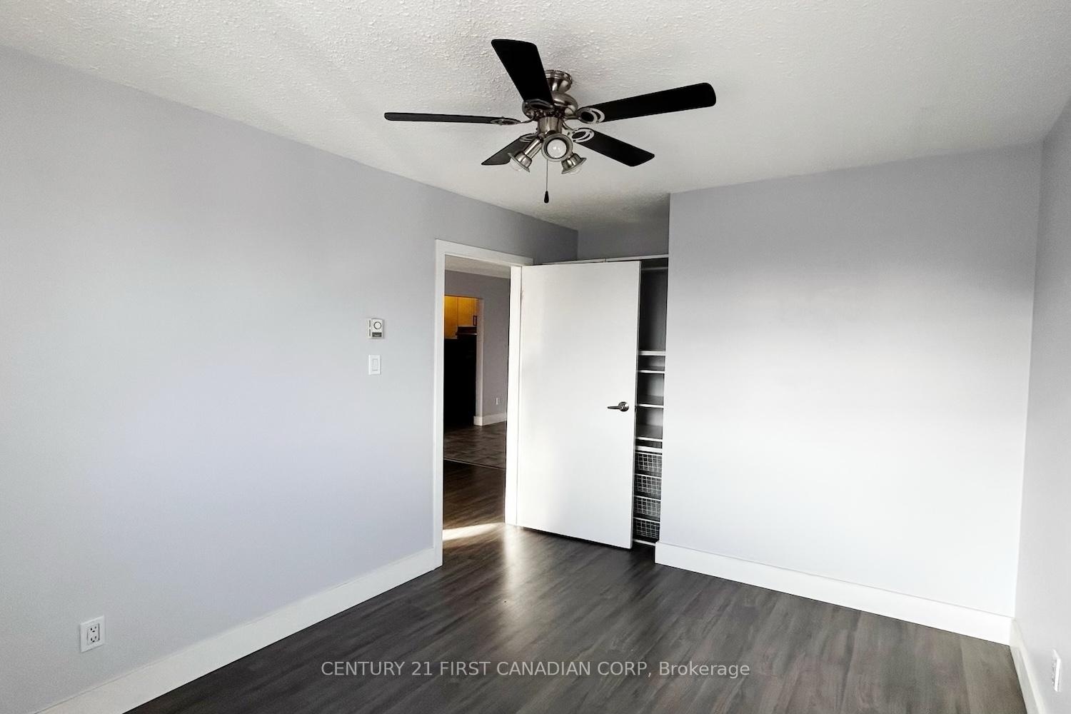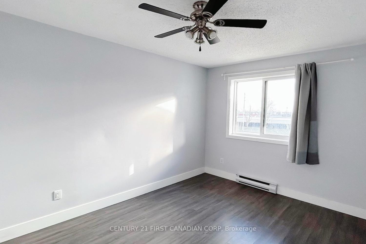 Sunny south exposure, a spacious 2-bedroom + den layout, and modern upgrades throughout make this home stand out. Enjoy a private balcony, updated kitchen with stainless steel appliances, gas fireplace, in-suite laundry. 1 designated parking spot right in front, visible from the unit for added convenience. Located in a quiet, low-density, well-managed community with affordable condo fees, an outdoor swimming pool, with added security system, perfect for comfortable family living. An unbeatable location steps to White Oaks Mall, Victoria Hospital, Costco, multiple parks, community centre, schools, and library, with quick access to Hwy 401/402 and the future London Rapid Transit system. Move-in ready Nov 1, 2025. Water and hot water heater fee included.