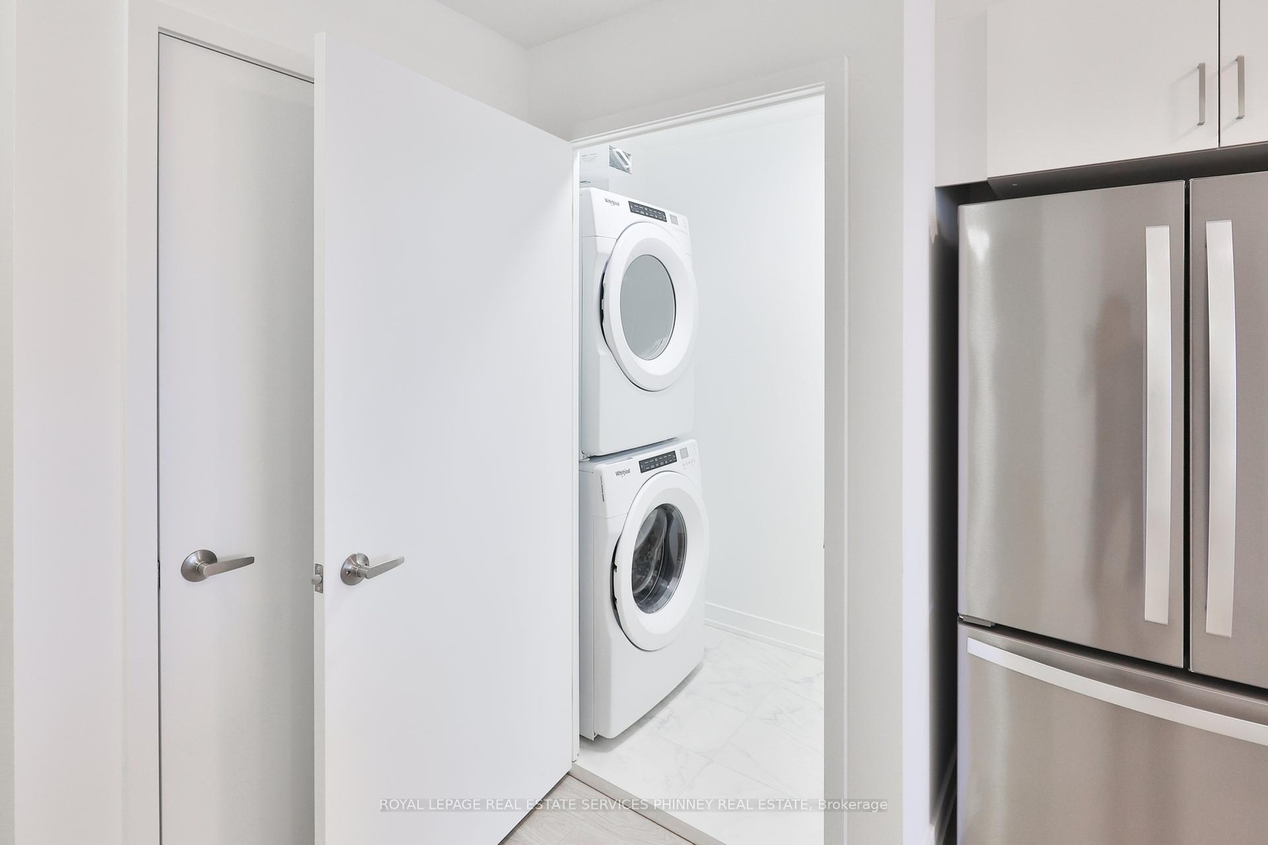 Welcome to the stunning new S2 Private Residences, where luxury meets convenience. Nestled amidst an array of top-tier amenities, you will find everything you need right at your doorstep from the GO Train Station and picturesque lake, to scenic walking trails, vibrant shopping areas, lush parks, exquisite restaurants, and so much more.This spacious lower penthouse one-bedroom plus den unit is over 800 sft boasts floor-to-ceiling windows, offering unobstructed, panoramic views of both the lake and the city skyline. Wake up to a sun-filled bedroom with a south-facing view, boasting two closets and ensuite privilege. The kitchen is a dream, featuring a double-door stainless steel fridge, built-in microwave, sleek dishwasher, and stove. For added convenience, this home includes a full-sized washer and dryer, along with a beautifully designed walk-through four-piece bathroom complete with a glass shower and standalone tub. Work from home or create a leisure area in the spacious den. Step out onto the expansive balcony and enjoy the serene views of the lake and park. The building itself offers an impressive suite of amenities, including an indoor pool, car wash, state-of-the-art gym, 24/7 concierge service, lounge, billiards room, and a versatile rooftop entertainment area. The rooftop features a bar, kitchen, dining space, and wraparound terraces perfect for hosting guests or relaxing in style. Premium parking spot in front of entrance to elevators. Keyed private elevator access to floor (not available for every floor). INTERNET INCLUDED (~$100 VALUE)