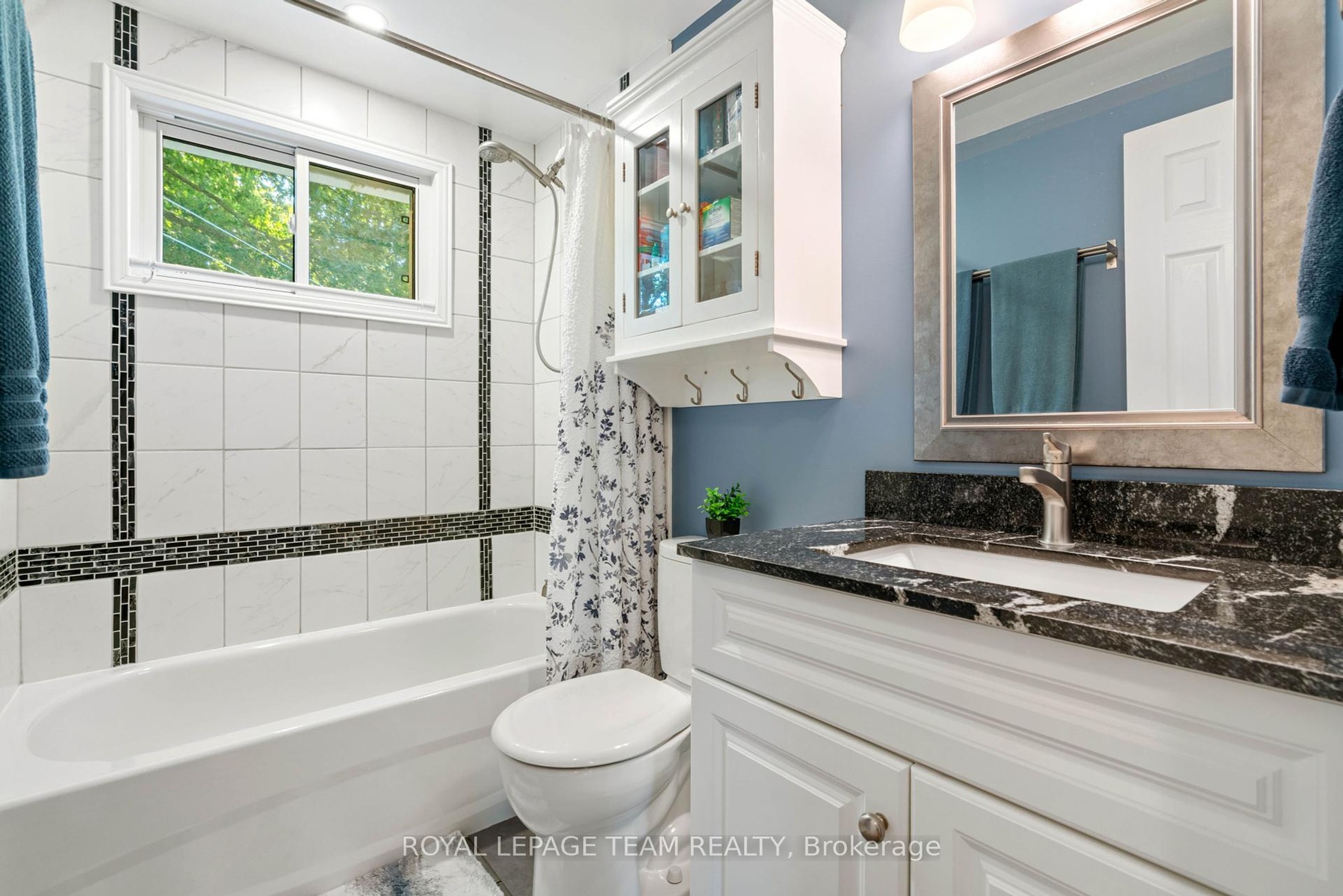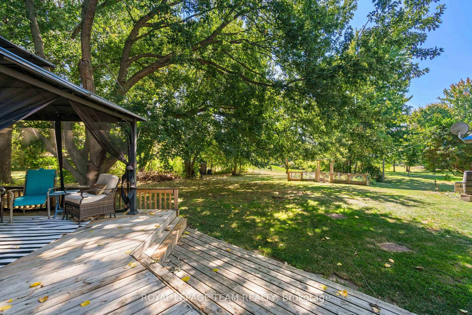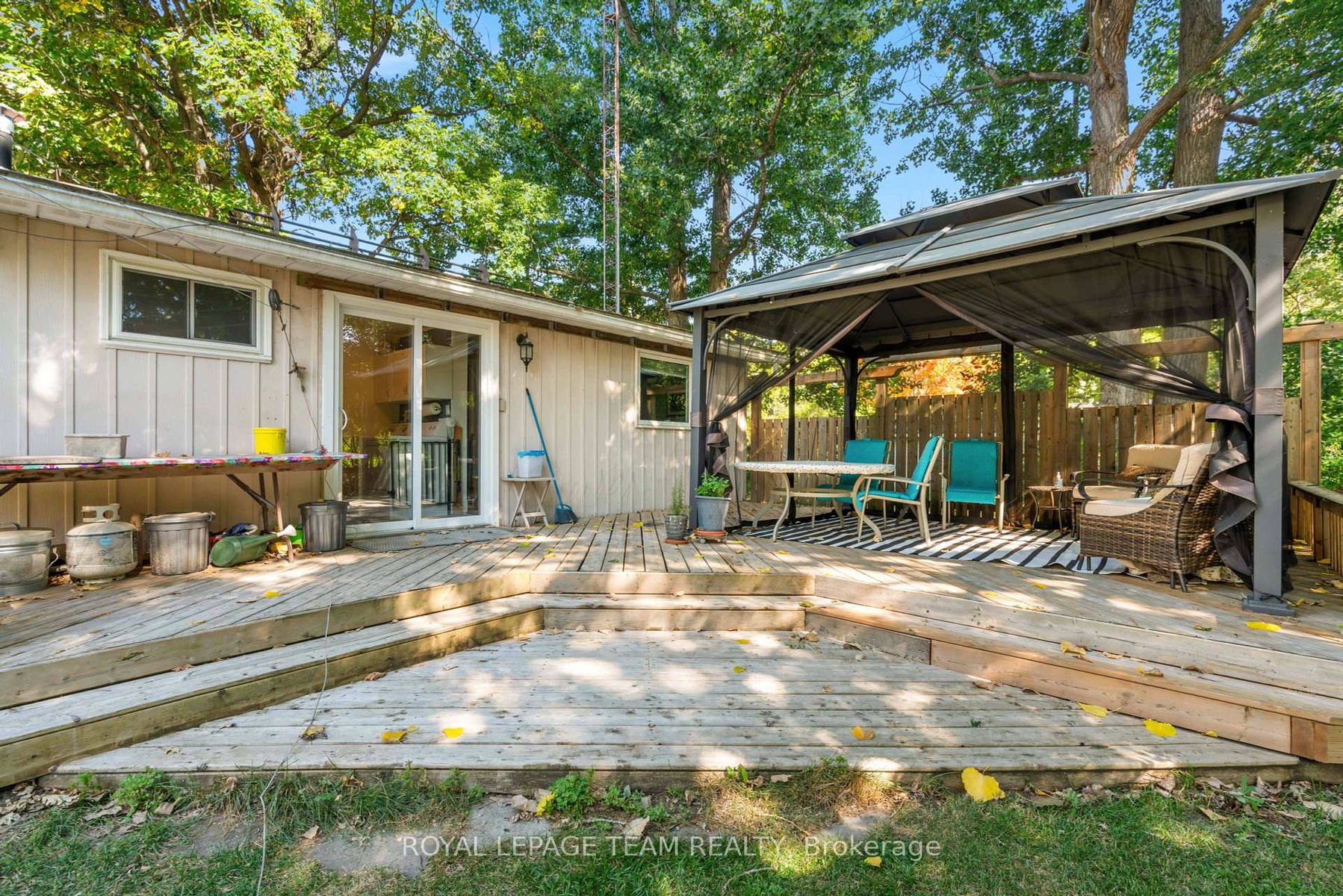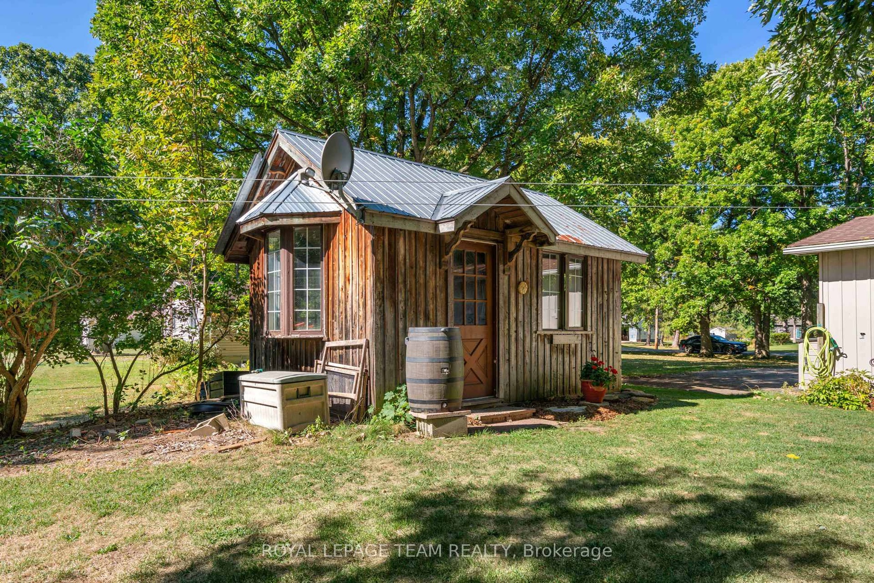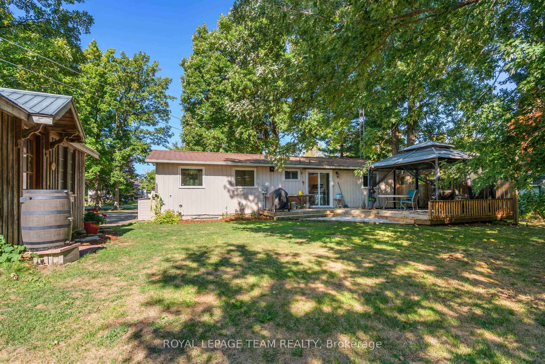 DescriptionWelcome to this well-loved and carefully maintained bungalow, located on a dead end street just minutes from the scenic St. Lawrence River in Johnstown.This 2+1 bedroom, 2 full bathroom home is full of charm and functionality, with thoughtful updates throughout. Step into the bright, eat-in kitchen that was top-of-the-line in its day, featuring an abundance of cupboards with convenient pull-outs, still incredibly functional with tons of storage for all your cooking essentials.The main floor offers laundry on the main level, with patio doors that lead directly to the backyard. The very spacious primary bedroom comes complete with a walk-in closet and a newly renovated modern ensuite, featuring a sleek stand-up shower.The fully finished basement provides even more living space, including a third bedroom, cozy family room, and a versatile hobby room perfect for crafts, a home gym, or office.Outside, enjoy a superb oversized lot with mature trees including a crab apple tree, complete with a 12x16 Amish style shed, gazebo, and deck perfect for entertaining or simply relaxing. The property also comes equipped with a water softener, water filtration system for iron, and sump pump for peace of mind. All window coverings and existing light fixtures are included.The location can't be beat just steps to the Community Centre, park, and pool, and minutes from the St. Lawrence River. Plus, you're only minutes to the U.S. border and a quick 45 minutes to Ottawa. This home truly offers comfort, convenience, and a great lifestyle ready for its next chapter!Amenities- Countertop Range