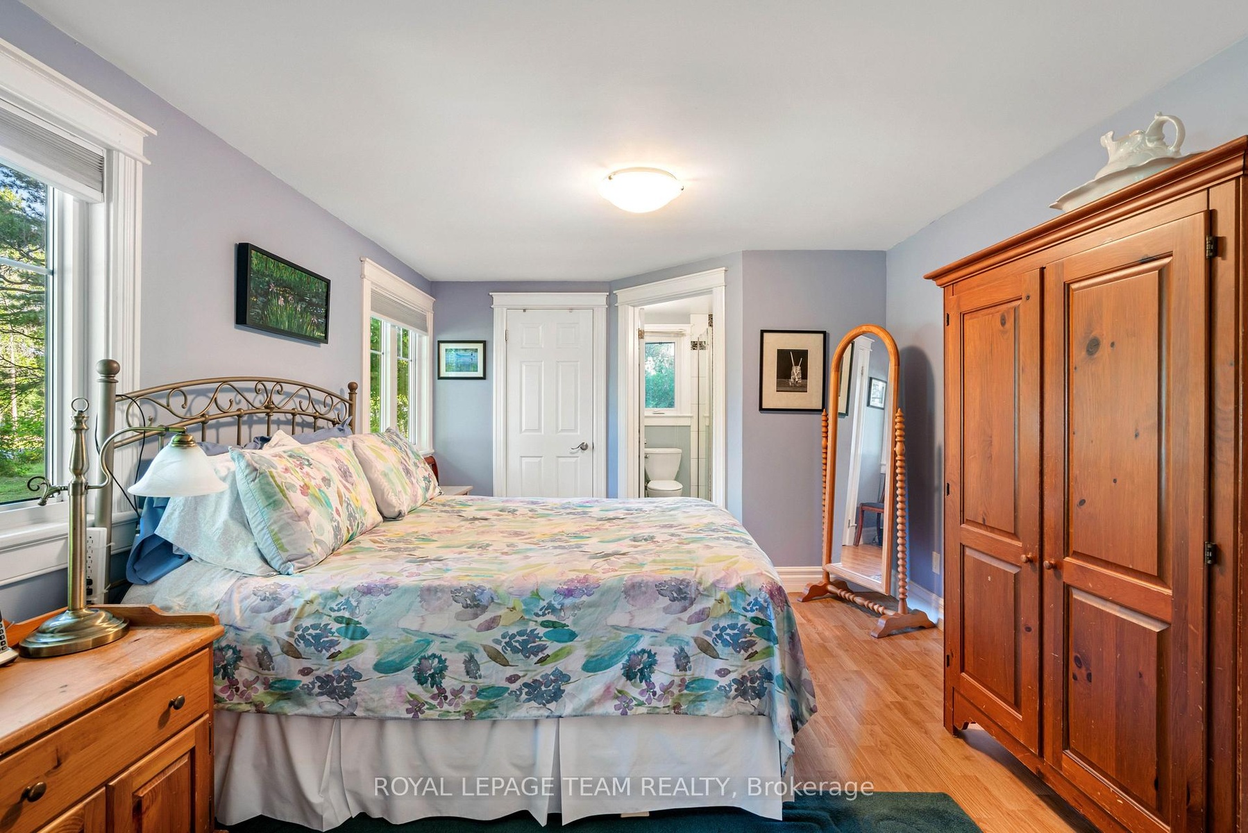 Welcome to this well-loved and carefully maintained bungalow, located on a dead end street just minutes from the scenic St. Lawrence River in Johnstown.This 2+1 bedroom, 2 full bathroom home is full of charm and functionality, with thoughtful updates throughout. Step into the bright, eat-in kitchen that was top-of-the-line in its day, featuring an abundance of cupboards with convenient pull-outs, still incredibly functional with tons of storage for all your cooking essentials.The main floor offers laundry on the main level, with patio doors that lead directly to the backyard. The very spacious primary bedroom comes complete with a walk-in closet and a newly renovated modern ensuite, featuring a sleek stand-up shower.The fully finished basement provides even more living space, including a third bedroom, cozy family room, and a versatile hobby room perfect for crafts, a home gym, or office.Outside, enjoy a superb oversized lot with mature trees including a crab apple tree, complete with a 12x16 Amish style shed, gazebo, and deck perfect for entertaining or simply relaxing. The property also comes equipped with a water softener, water filtration system for iron, and sump pump for peace of mind. All window coverings and existing light fixtures are included.The location can't be beat just steps to the Community Centre, park, and pool, and minutes from the St. Lawrence River. Plus, you're only minutes to the U.S. border and a quick 45 minutes to Ottawa. This home truly offers comfort, convenience, and a great lifestyle ready for its next chapter!