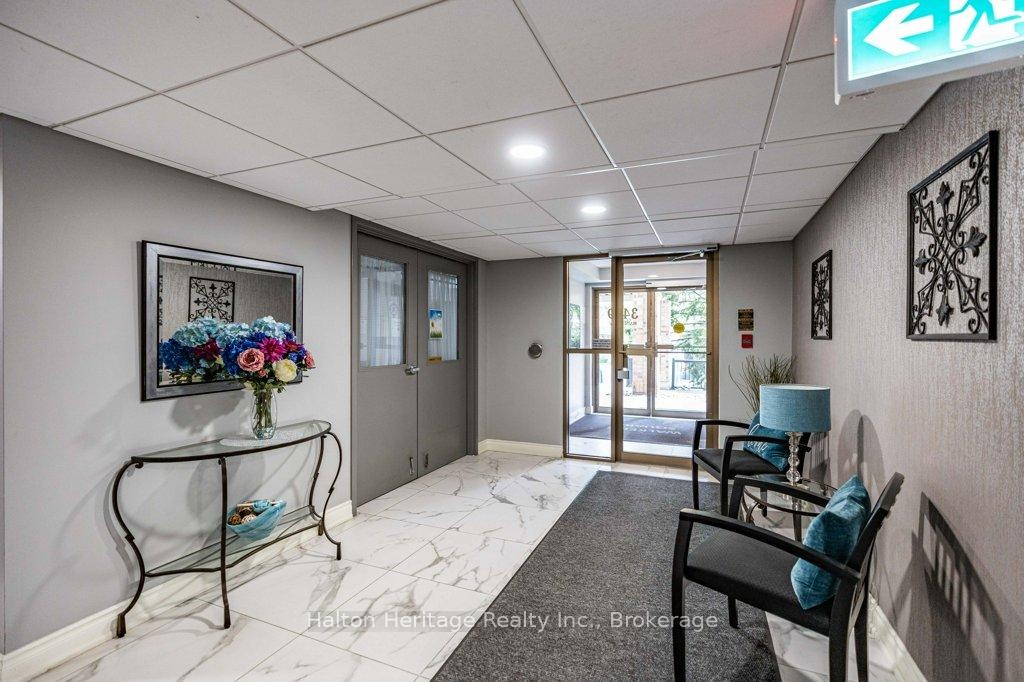Welcome to this bright and spacious 1 bed, 1 bath condo in the very desirable Walkers Square Community! This unit has been well-maintained and features gleaming hardwood floors, a well-designed eat-in-kitchen, plenty of oak cabinetry and stainless-steel appliances. Good size primary bedroom and convenient in-suit laundry. Freshly Painted! Enjoy peaceful moments outdoors on your private balcony, surrounded by mature trees and overlooking beautifully manicured landscaping. A perfect blend of privacy and natural serenity. Convenient underground parking and a dedicated storage room located on the same level as the residence. Situated in a well-maintained and non-smoking building for added comfort and peace of mind. On-site amenities include party room, fitness facility, outdoor patio, car wash station, community BBQ and patio area. Steps to all amenities, shopping, bus routes and easy access to 403/QEW and GO Station. Affordable convenient living! Available Immediately! Call today!